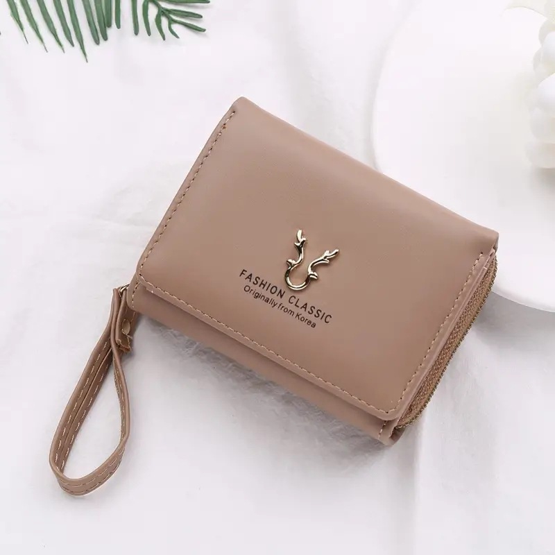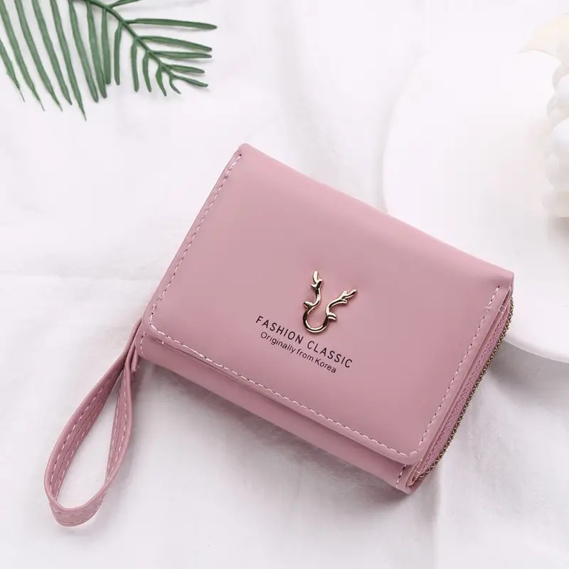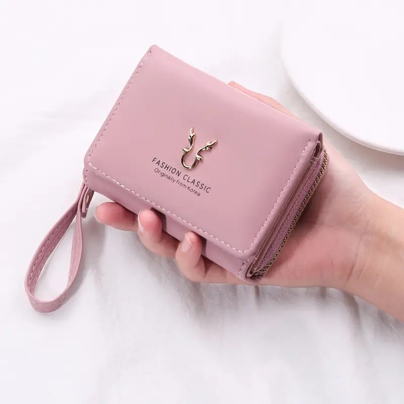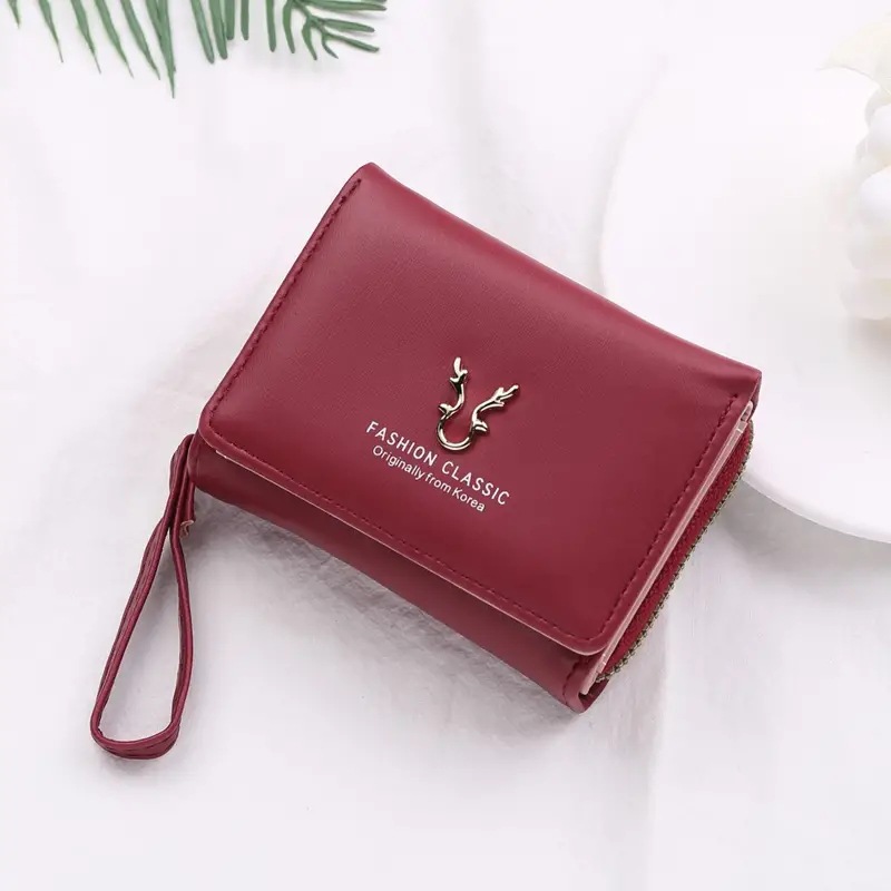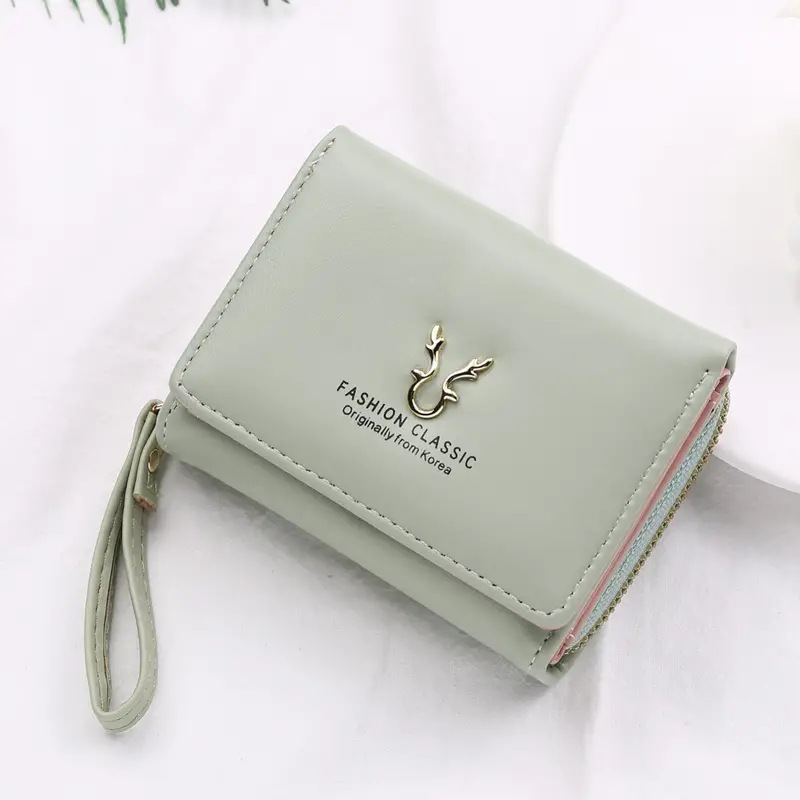 2023新款女士钱包短款PU皮拉链零钱包女迷你卡通三折搭扣卡包批发