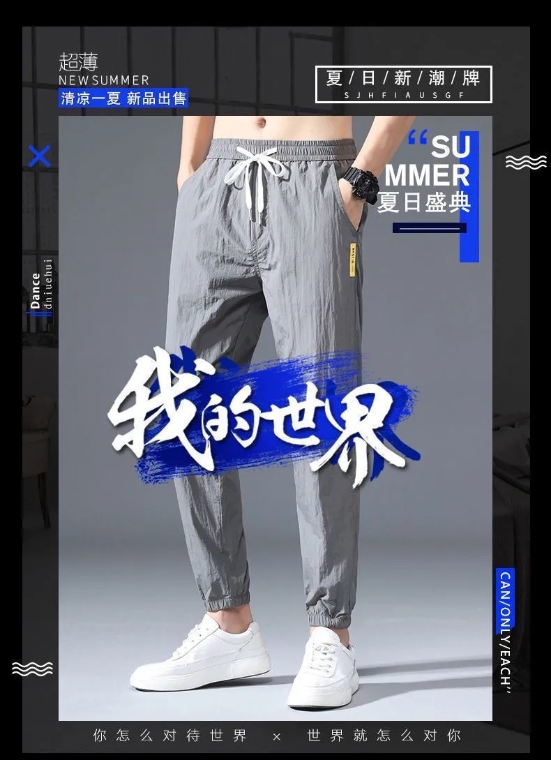 九分冰丝裤男士夏季新款韩版大码薄款黄标束脚现货批发潮流休闲裤