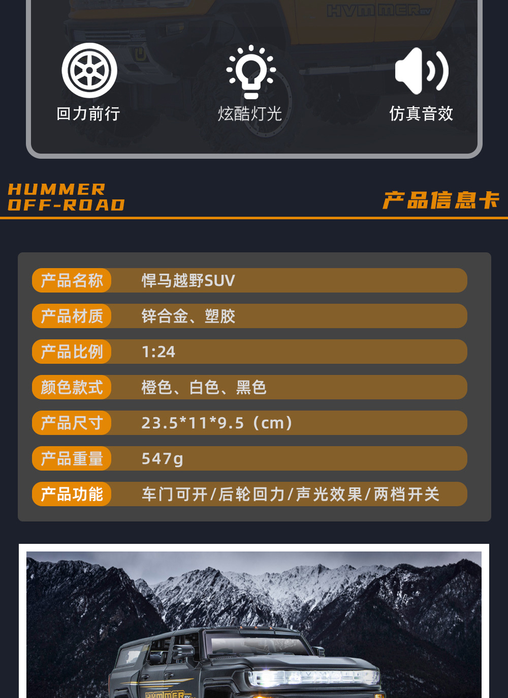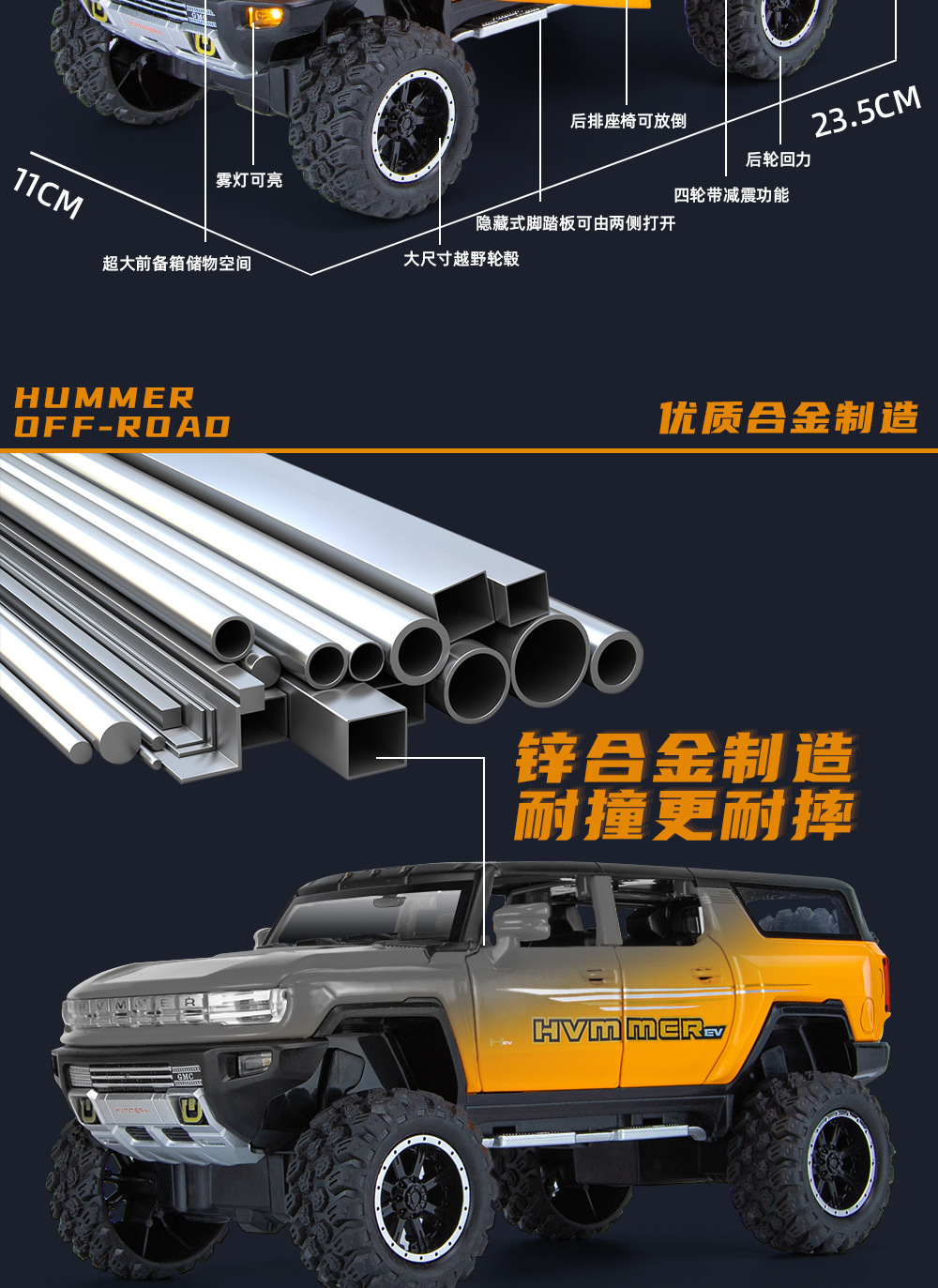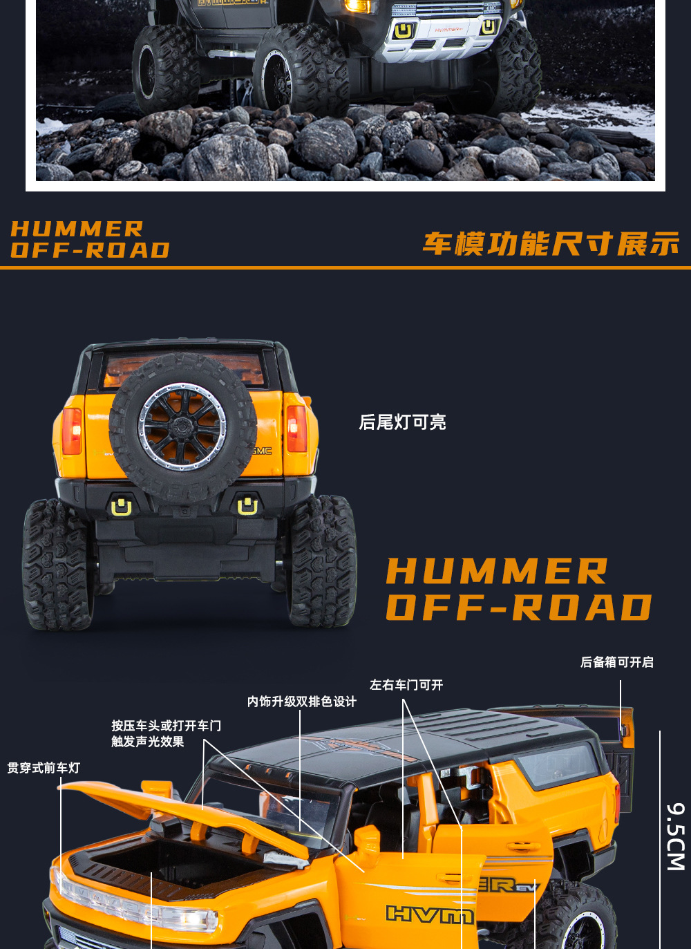 悍马越野SUV仿真合金车模儿童车汽车模型霸气侧漏收藏版1:24