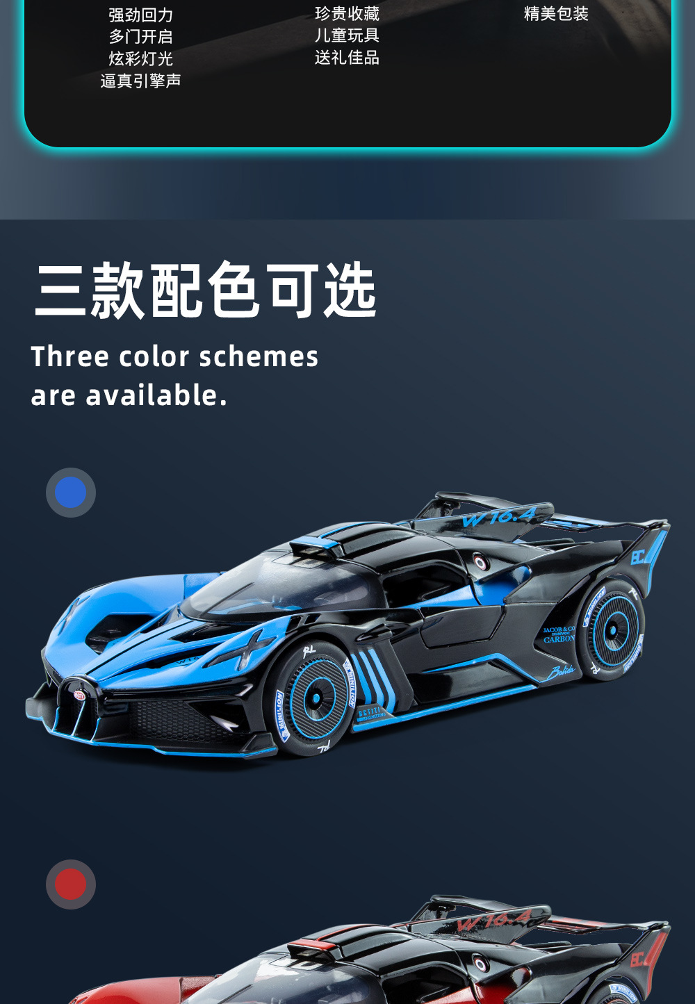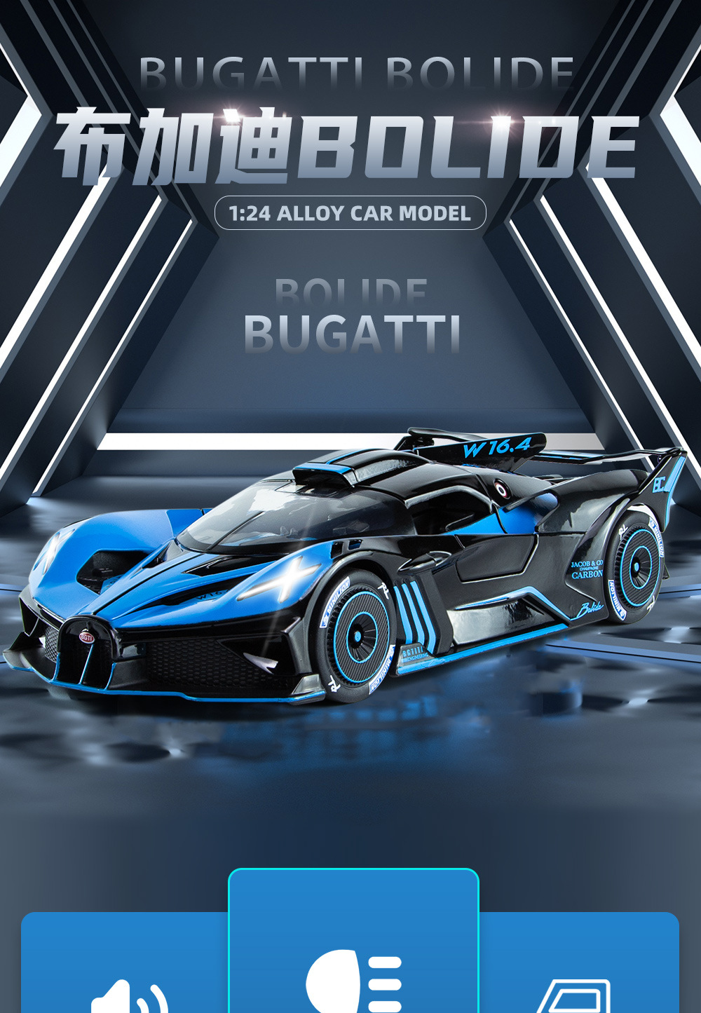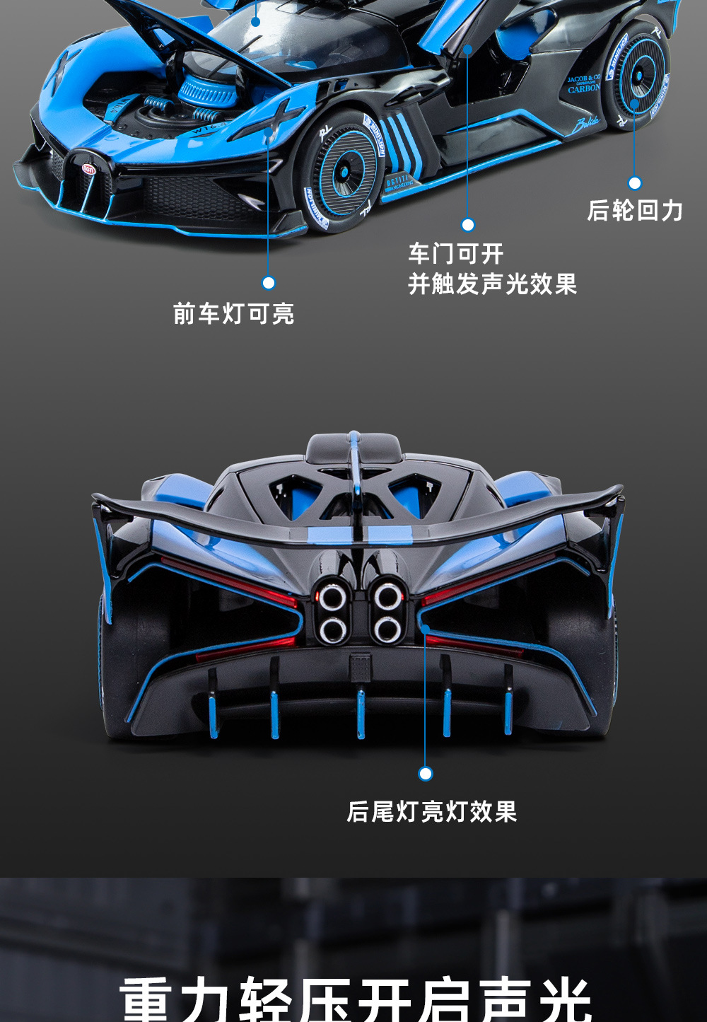布加迪BOLIDE声光回力车儿童玩具汽仿真合金车模型玩具礼物