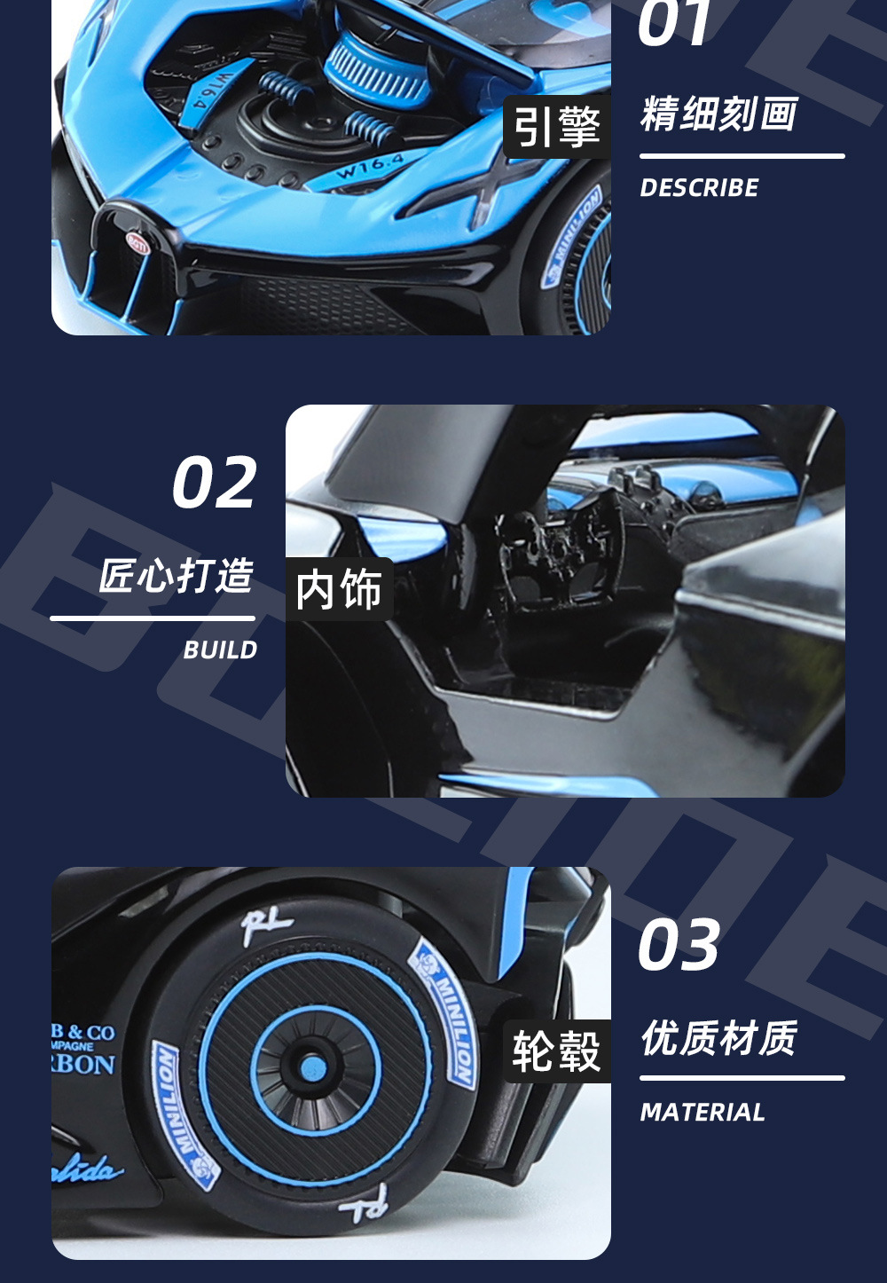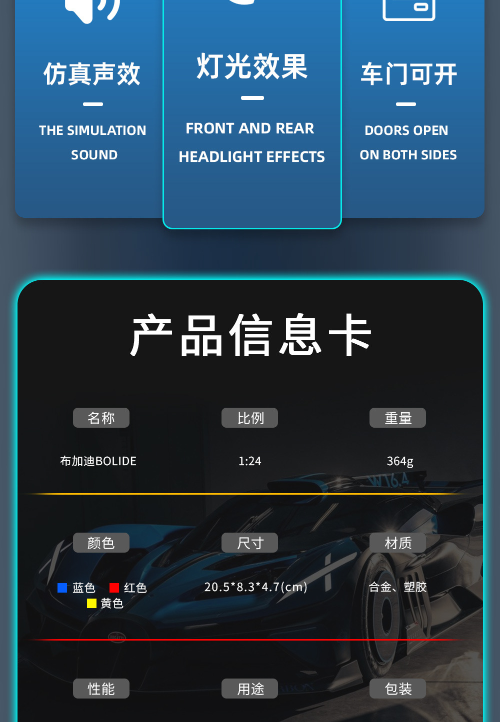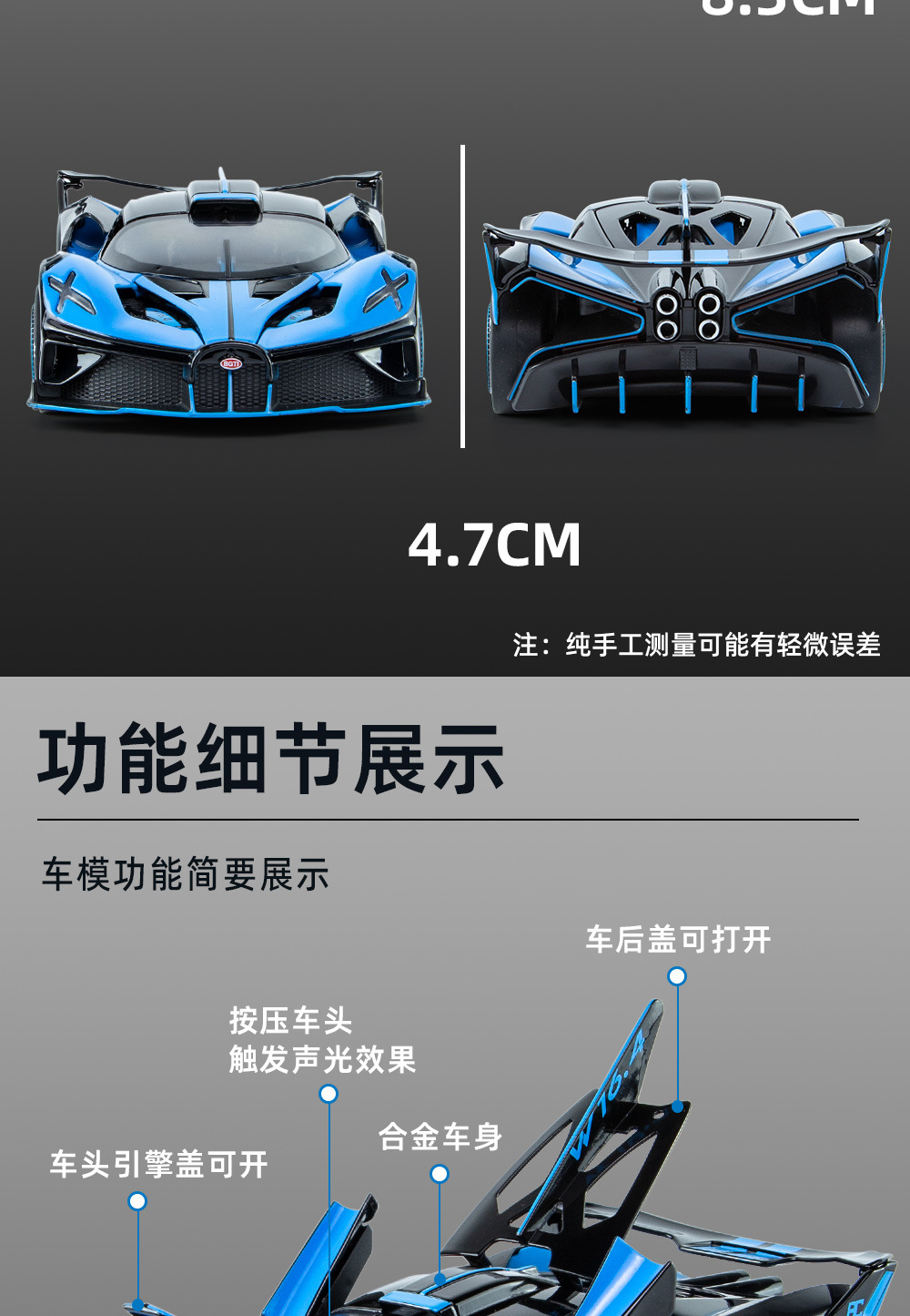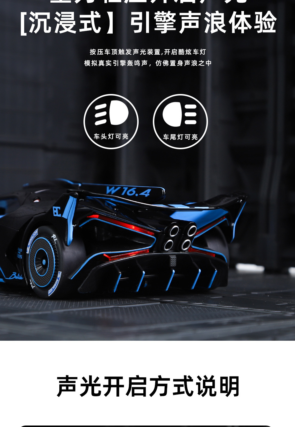 布加迪BOLIDE声光回力车儿童玩具汽仿真合金车模型玩具礼物