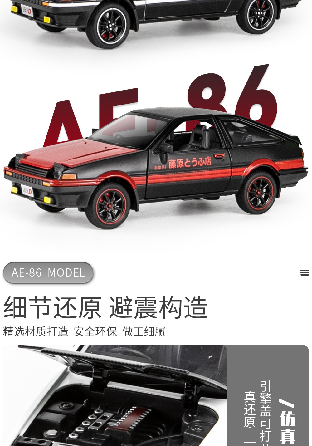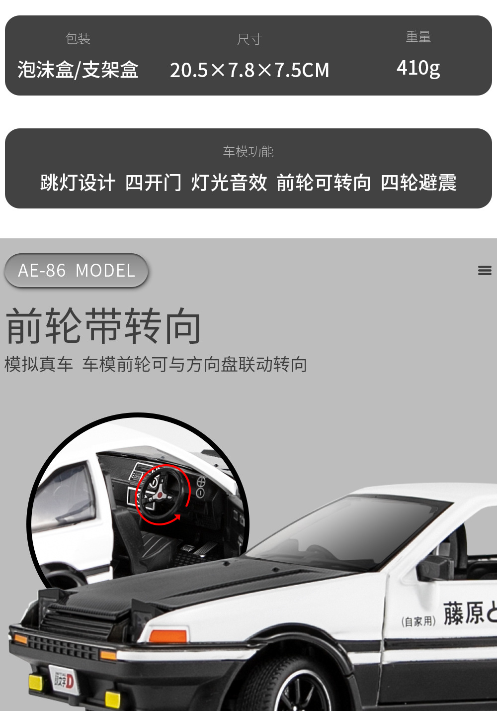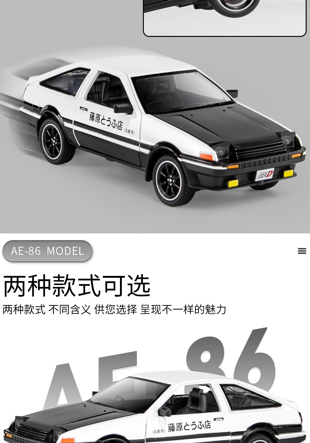 AE86汽车模型声光回力转向避震四开门仿真合金车模玩具男孩礼物