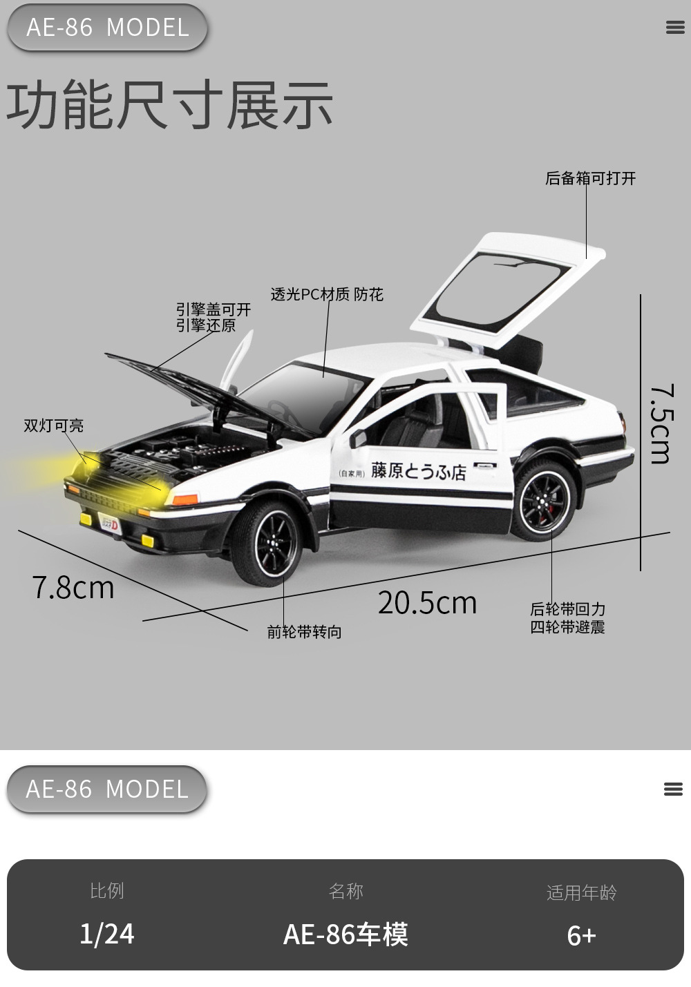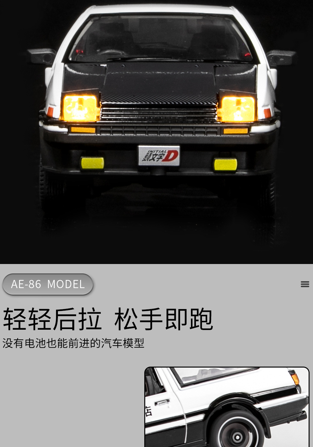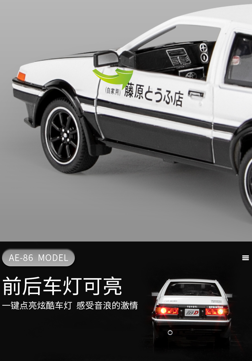 AE86汽车模型声光回力转向避震四开门仿真合金车模玩具男孩礼物