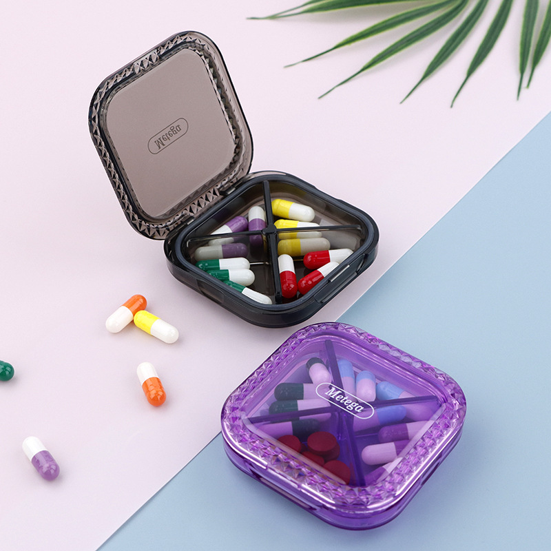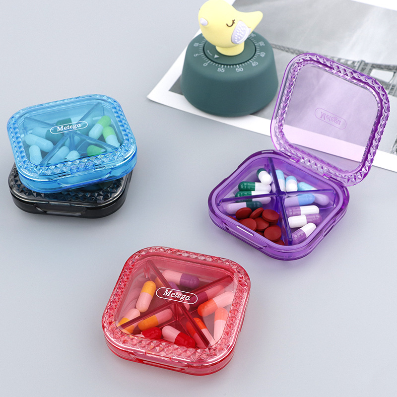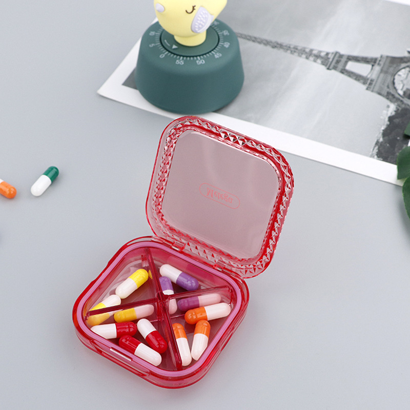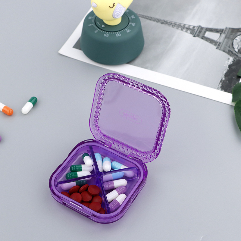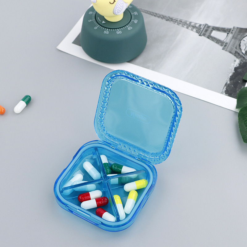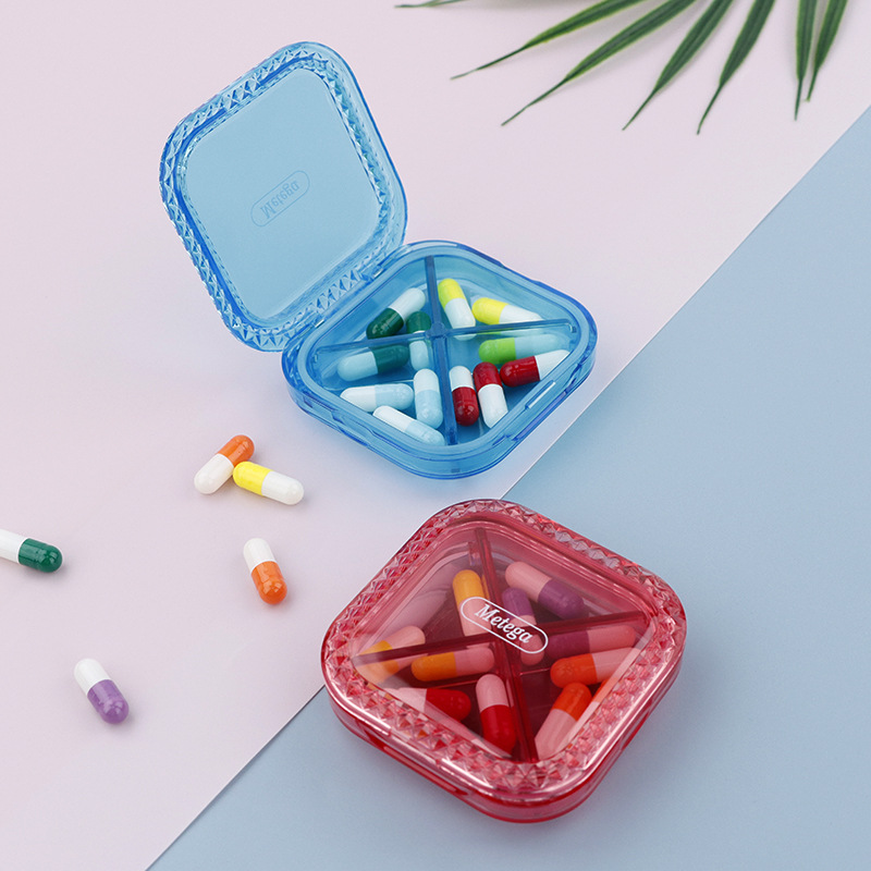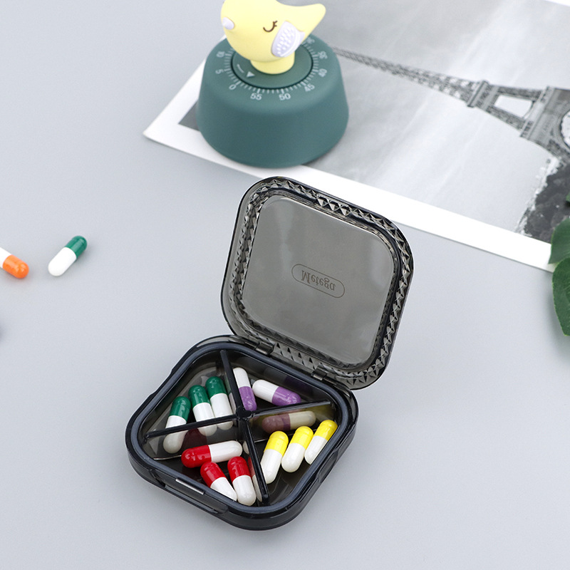 迷你小药盒 旅行分装4格随身医药分装盒子便携家用密封收纳小药盒