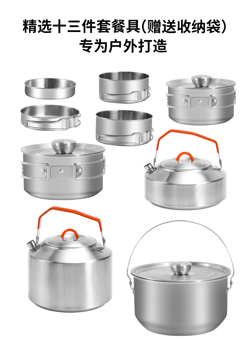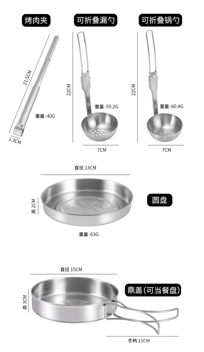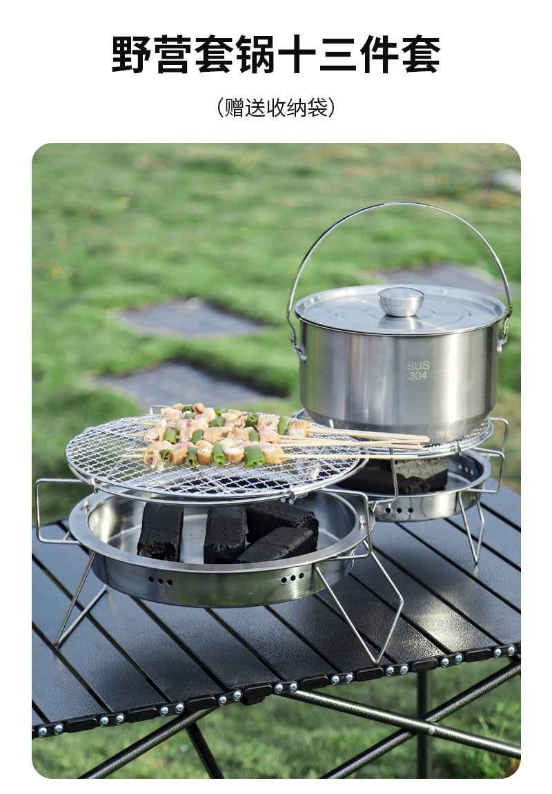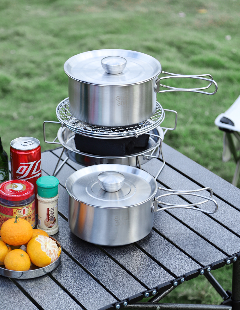 304不锈钢户外锅具 网漏露营野餐便携折叠餐具多功能炊具收纳套装