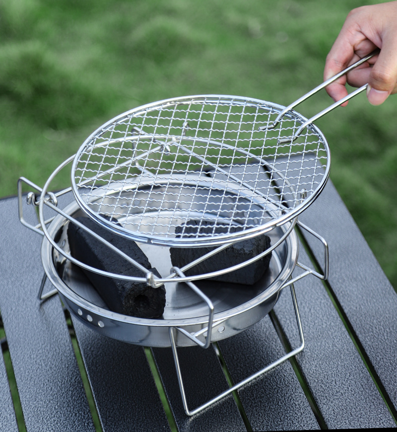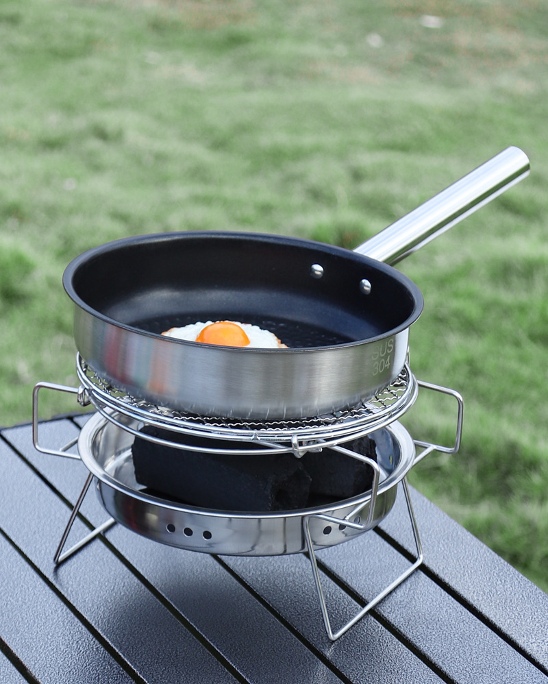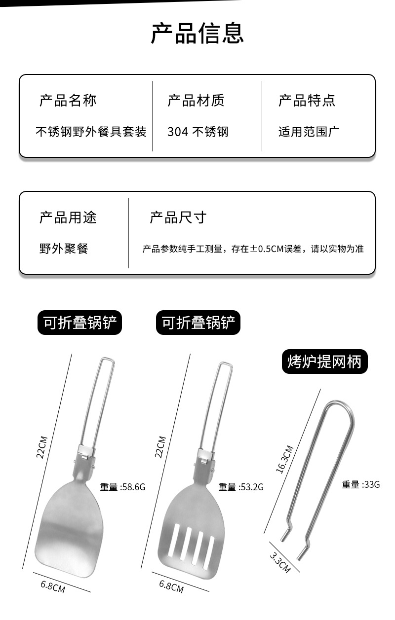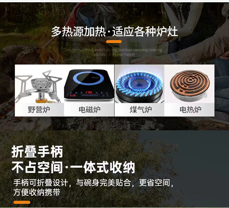 304不锈钢户外锅具 网漏露营野餐便携折叠餐具多功能炊具收纳套装