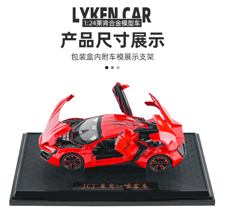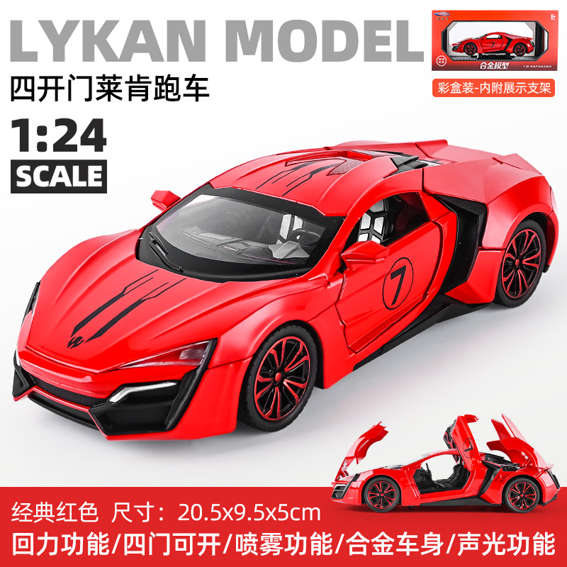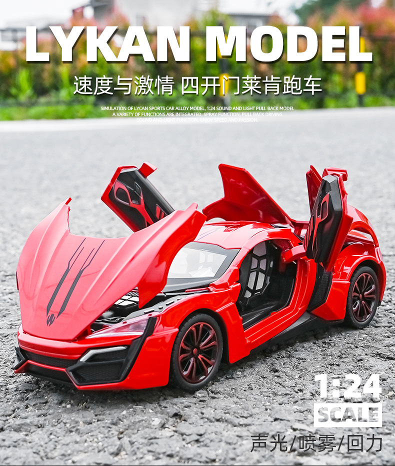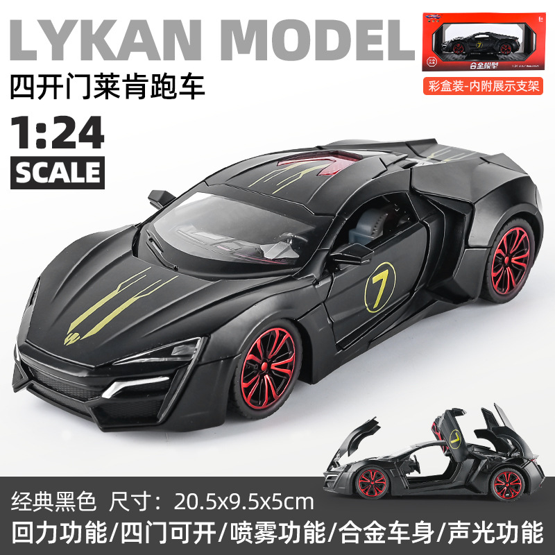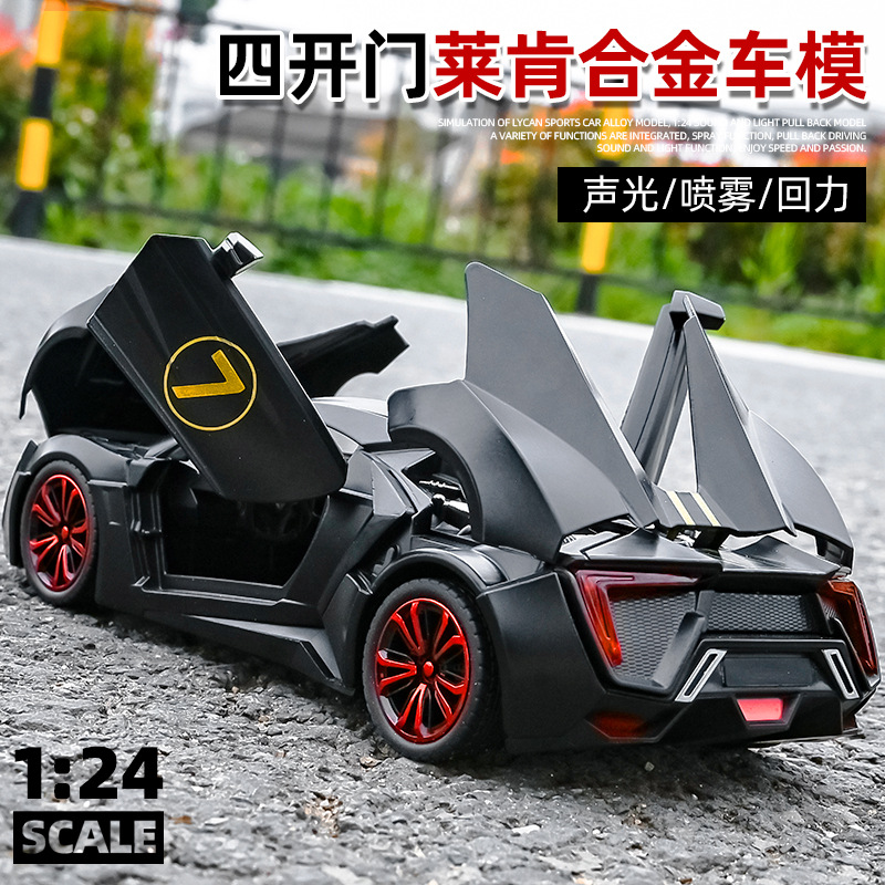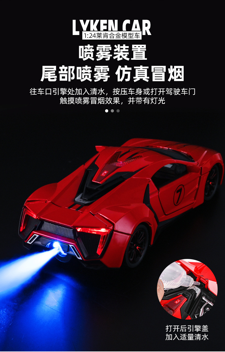 1:24可喷雾莱肯速度回力声光开门儿童玩具激情跑车合金车模型