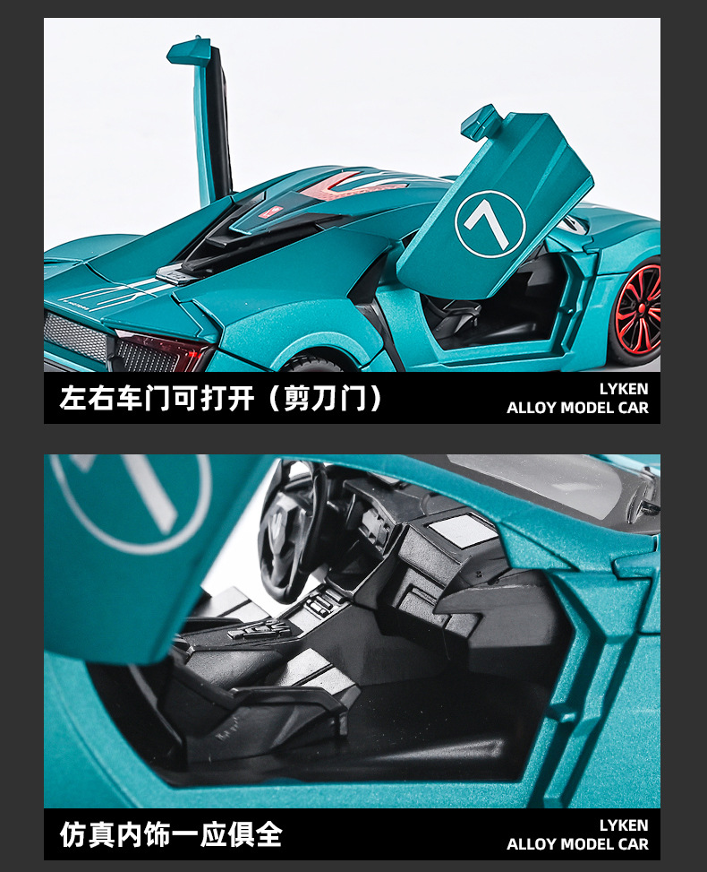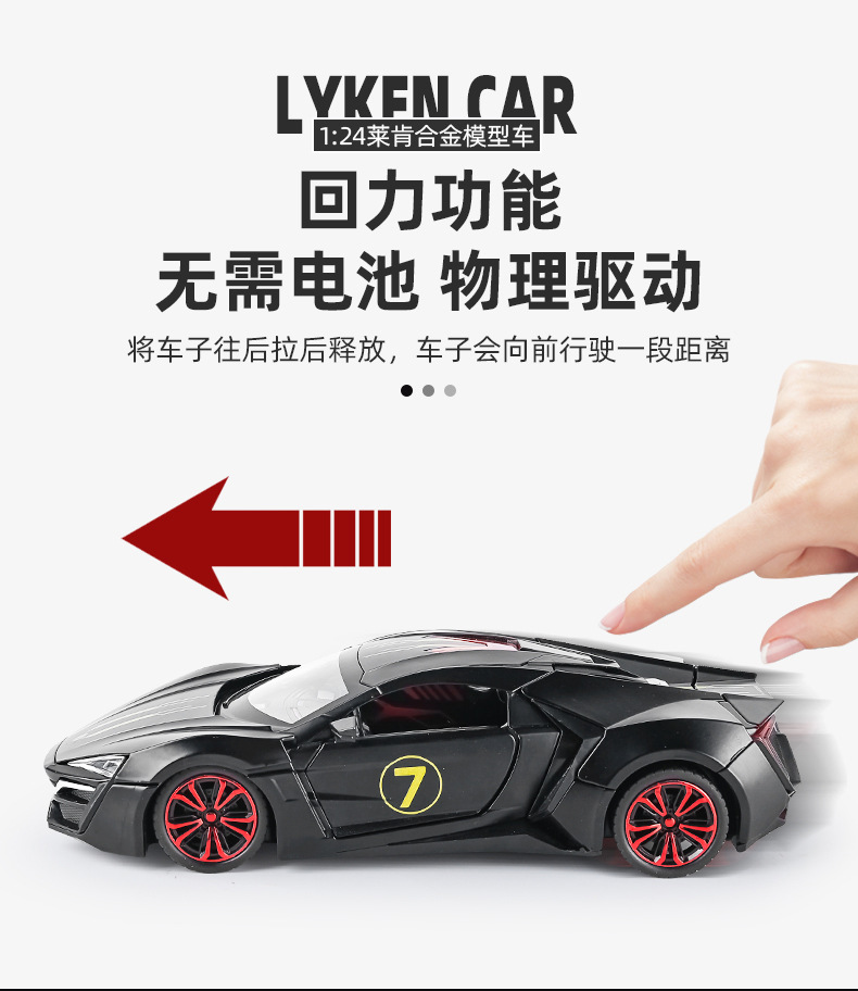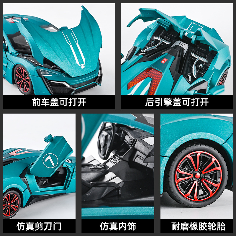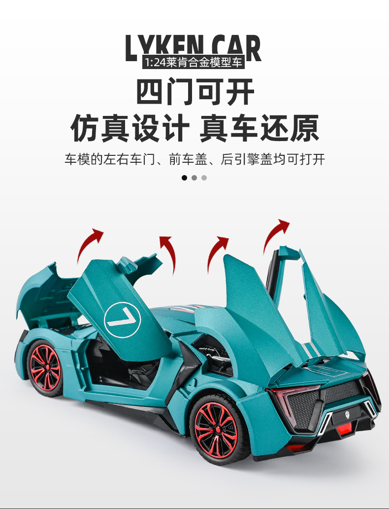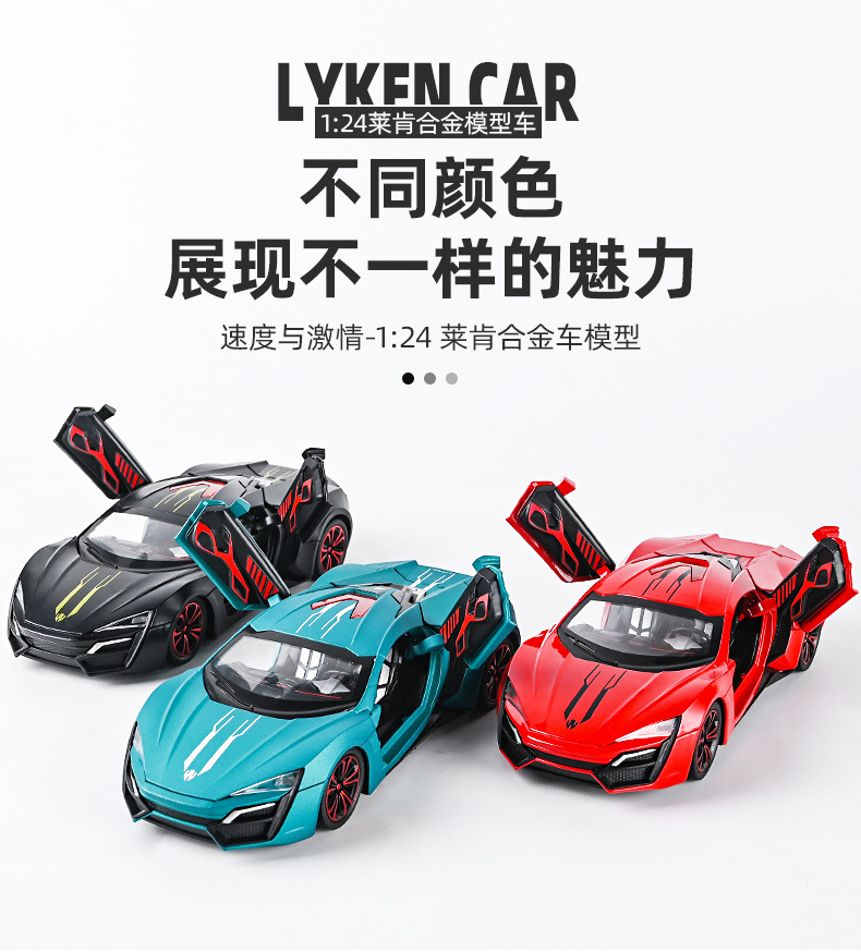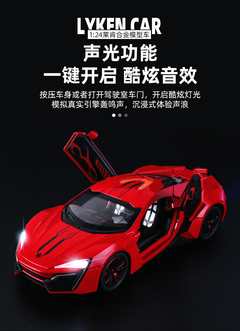 1:24可喷雾莱肯速度回力声光开门儿童玩具激情跑车合金车模型