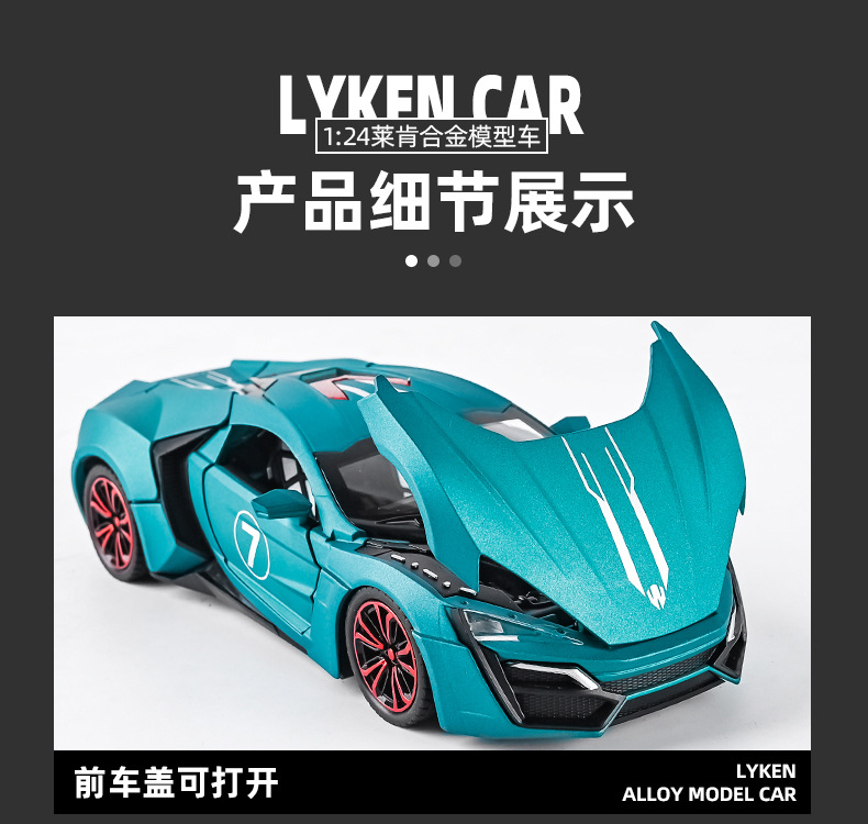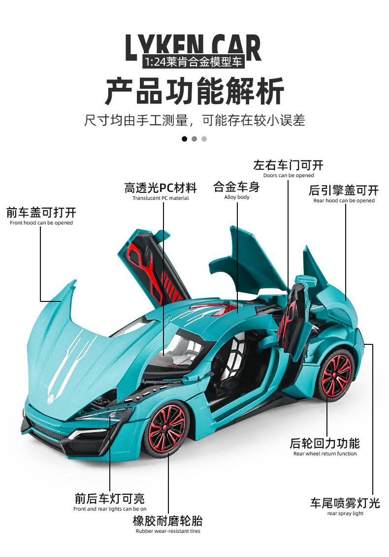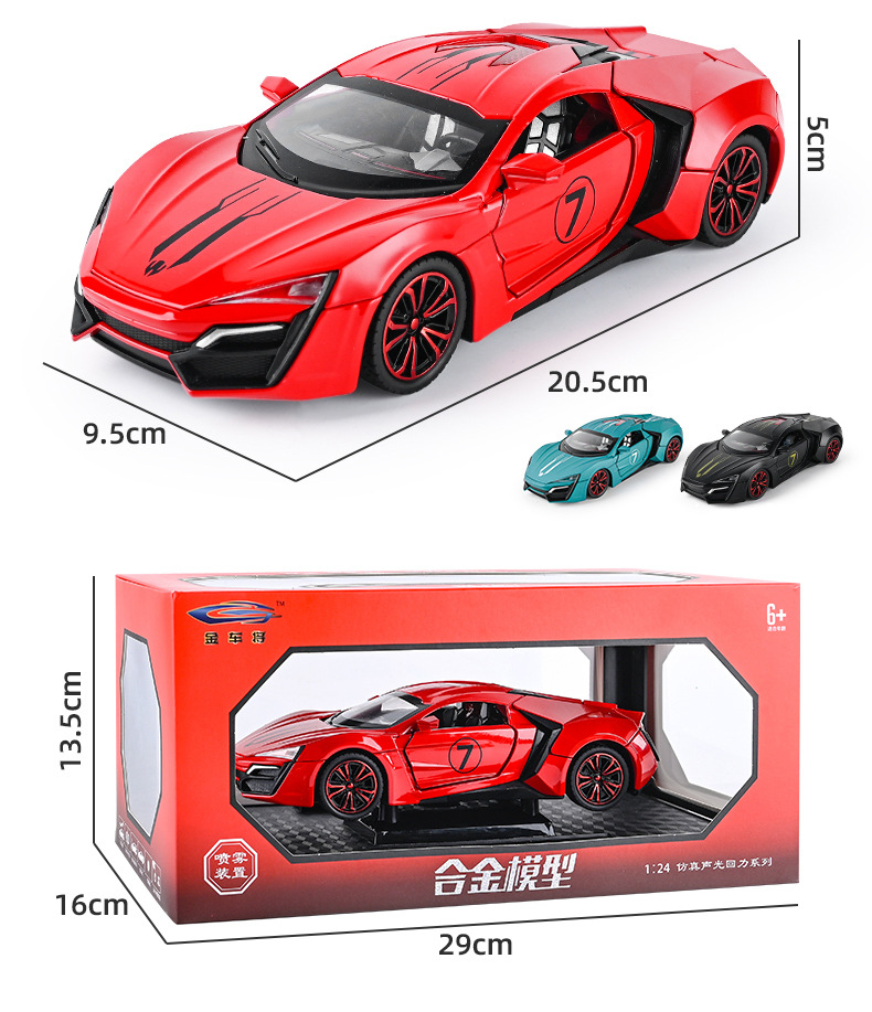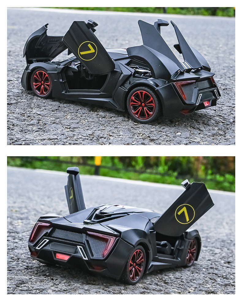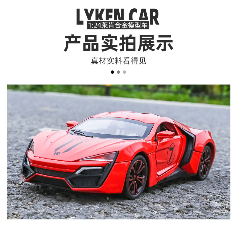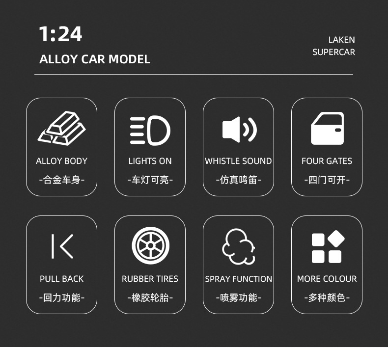 1:24可喷雾莱肯速度回力声光开门儿童玩具激情跑车合金车模型