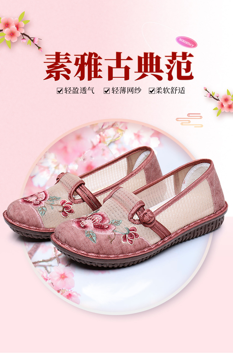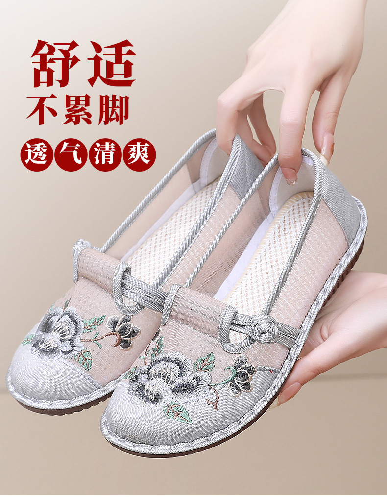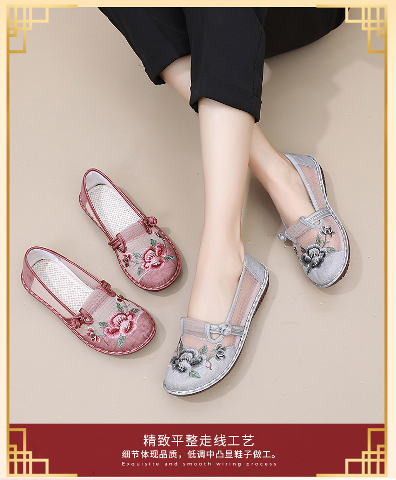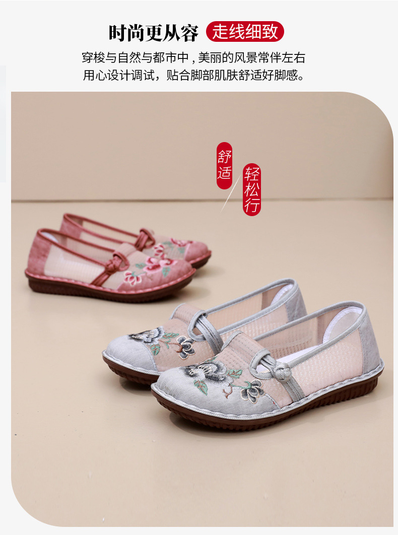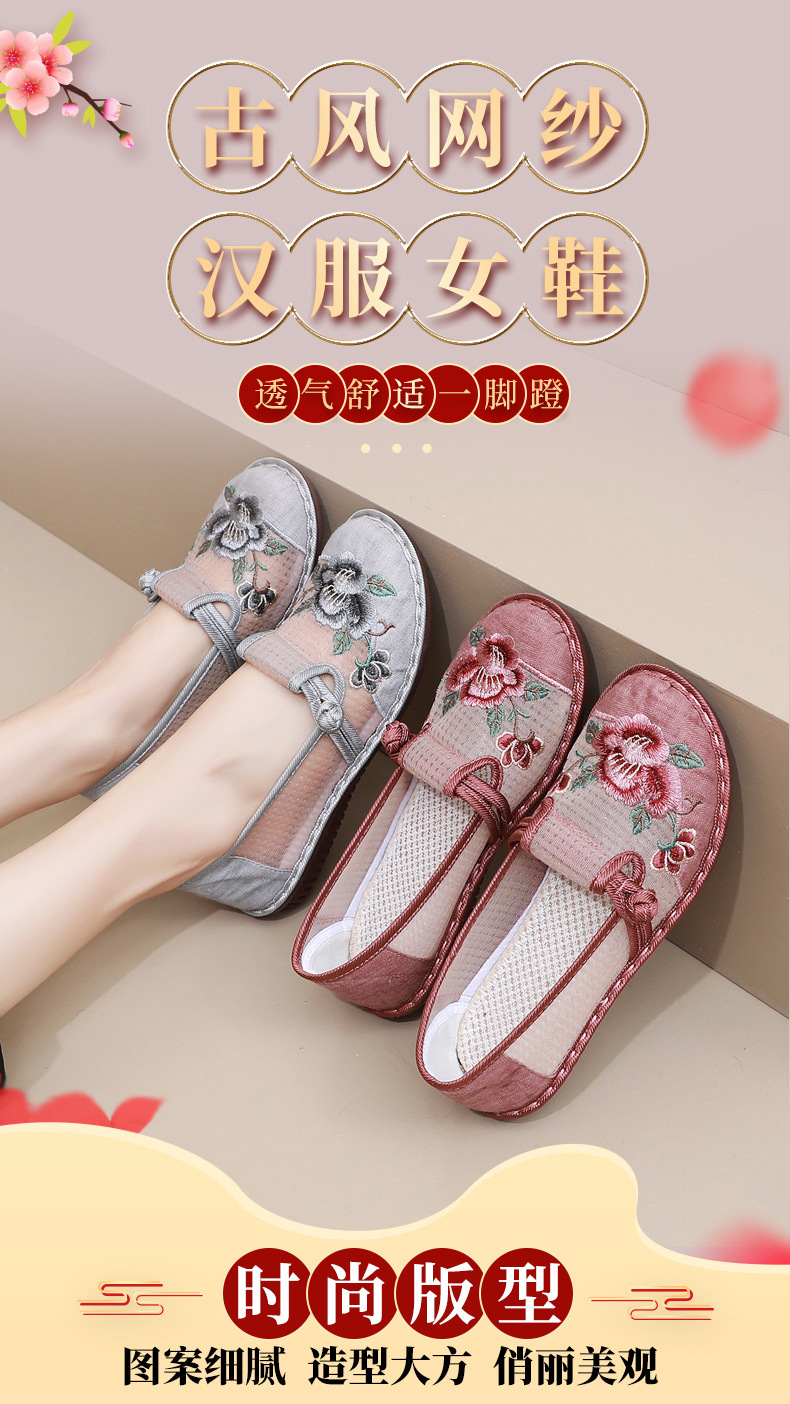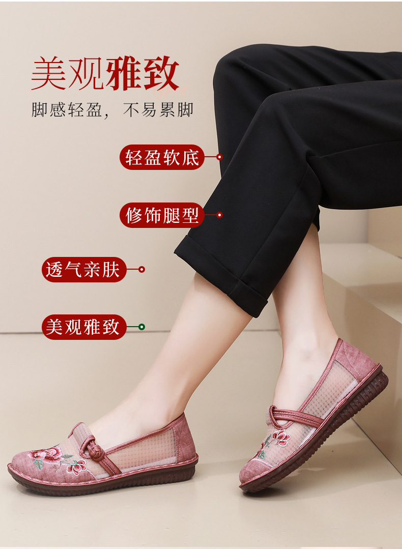 民族风绣花鞋女网鞋夏季女士一脚蹬复古时尚汉服鞋网面老北京布鞋