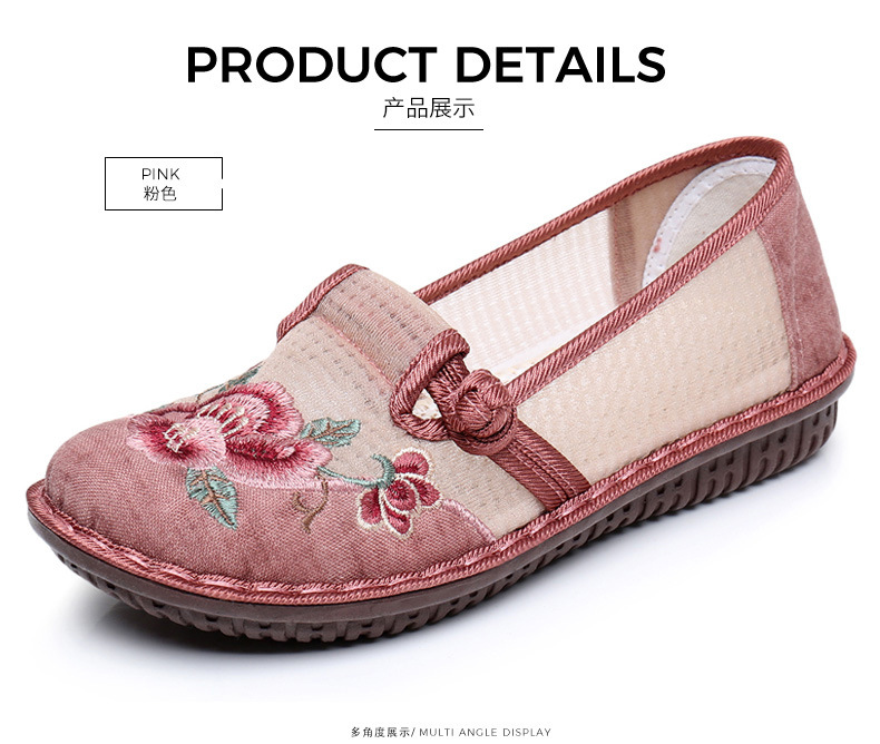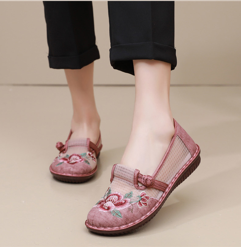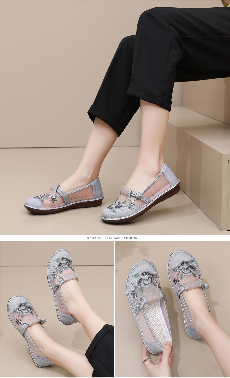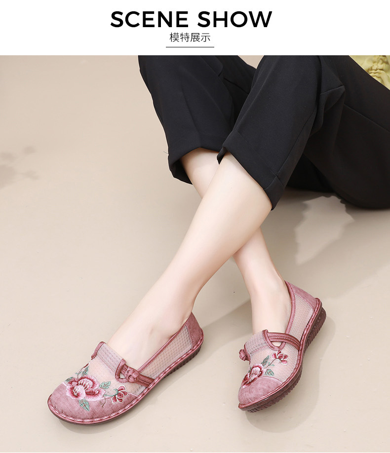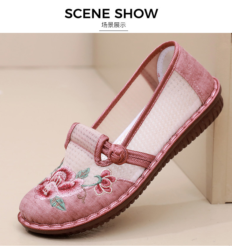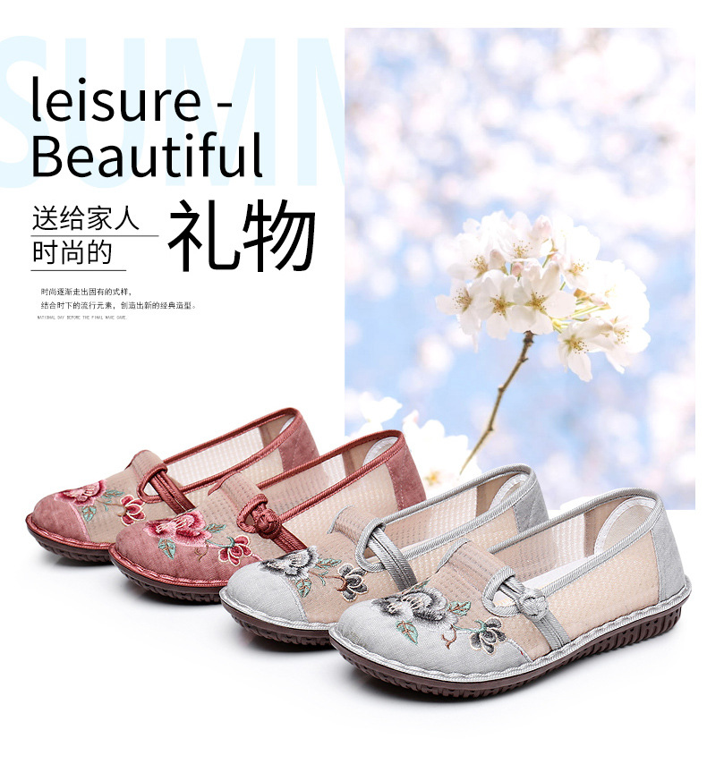 民族风绣花鞋女网鞋夏季女士一脚蹬复古时尚汉服鞋网面老北京布鞋