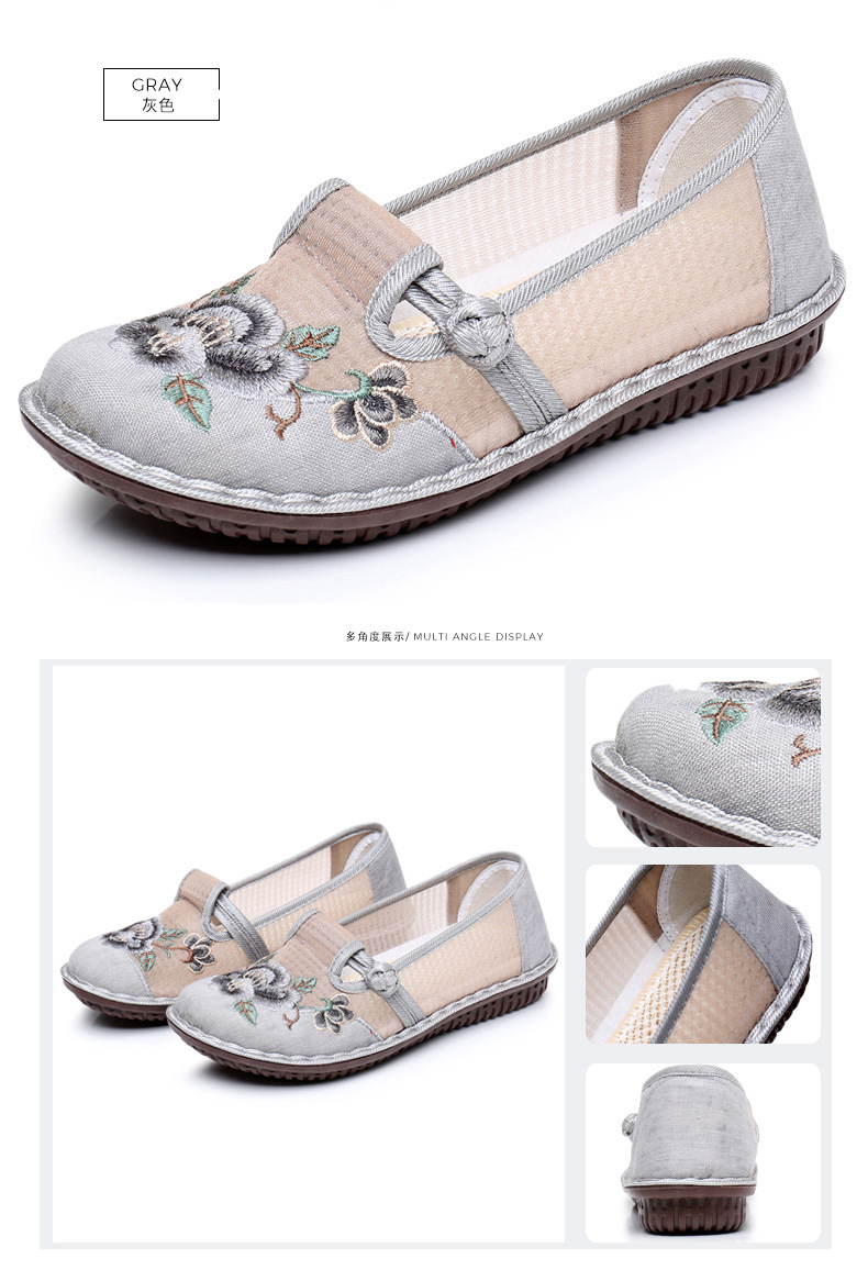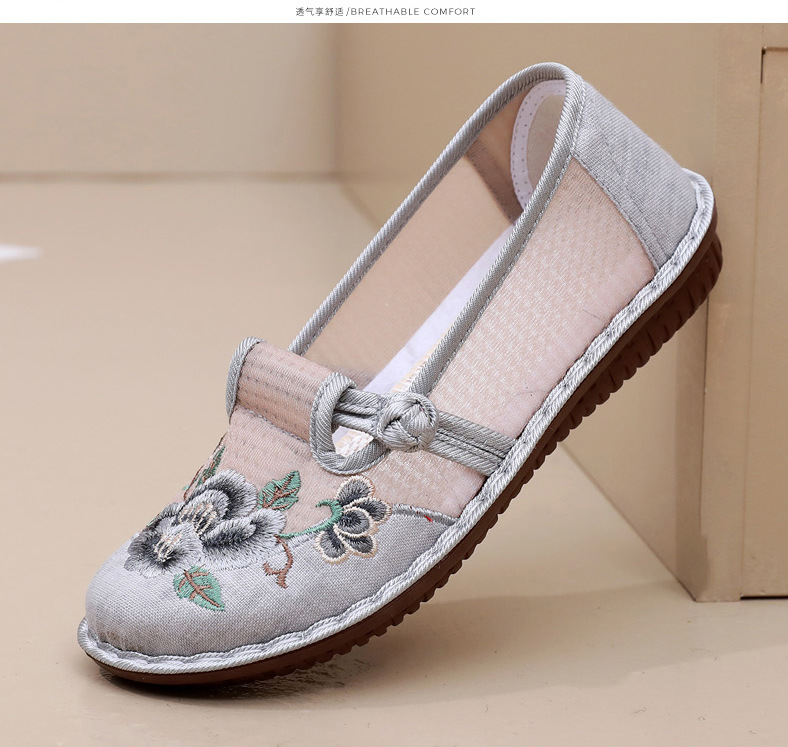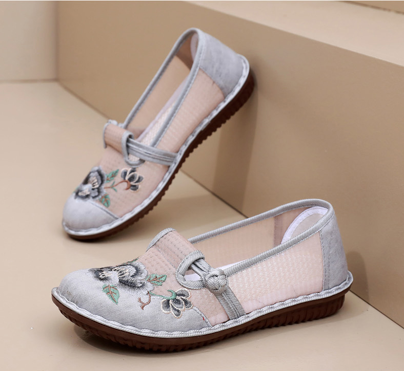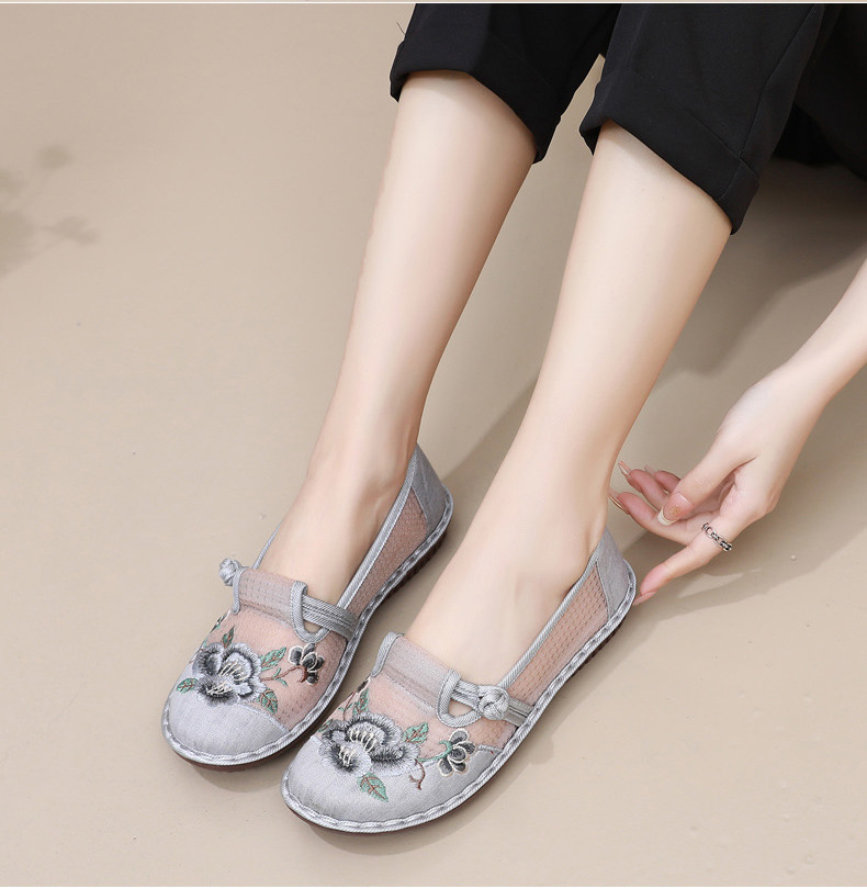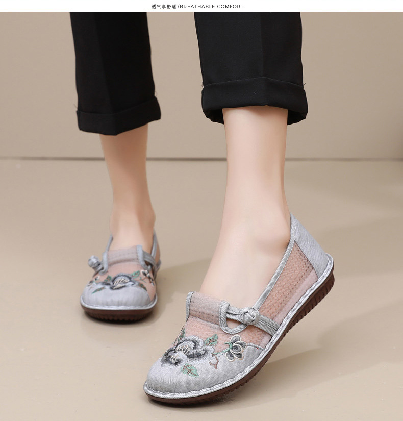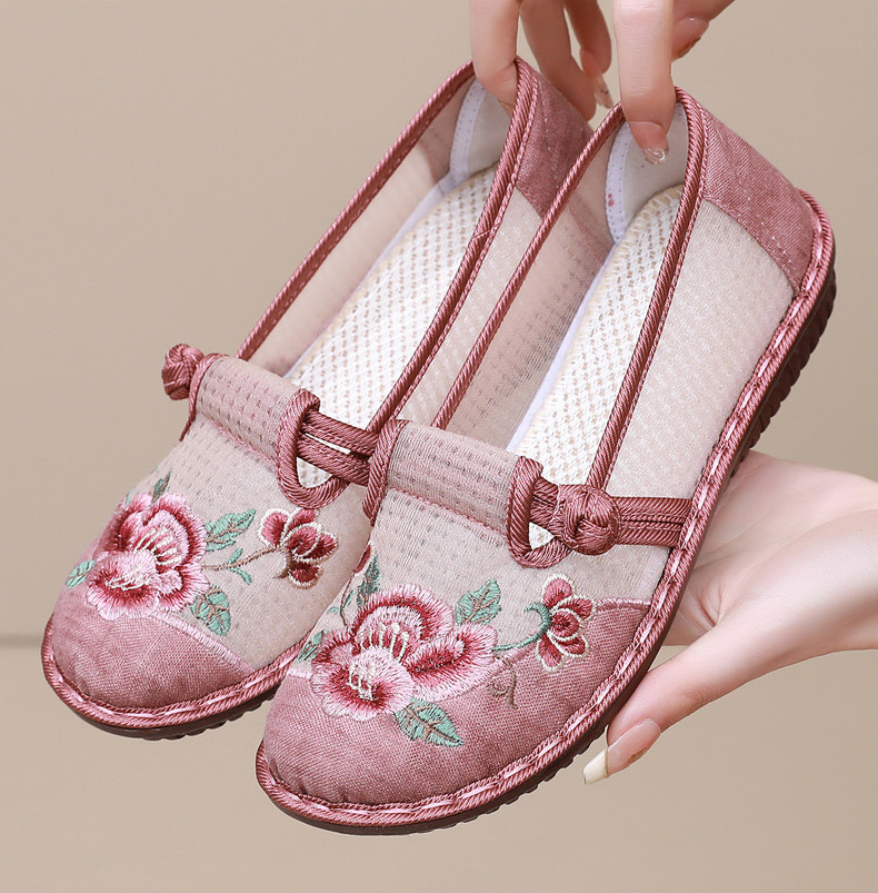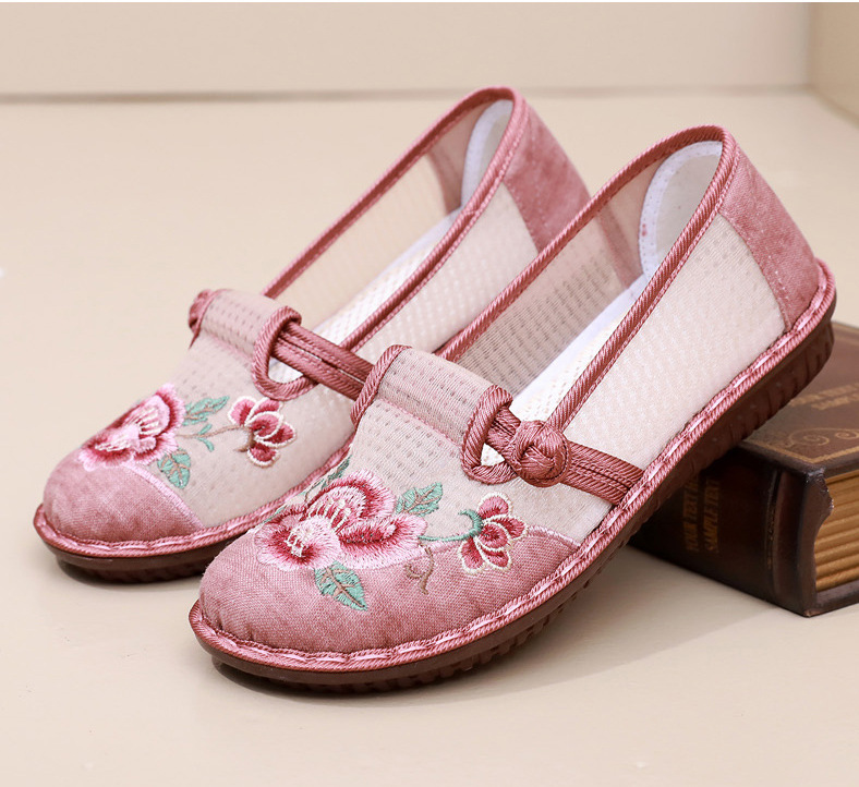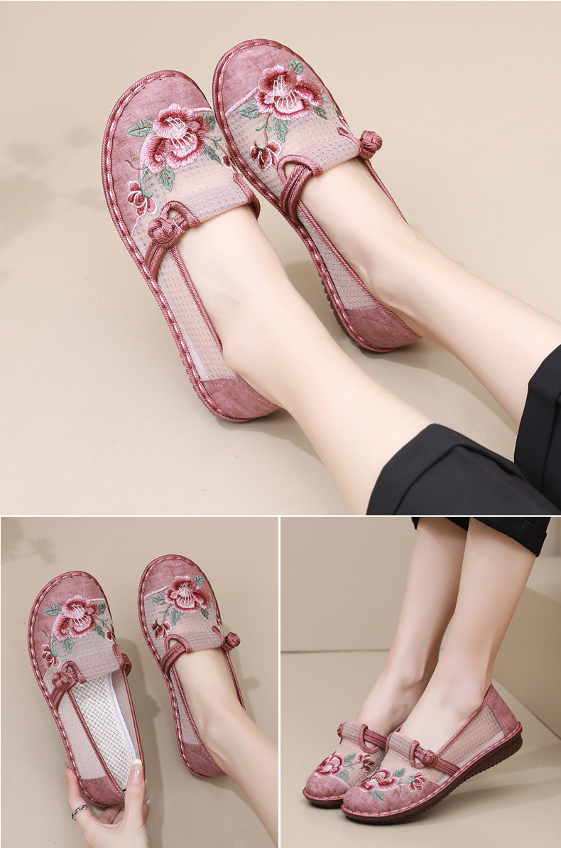 民族风绣花鞋女网鞋夏季女士一脚蹬复古时尚汉服鞋网面老北京布鞋
