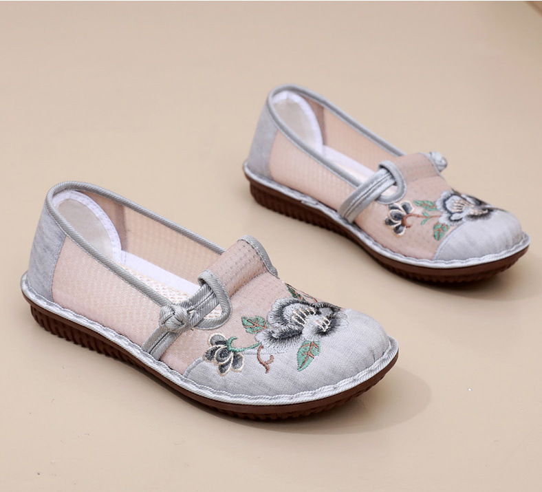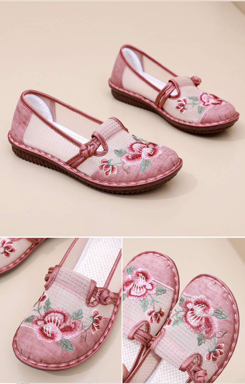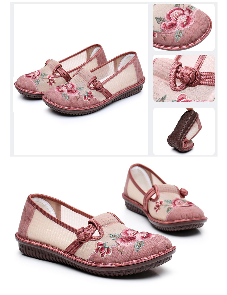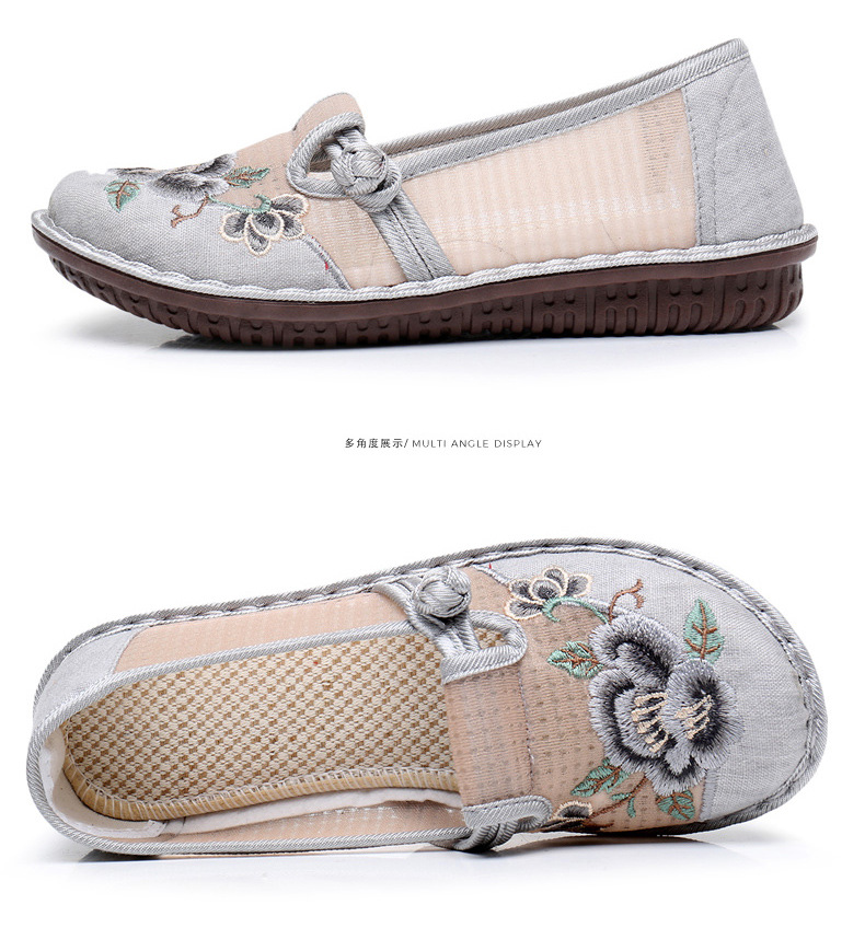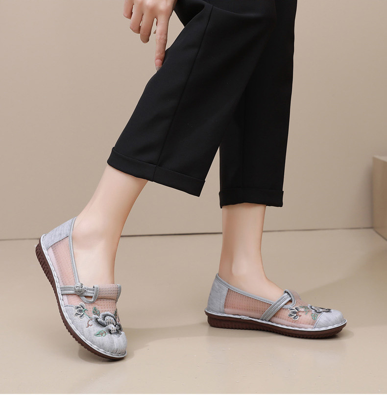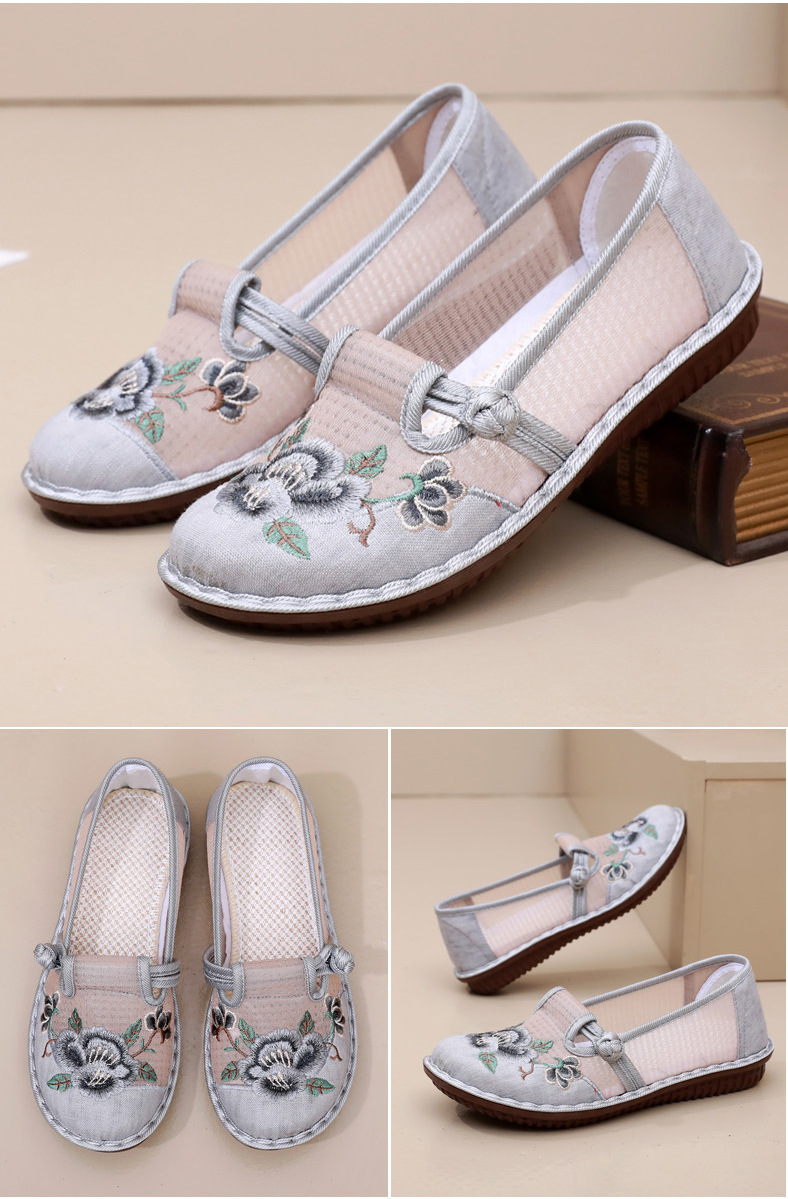 民族风绣花鞋女网鞋夏季女士一脚蹬复古时尚汉服鞋网面老北京布鞋
