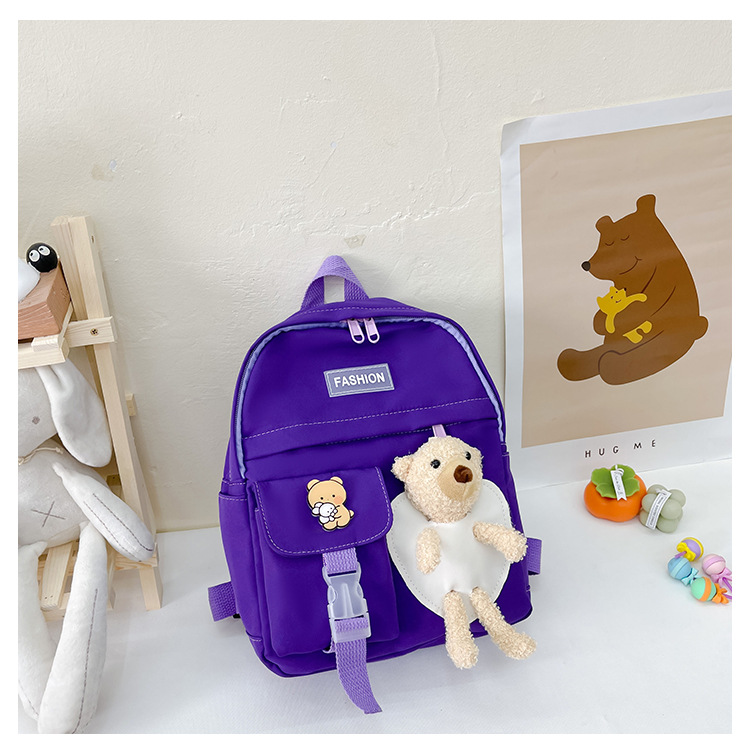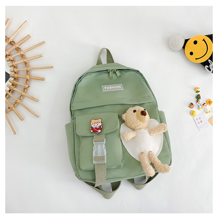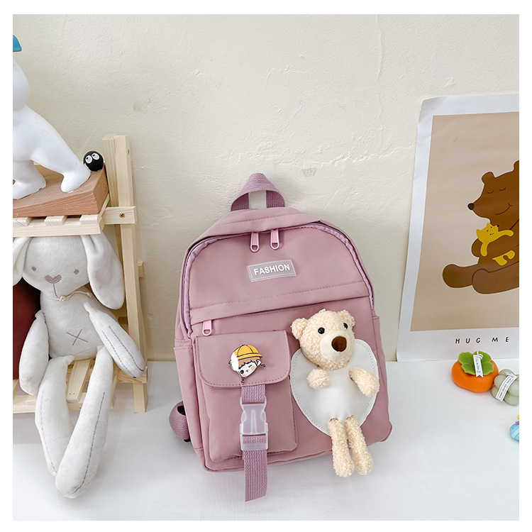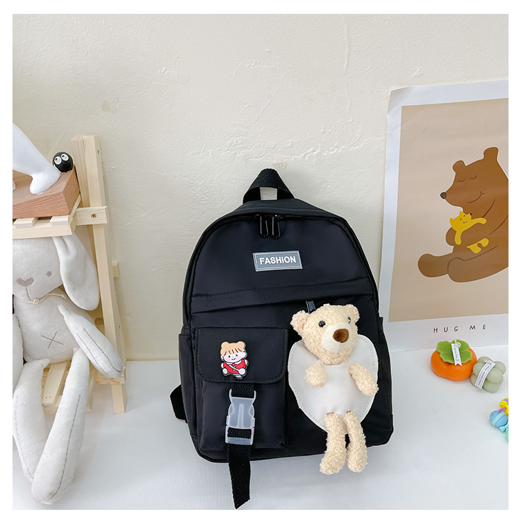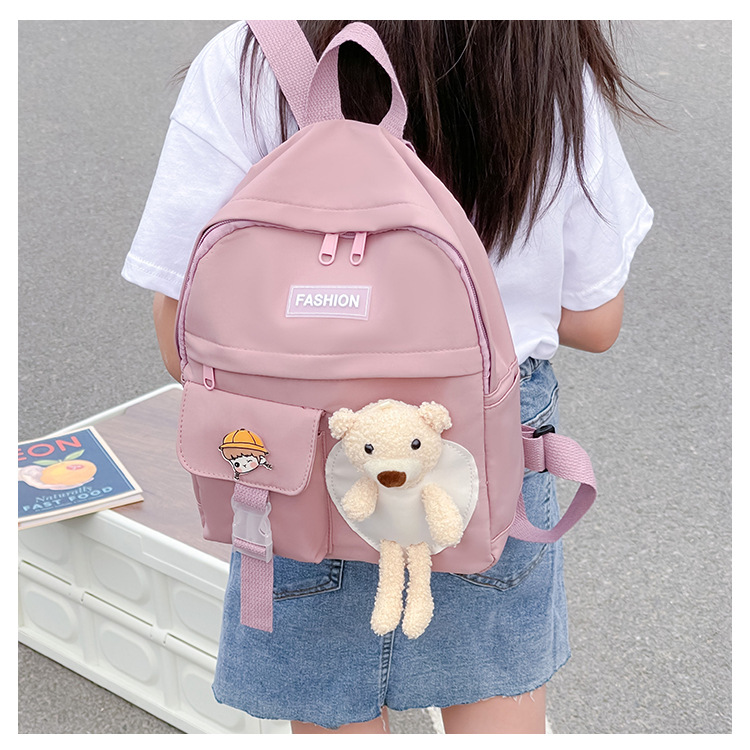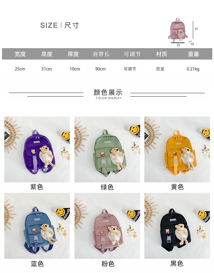 包包2025新款简约儿童书包幼儿园男孩女孩小熊玩偶外出旅游小背包