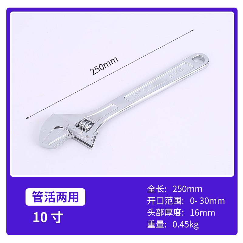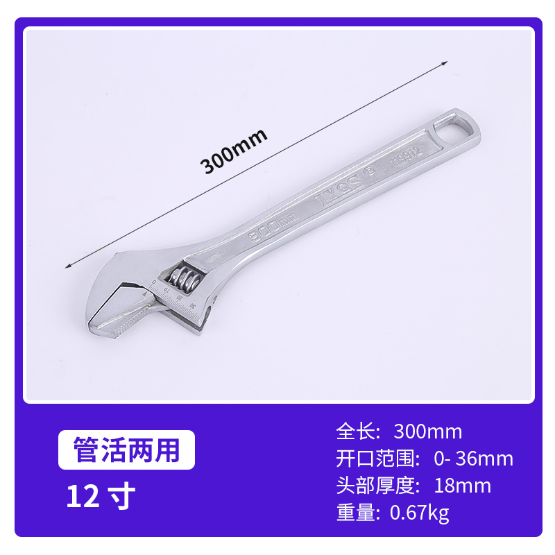 批发活动扳手鲁威五金12寸手动活动扳手活络扳手调节活口活
