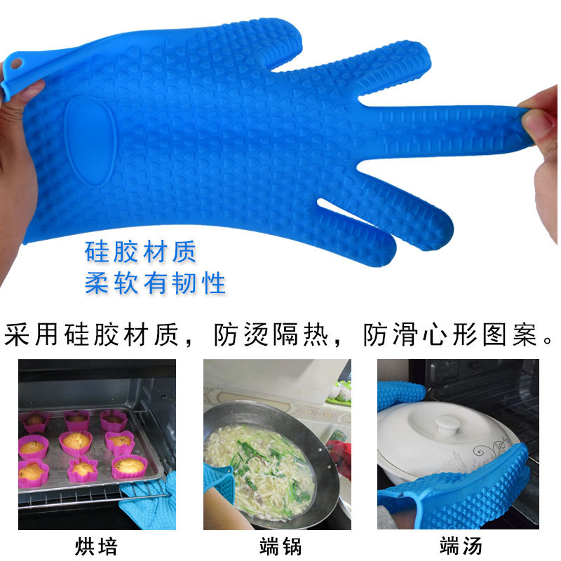 小工具 烘焙手套 五指硅胶心形隔热防滑防烫厨房烧烤微波炉烤箱