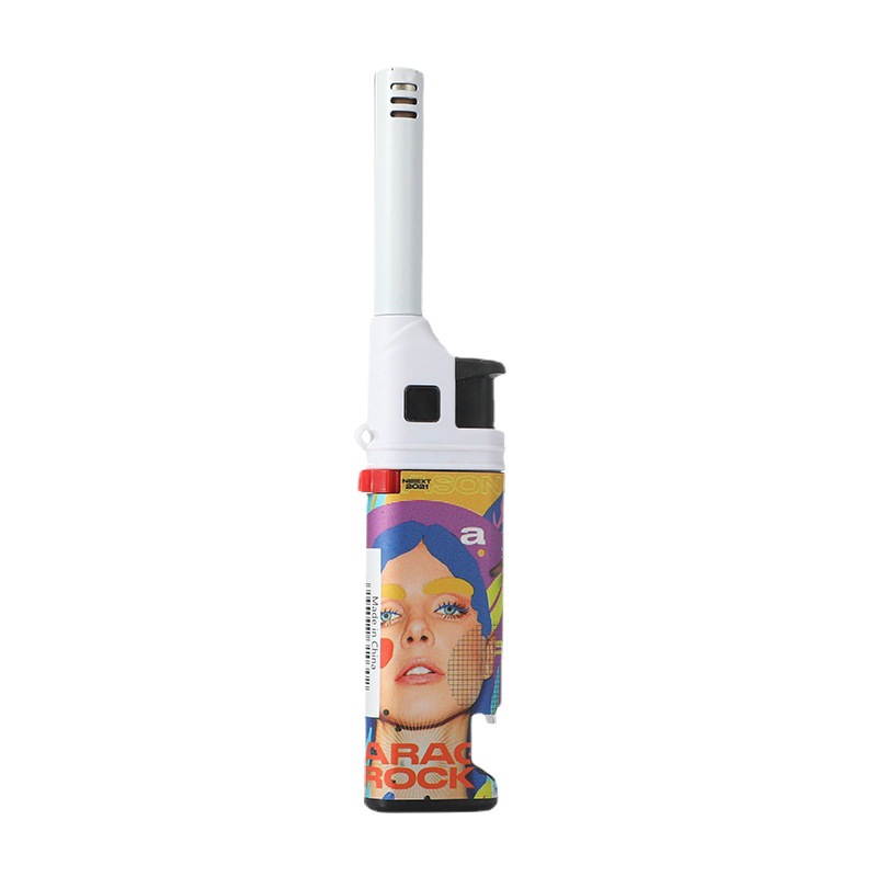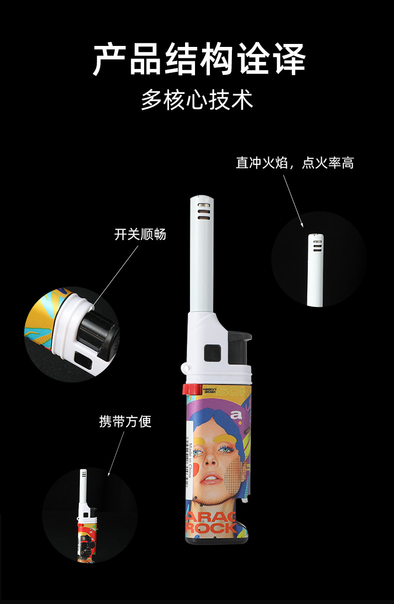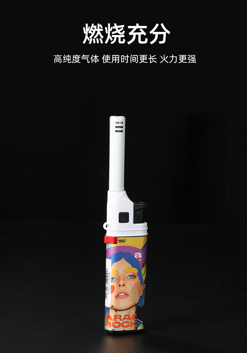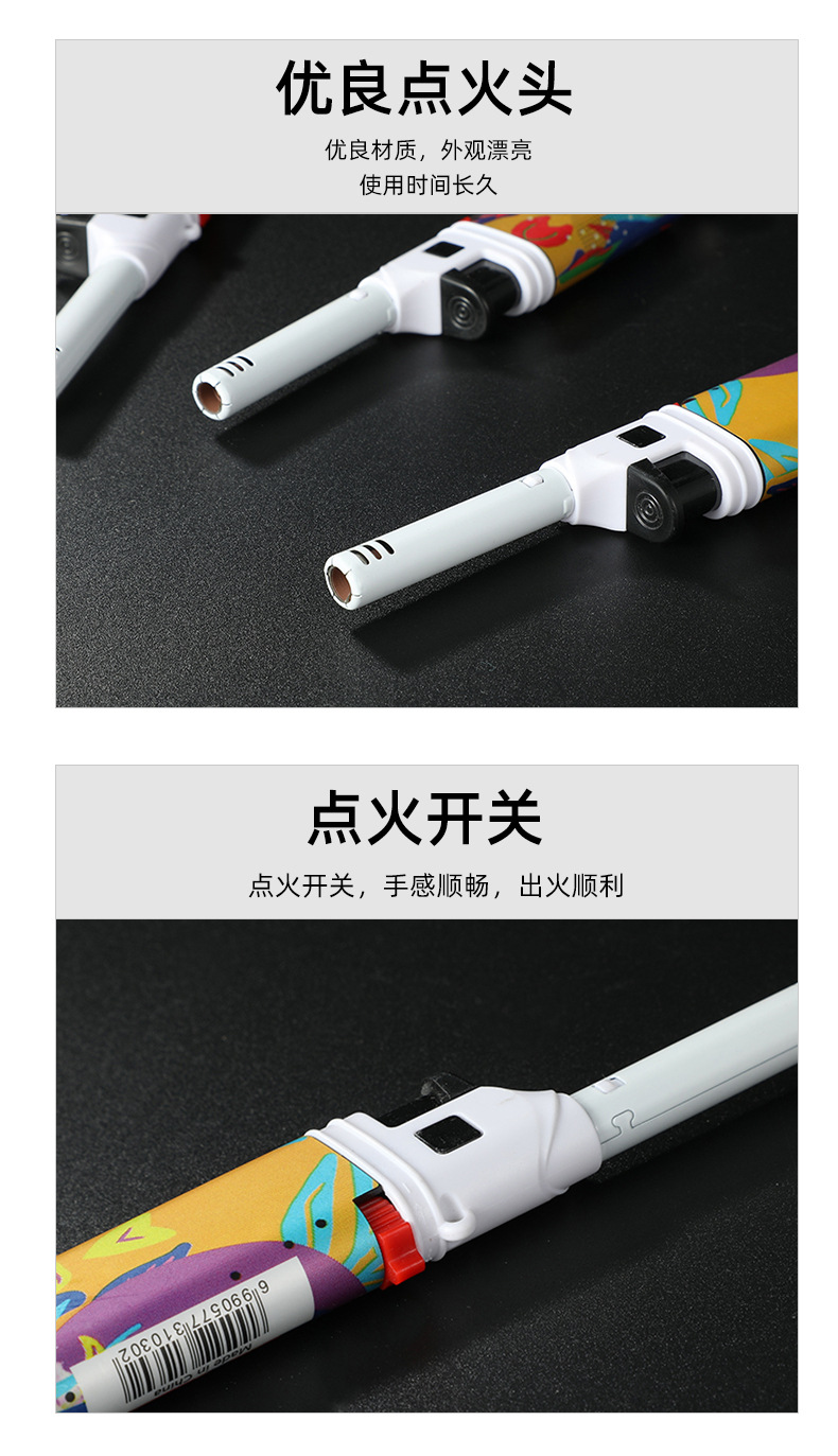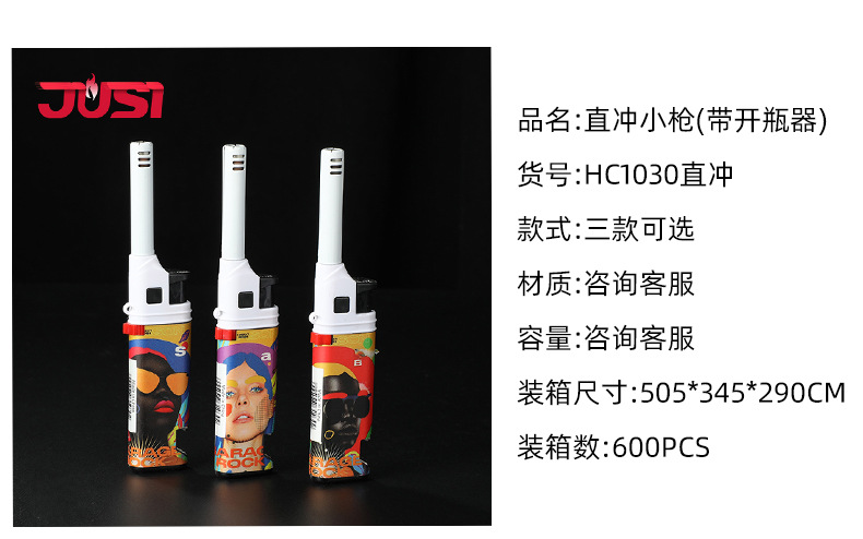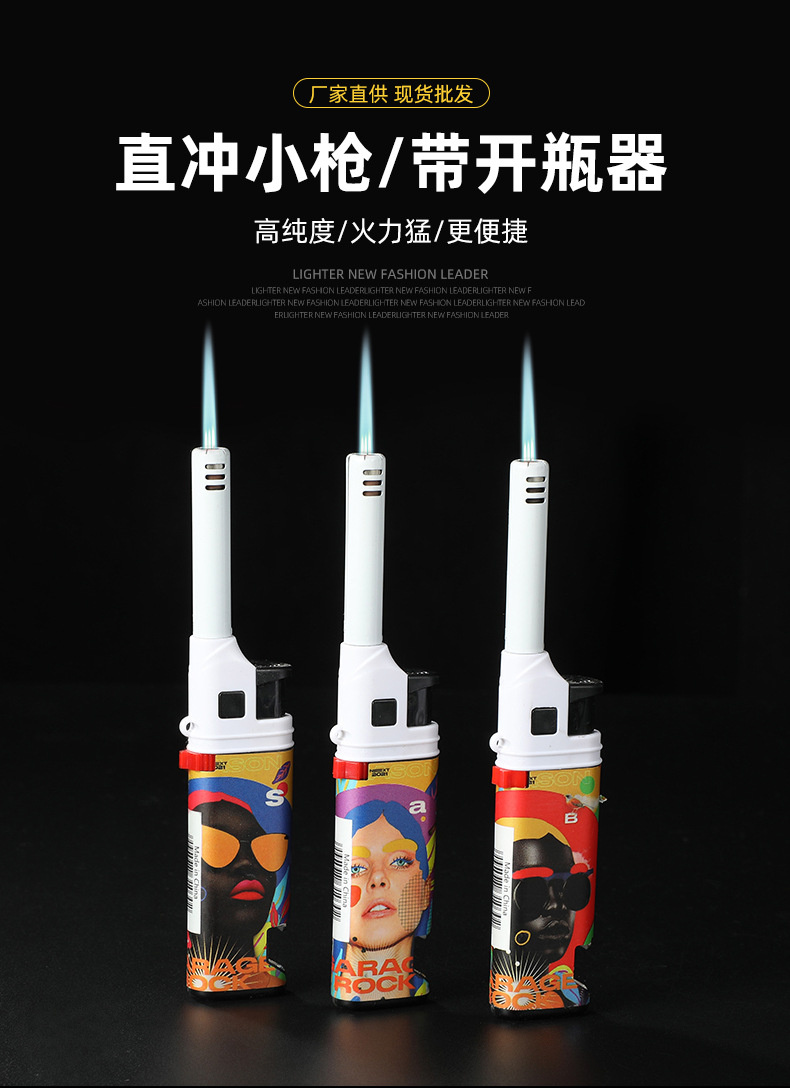 HC1030直冲欧美风图案加长嘴厨房煤气灶点火器防风打火机带开瓶器