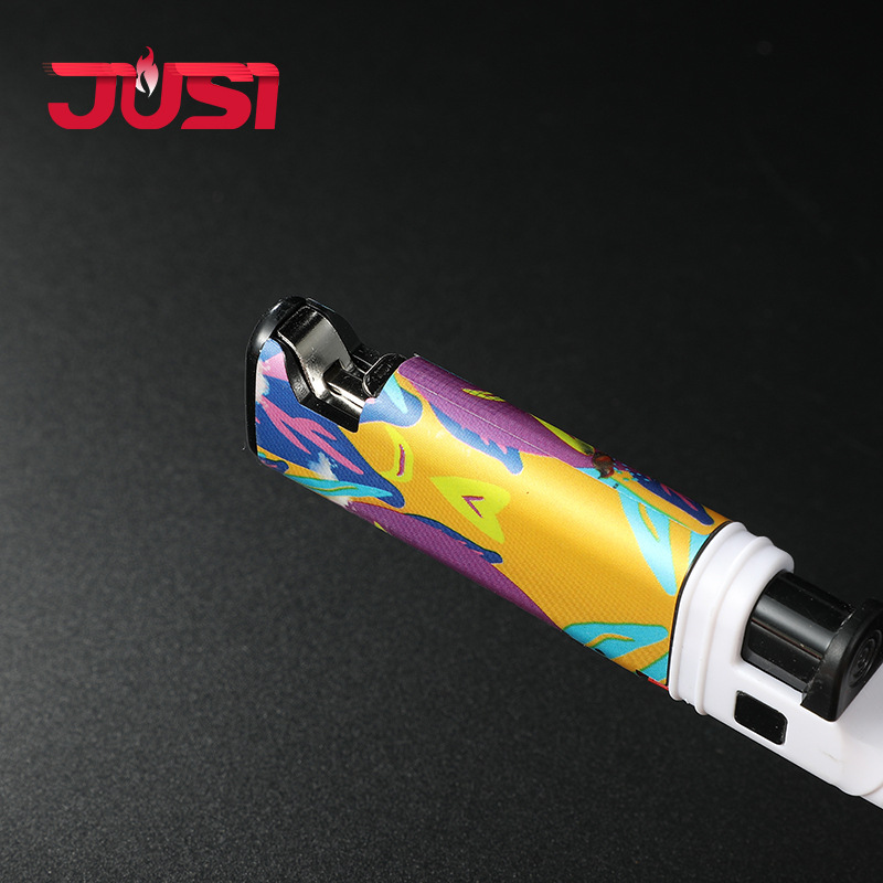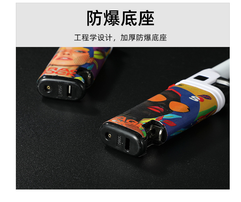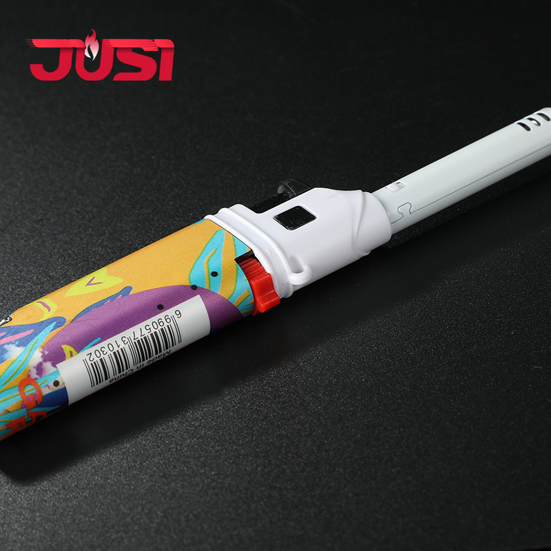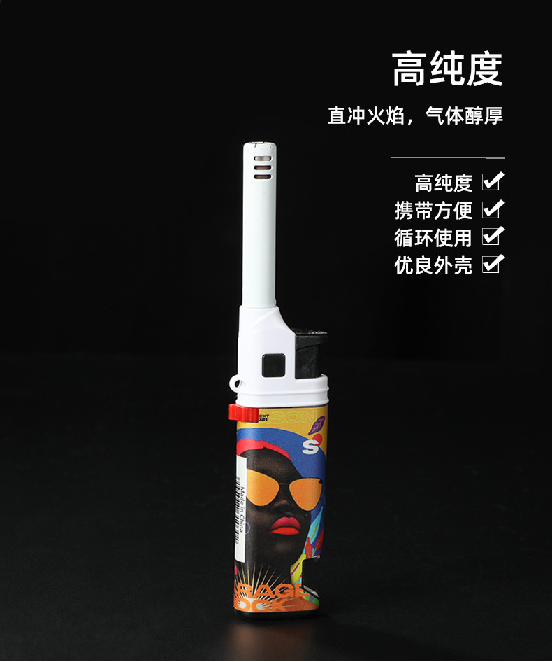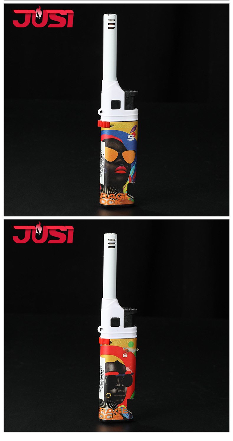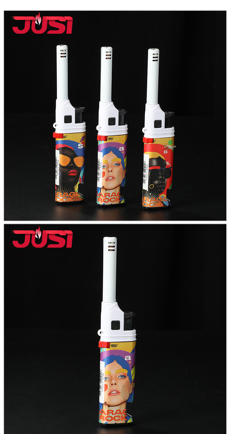 HC1030直冲欧美风图案加长嘴厨房煤气灶点火器防风打火机带开瓶器