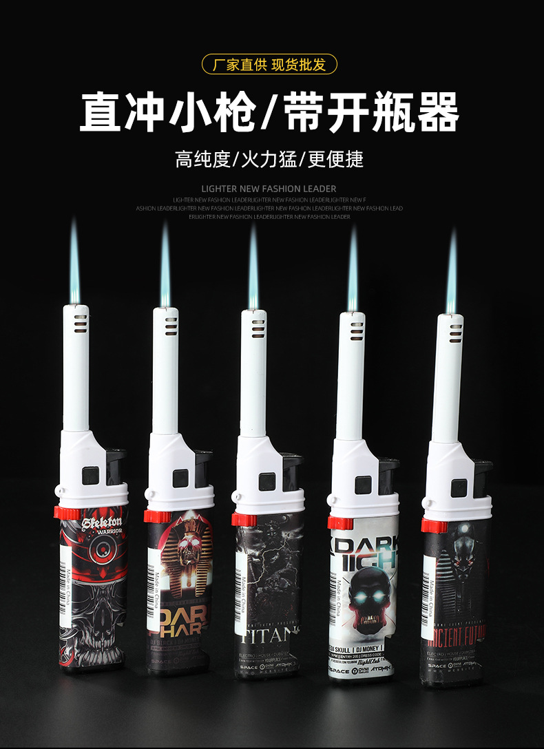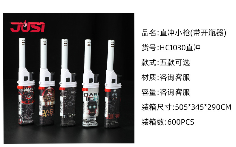 HC1030直冲包纸防风打火机 加长嘴自带开瓶器点火器厂家现货批发