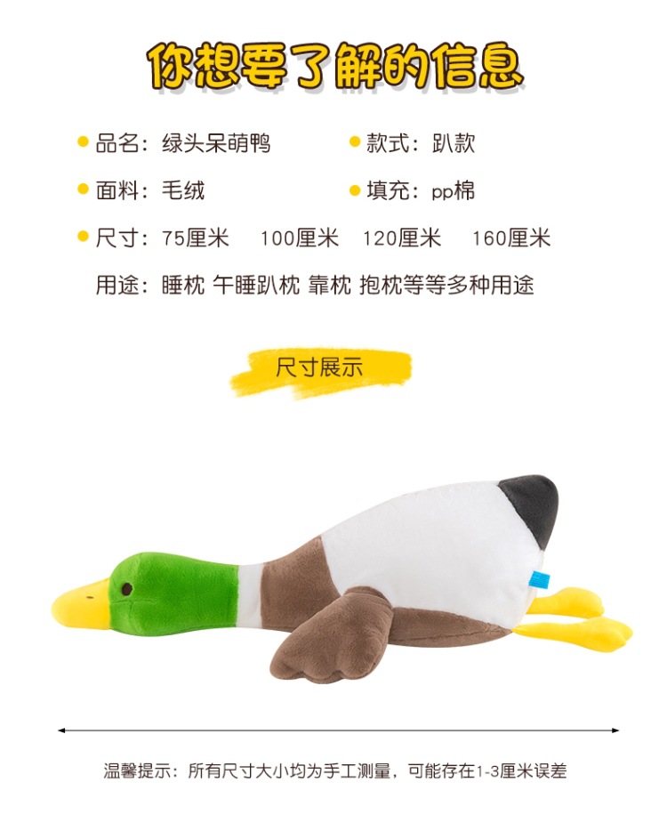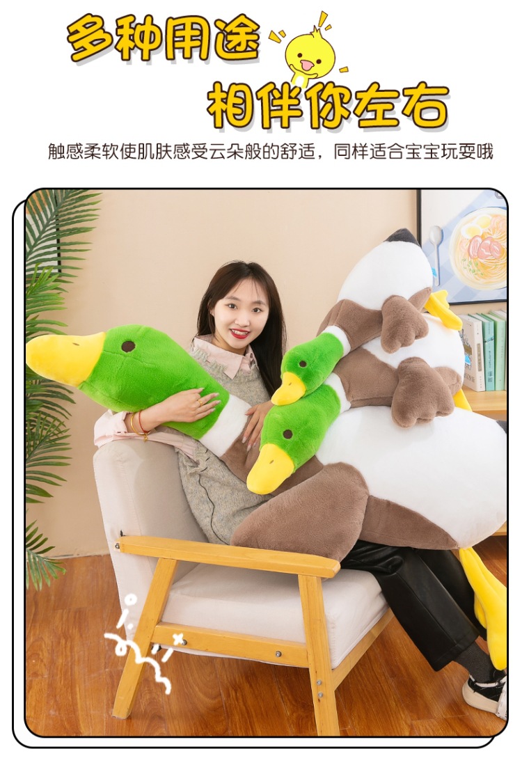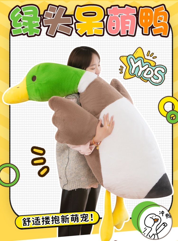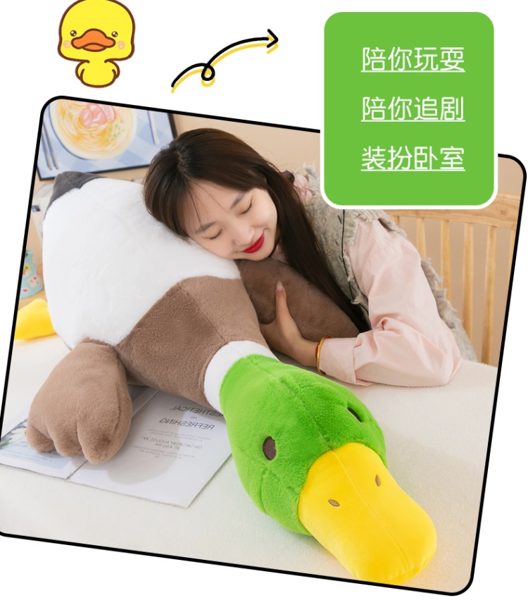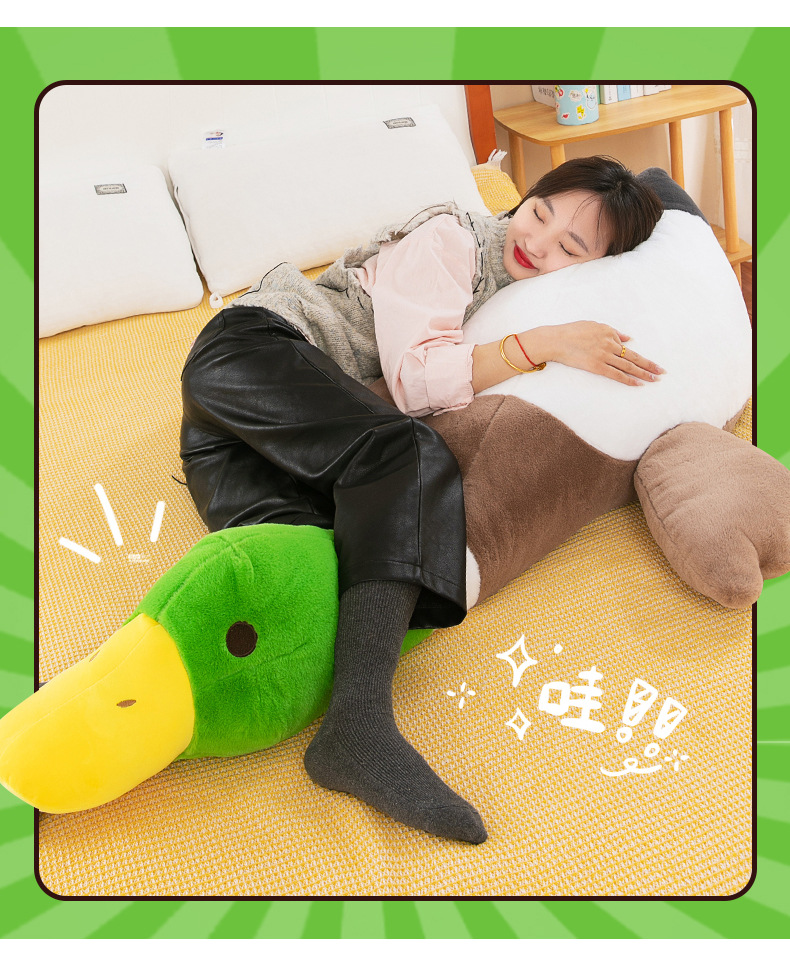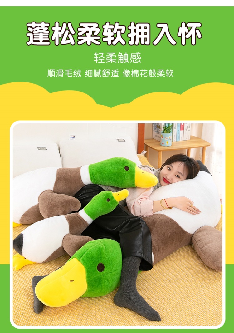 超萌绿头鸭公仔毛绒玩具长条抱枕送女友生日礼物安抚儿童娃娃批发