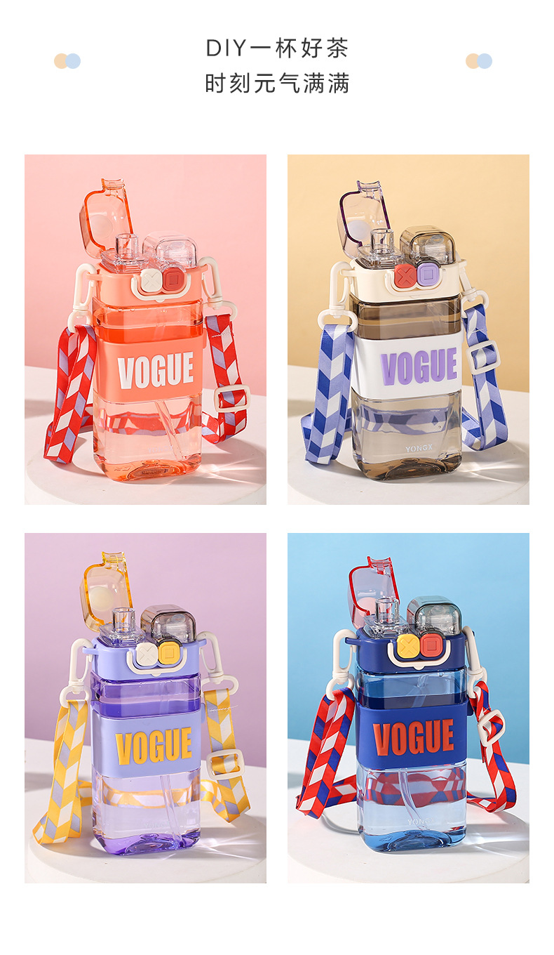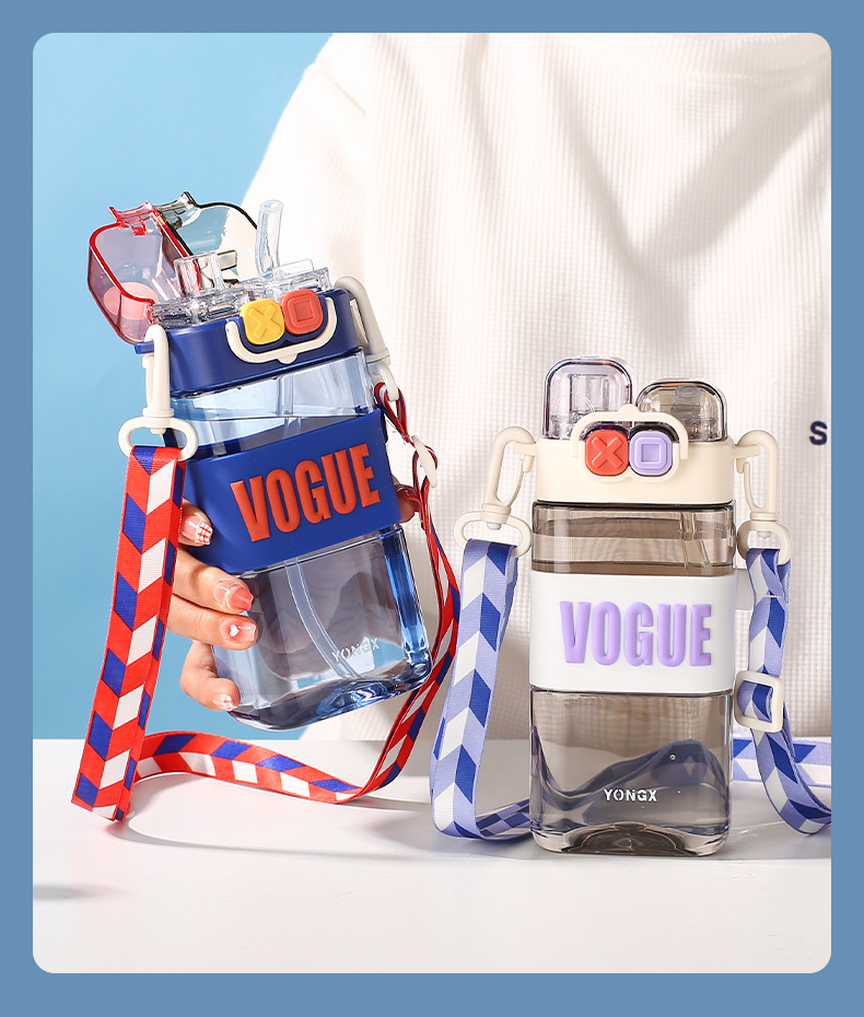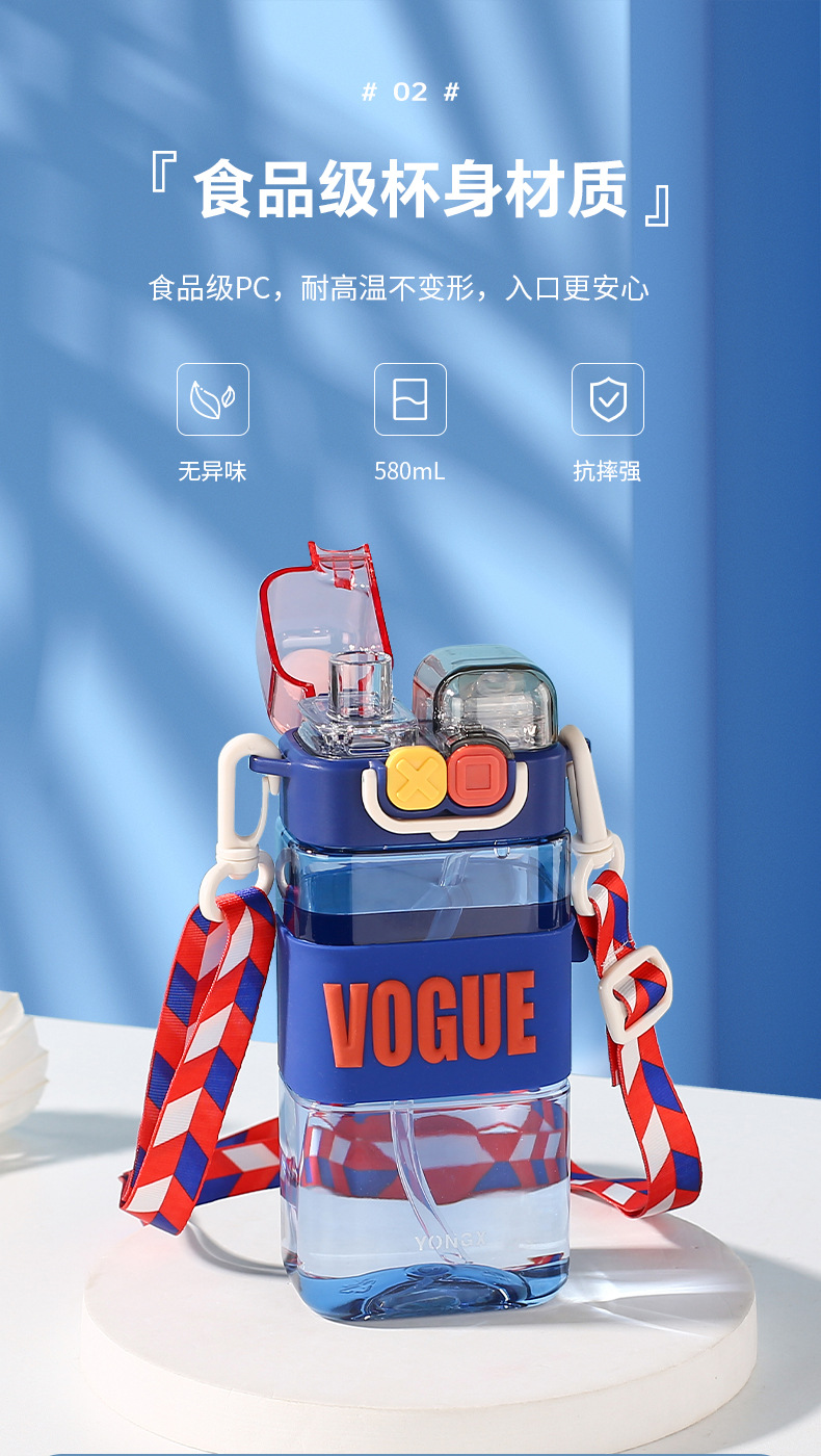 高颜值双饮男女生朋克吸管杯户外运动塑料杯创意便携大容量儿童杯