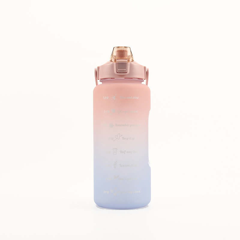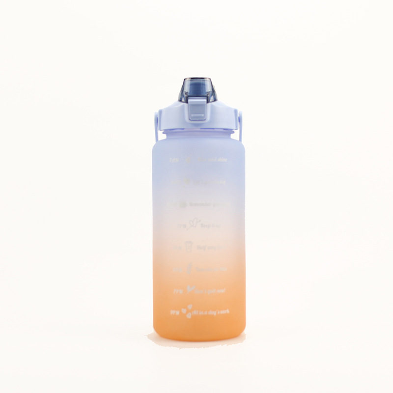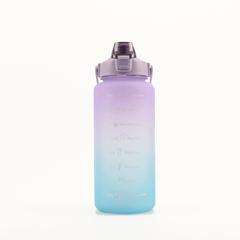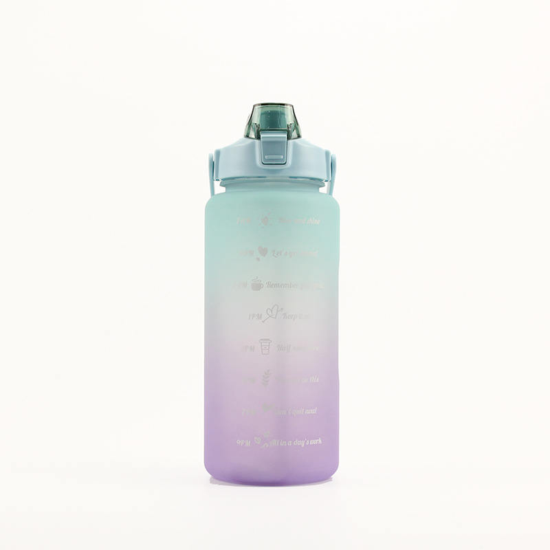 亚马逊爆款2000ML大容量喷砂渐变弹盖水壶户外便捷手提水杯彩虹杯