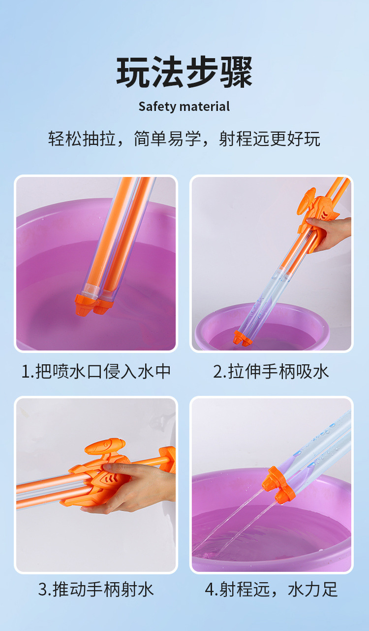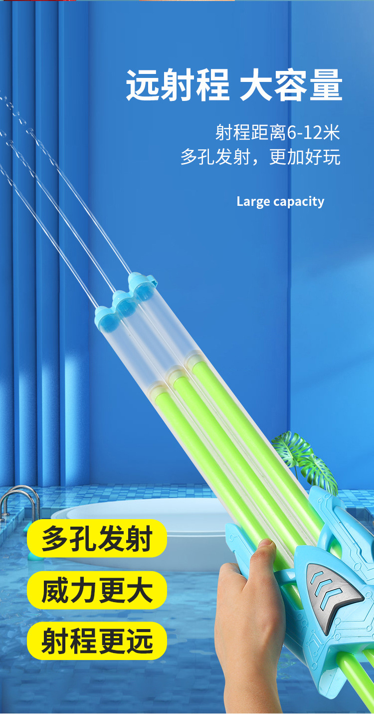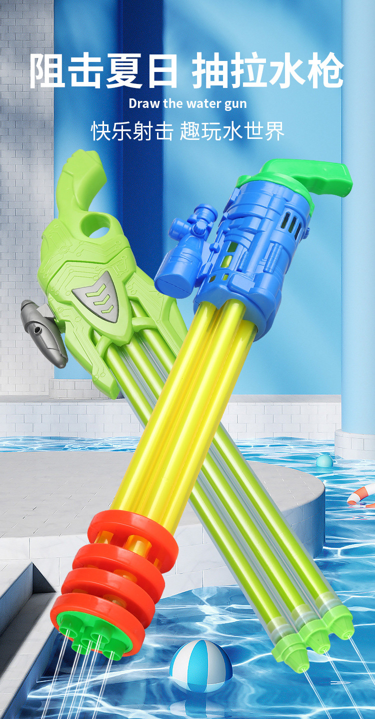 儿童水枪玩具抽拉式多孔 夏天漂流水炮神器沙滩戏水地摊大号水抽