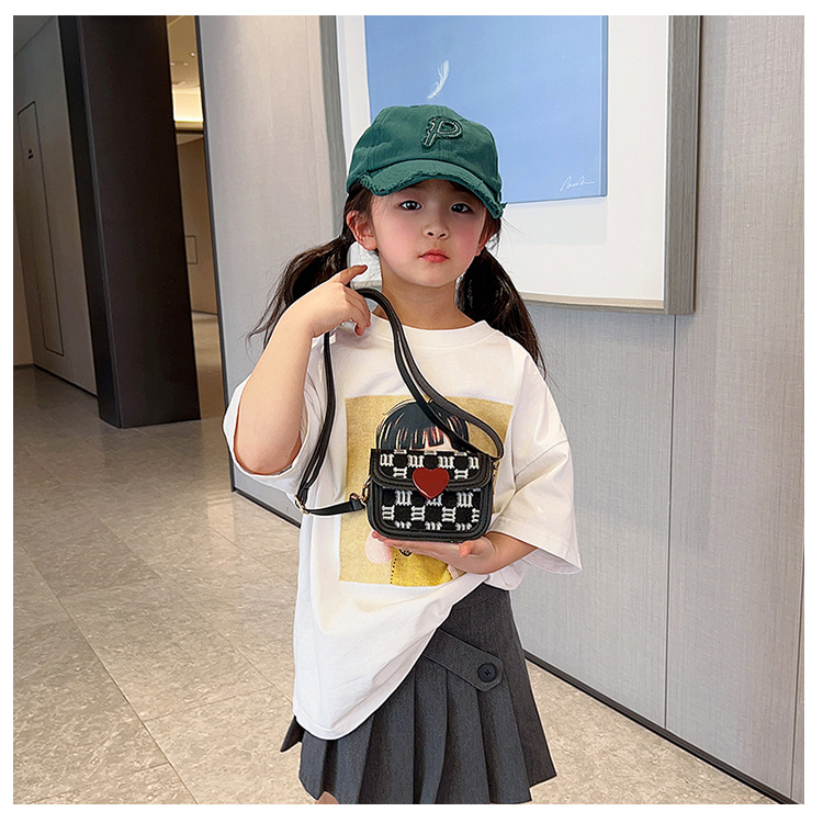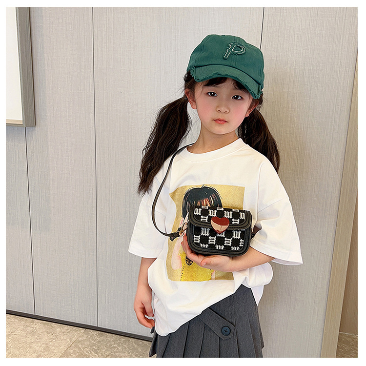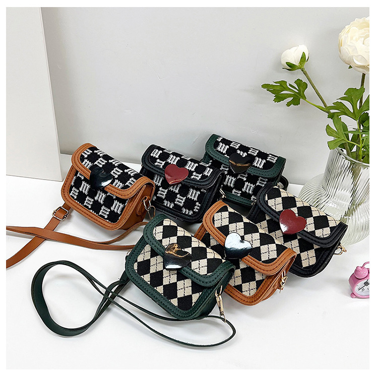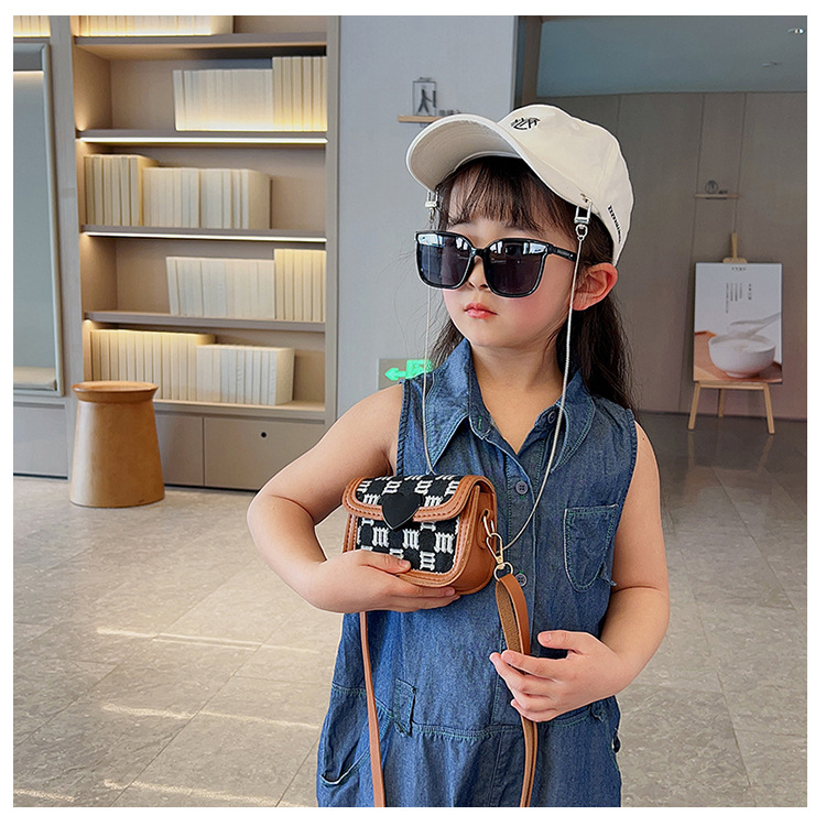 潮流儿童零钱包 新款韩版格子复古mini斜挎包洋气女童时尚单肩包