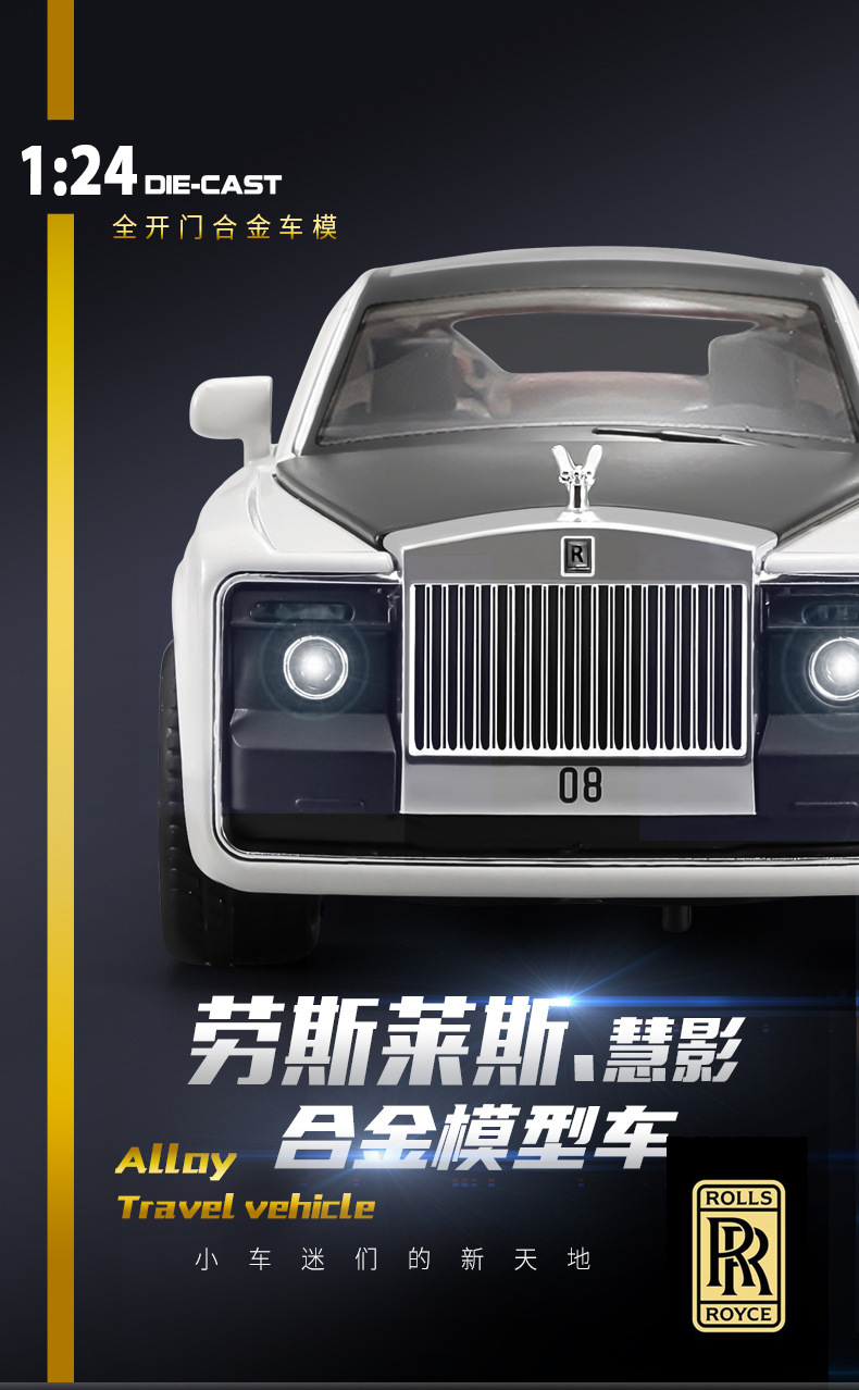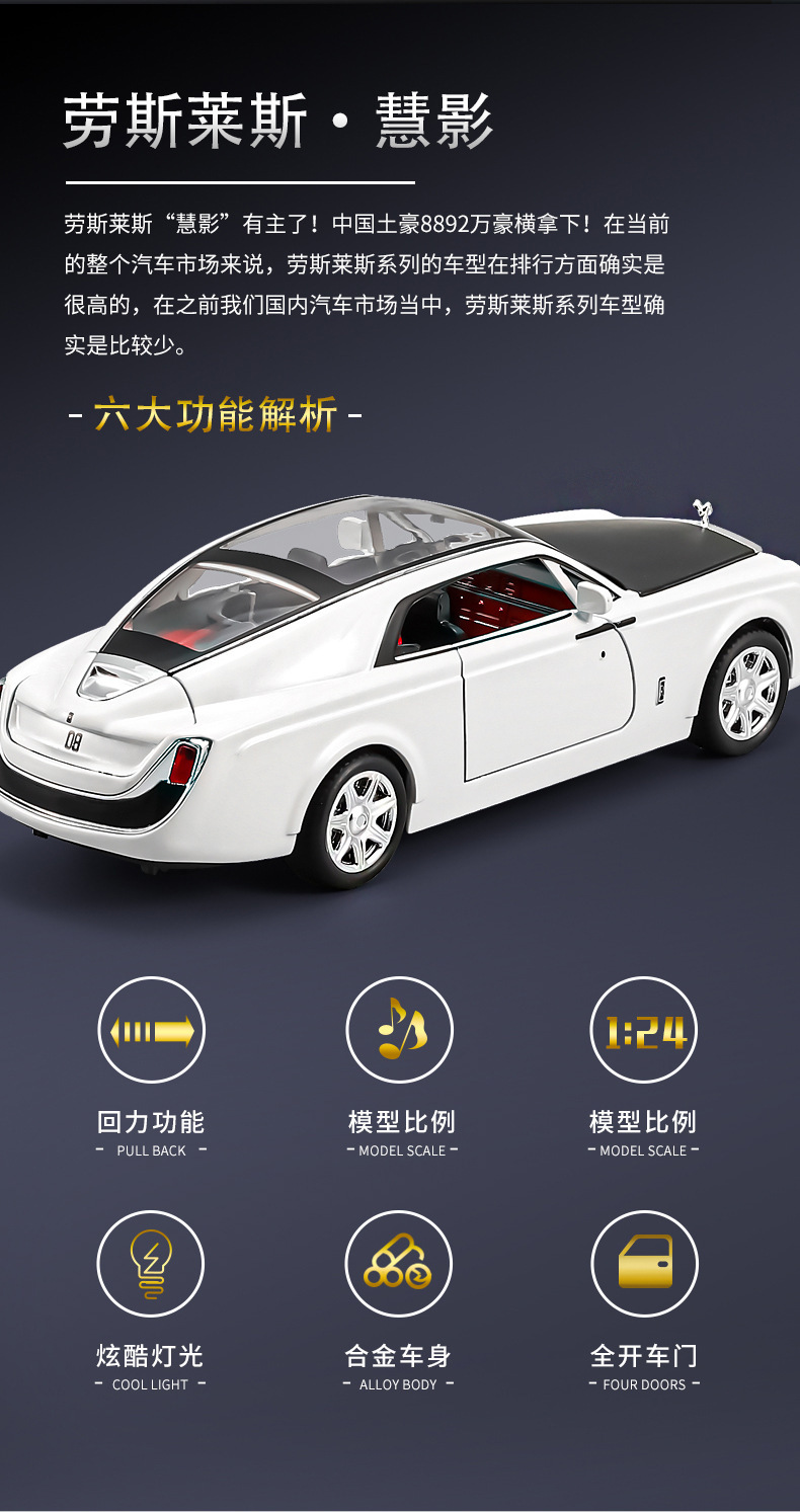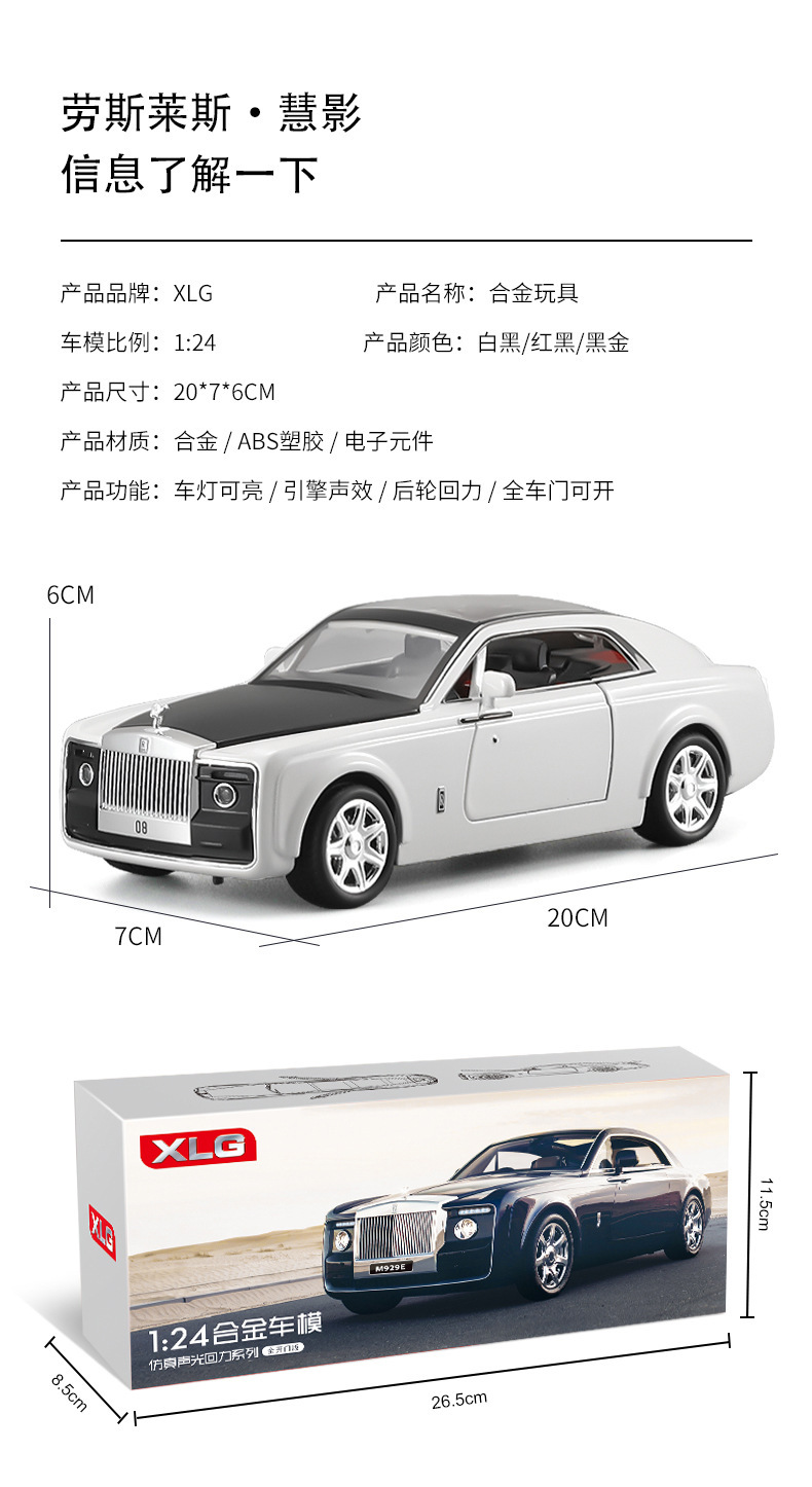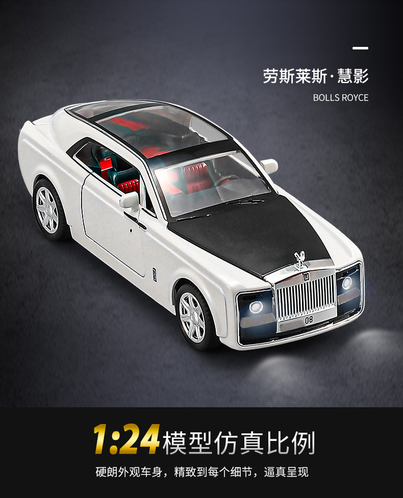 1:24仿真劳斯慧影莱斯合金跑车模型玩具汽车摆件收藏儿童声光回力