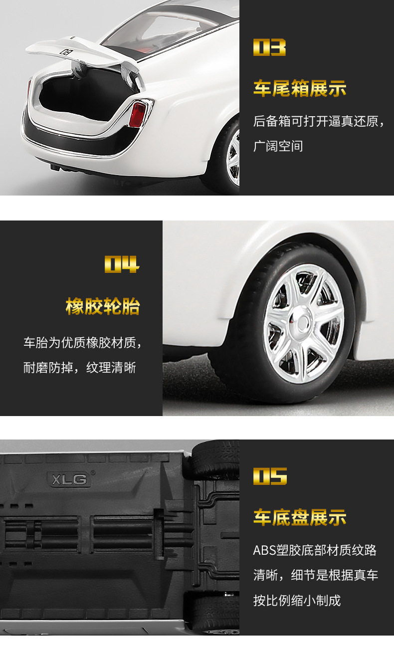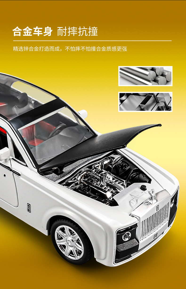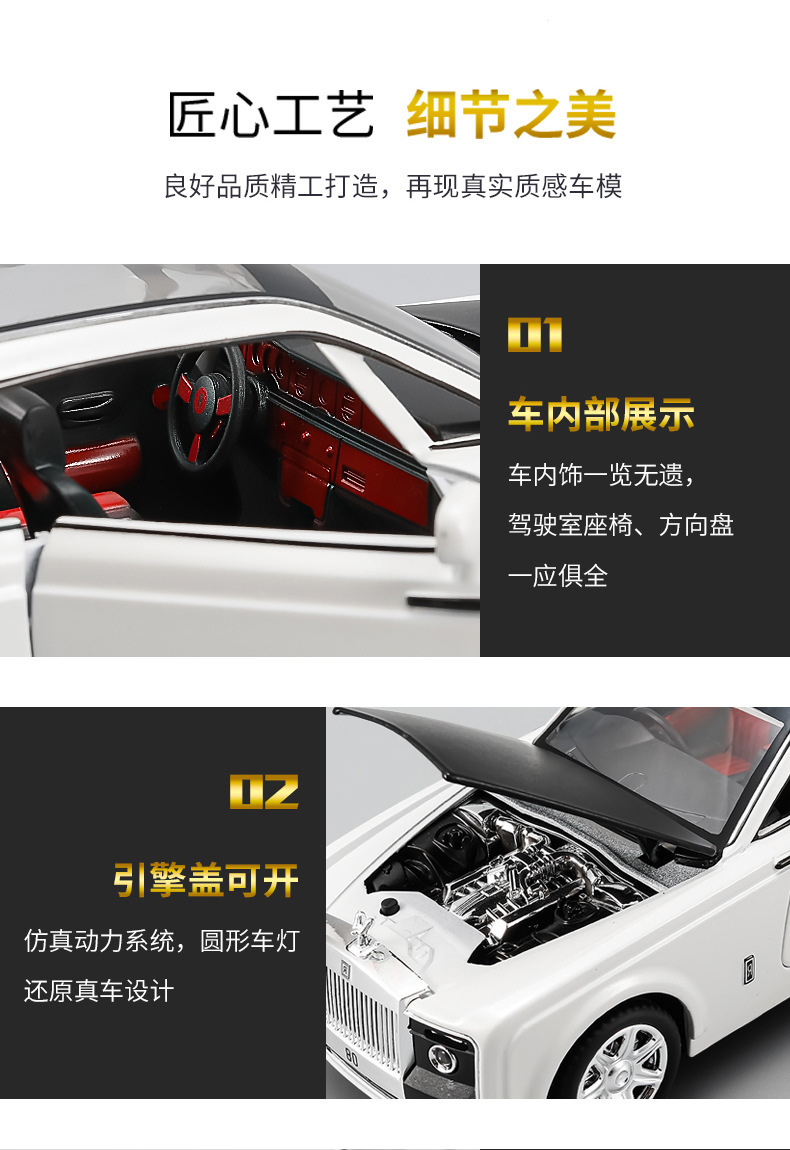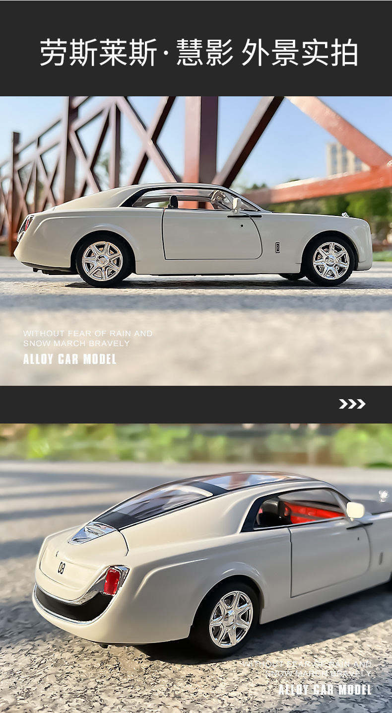 1:24仿真劳斯慧影莱斯合金跑车模型玩具汽车摆件收藏儿童声光回力