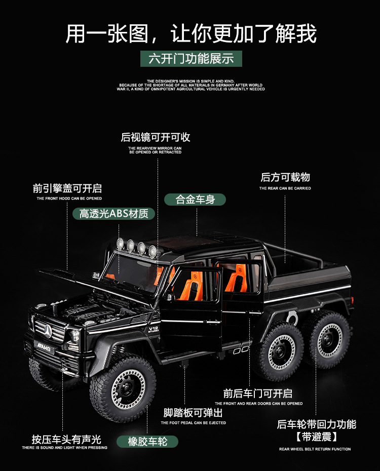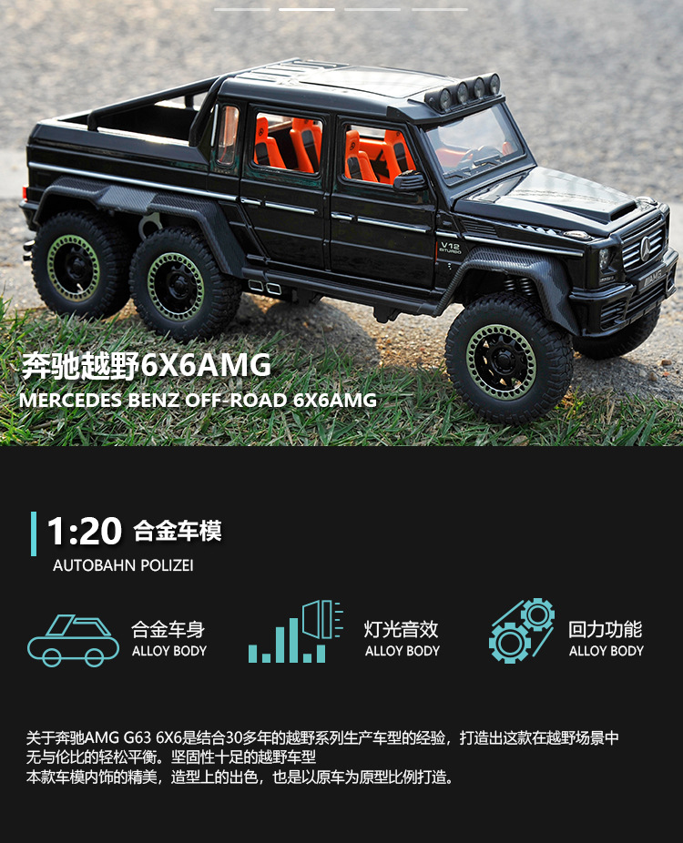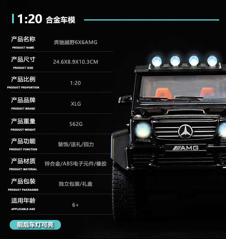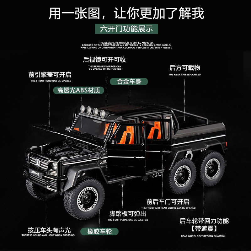 仿真奔驰越野6x6AMG皮卡男孩玩具汽车儿童玩具汽车模型合金礼品