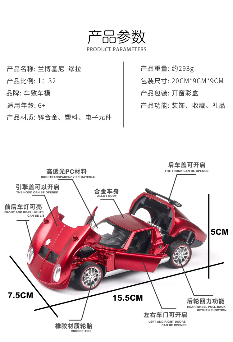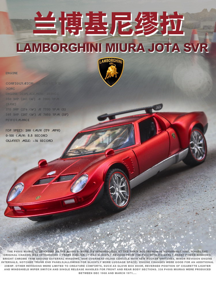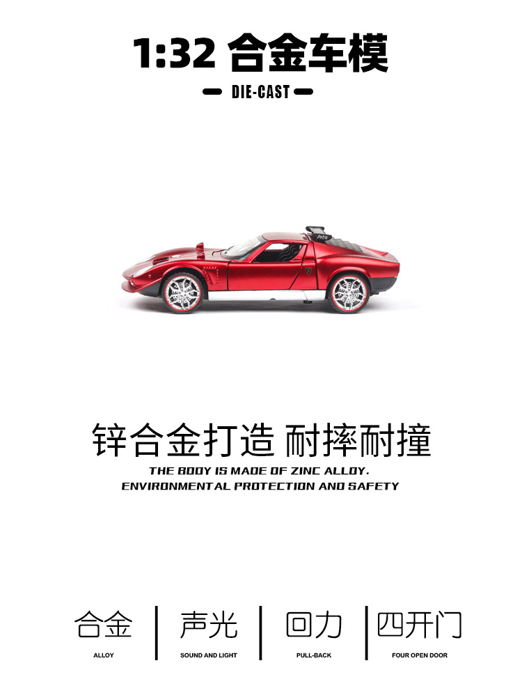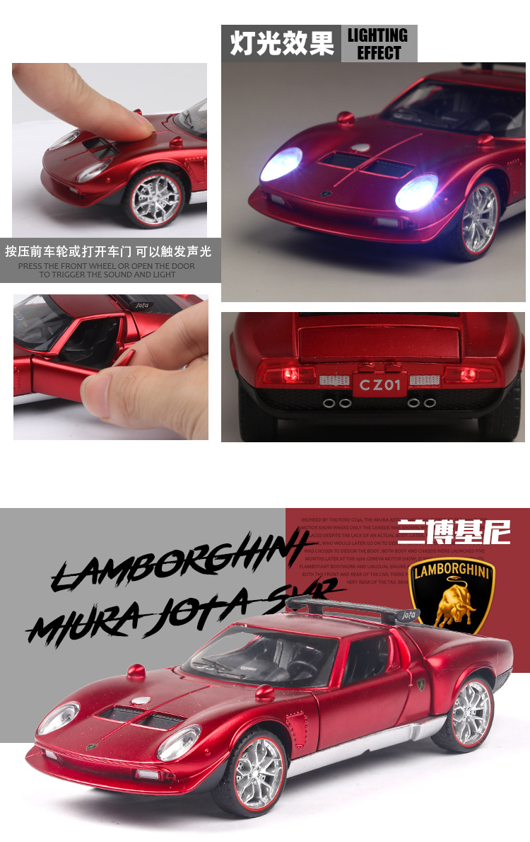 1:32合金汽车模型回力声光玩具兰博大牛缪拉老跑车男孩限量版收藏