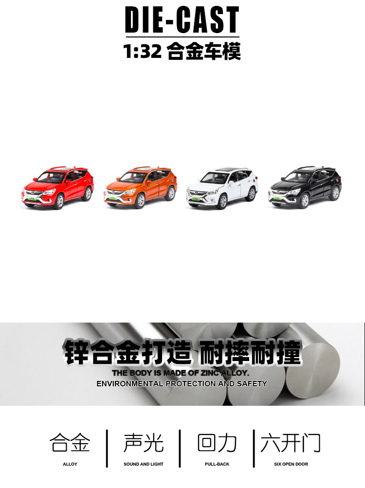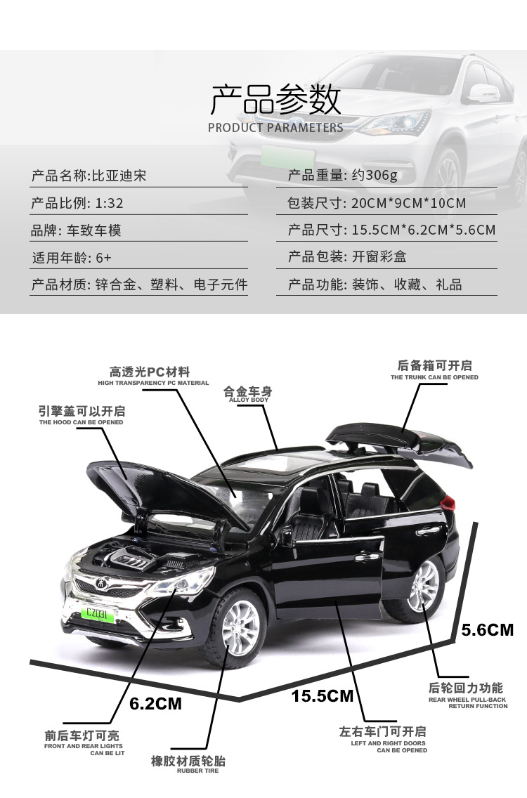 1:32比亚迪宋合金汽车模型越野车男孩仿真车声光六开门回力金属车