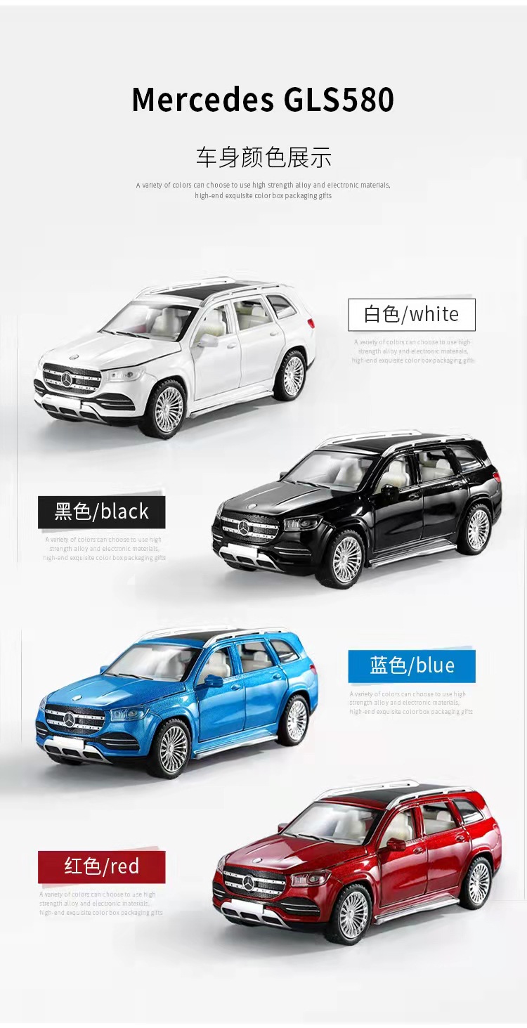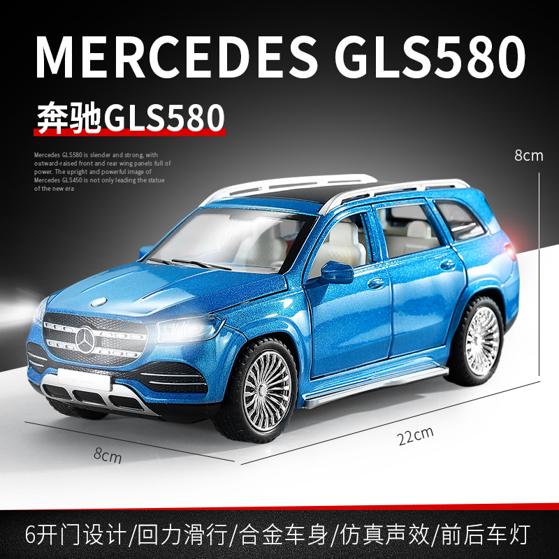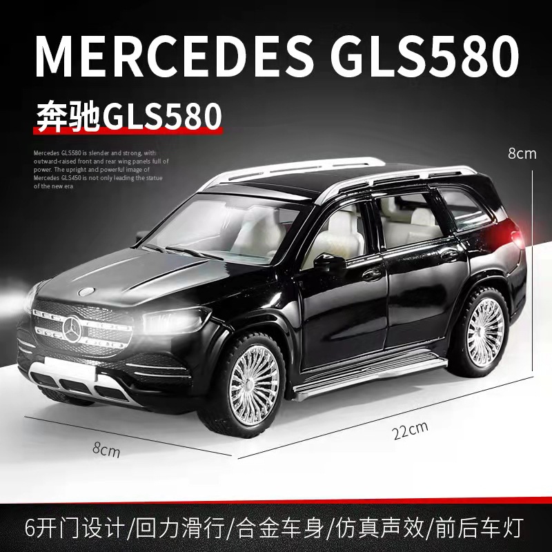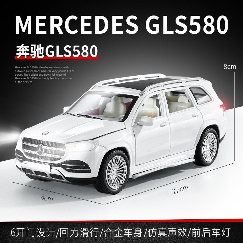 1:24奔驰GLS580合金模型汽车模型摆件男孩玩具灯光音乐越野车