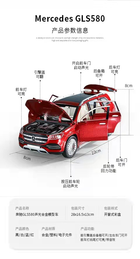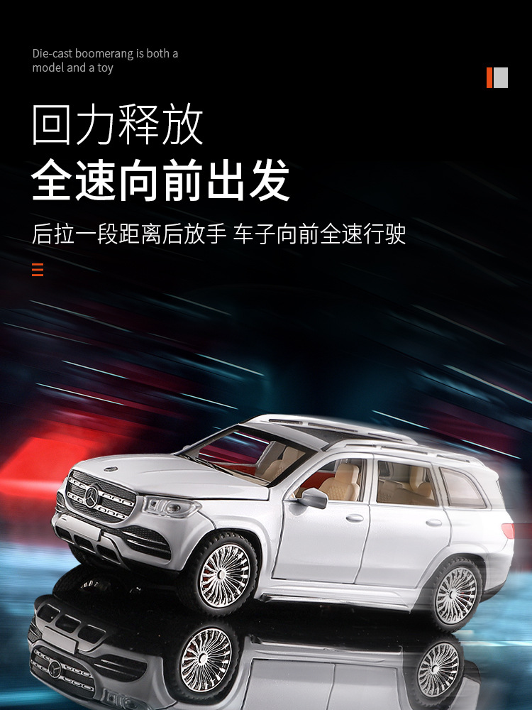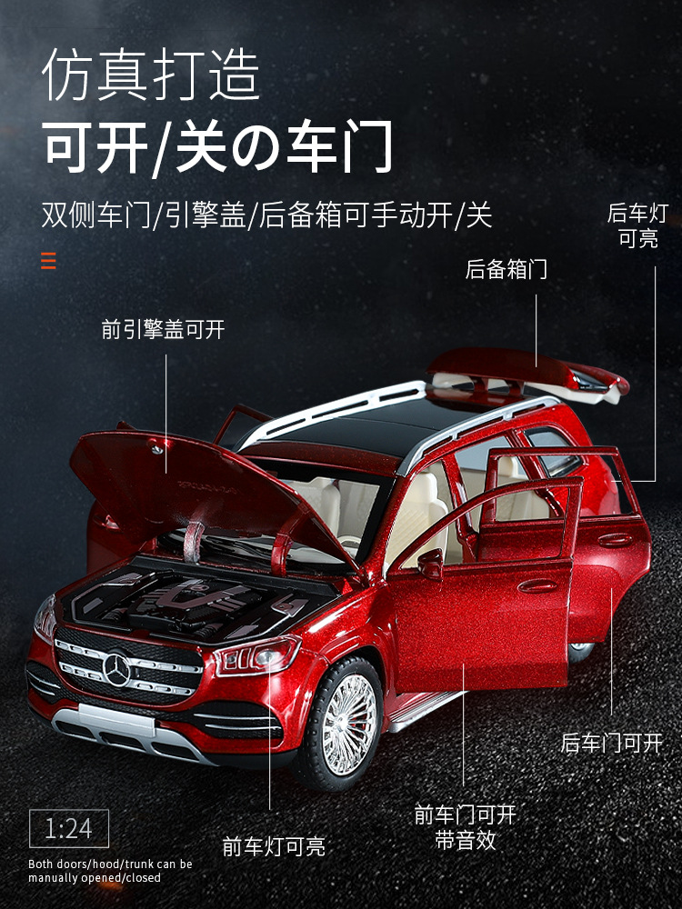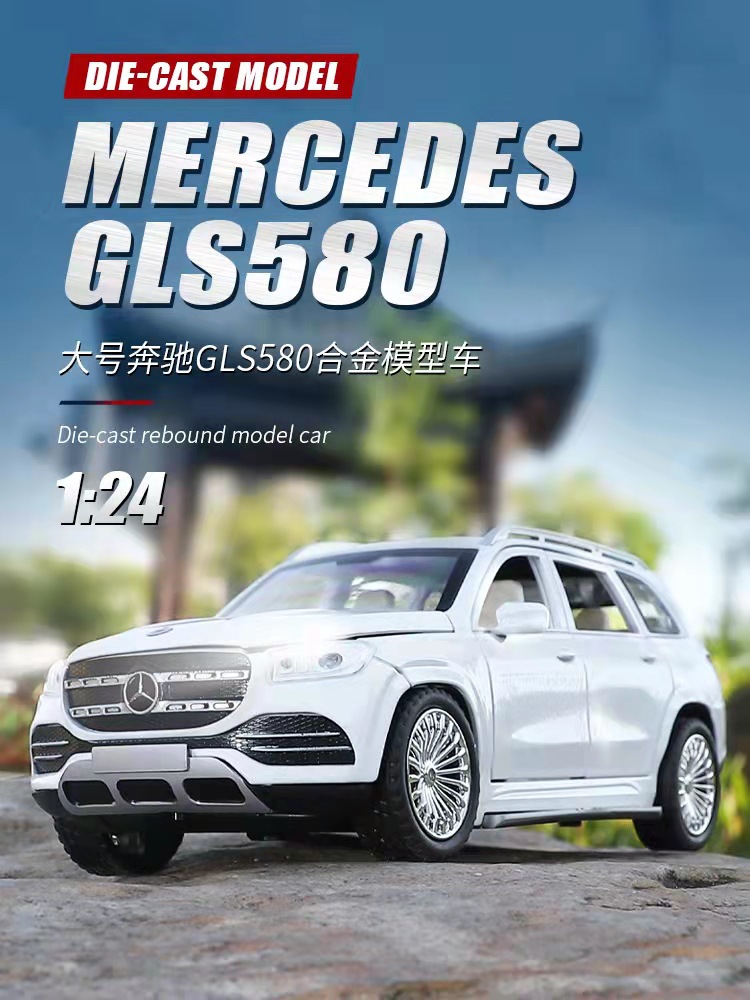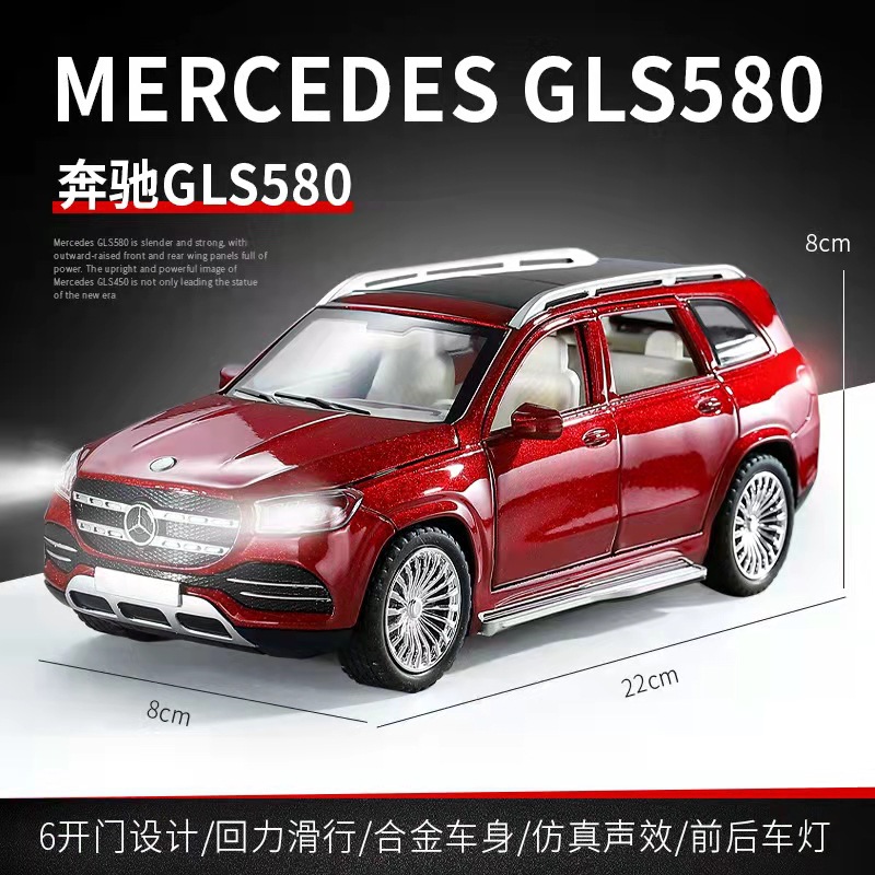 1:24奔驰GLS580合金模型汽车模型摆件男孩玩具灯光音乐越野车