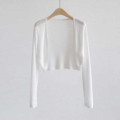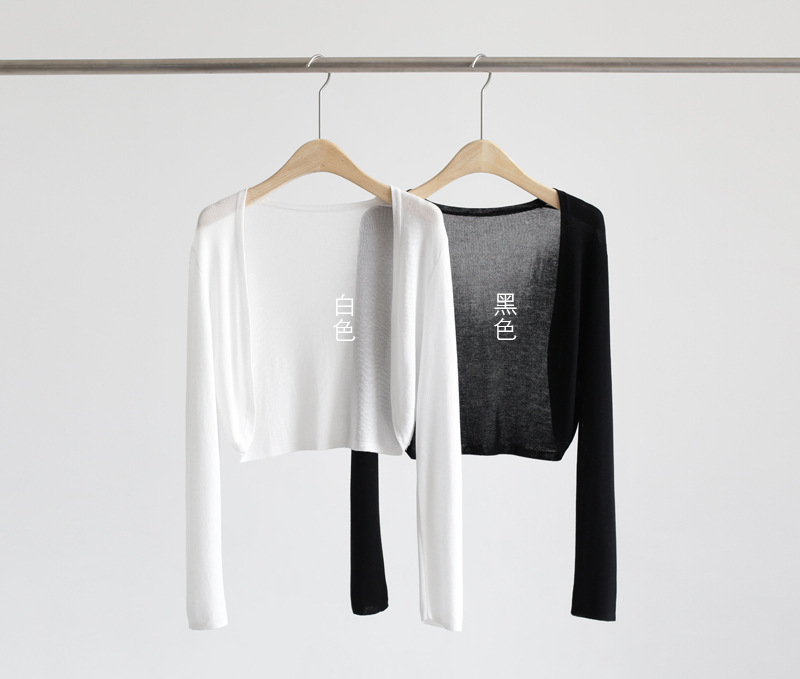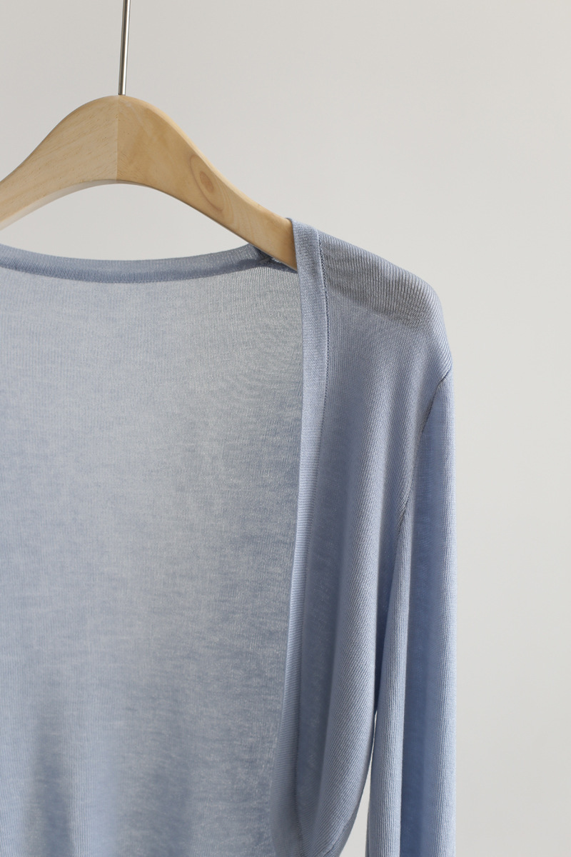 天丝开衫长袖无扣披肩超薄针织防晒衫修身外搭女V领短款空调衫
