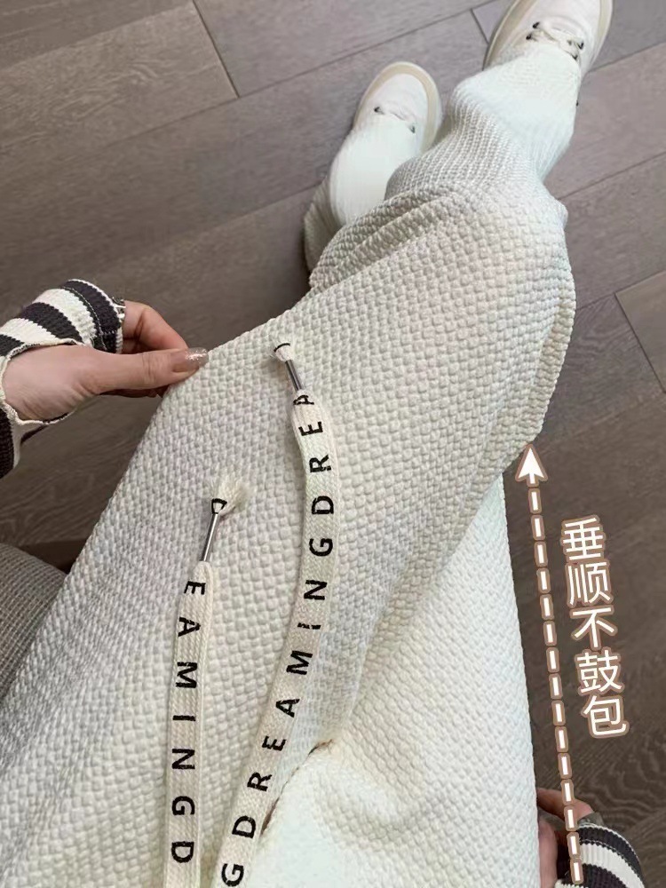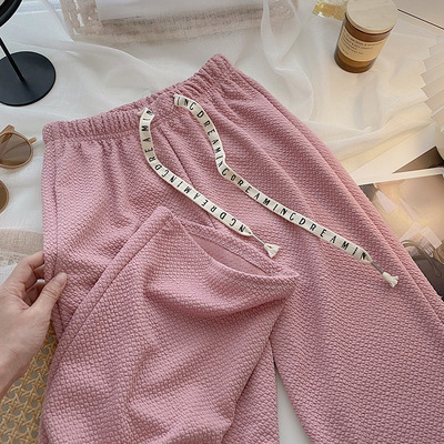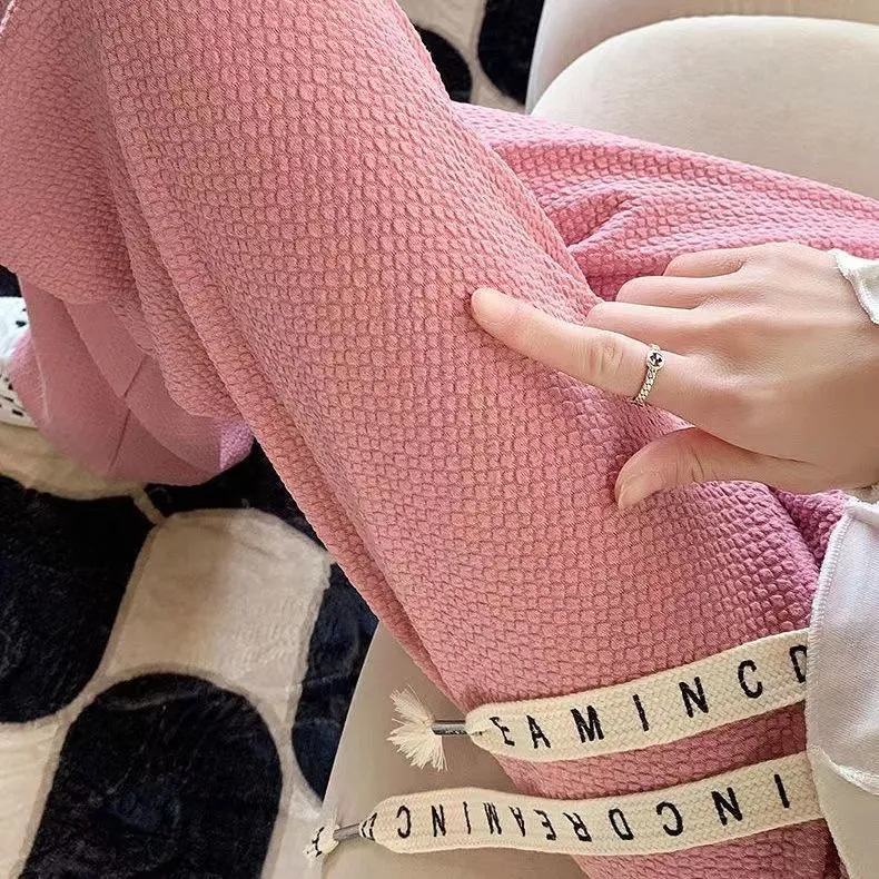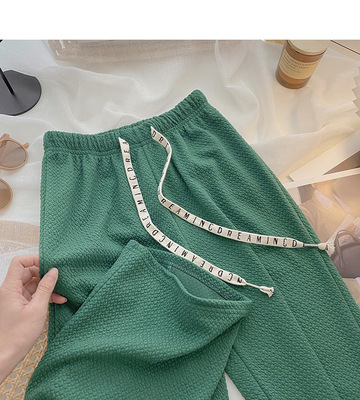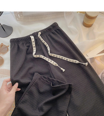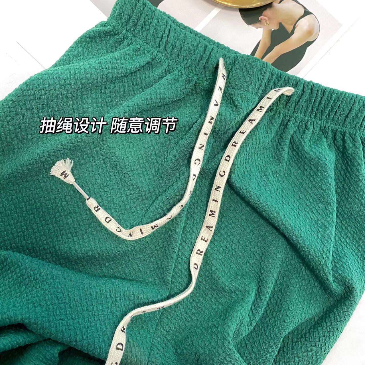 2023年夏季女士空气泡芙休闲裤韩版宽松显瘦直筒裤冰丝垂感阔腿裤