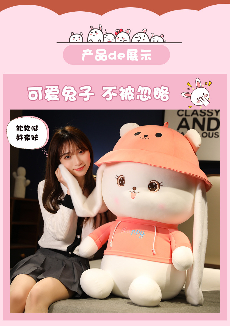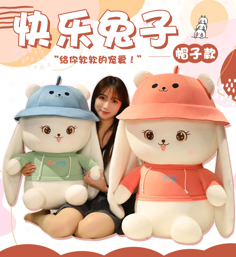 多爱快乐兔子毛绒公仔套圈玩具女生礼物安抚玩偶抱枕抓机娃娃批发