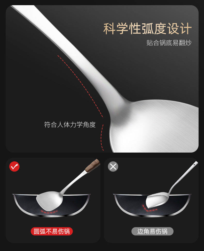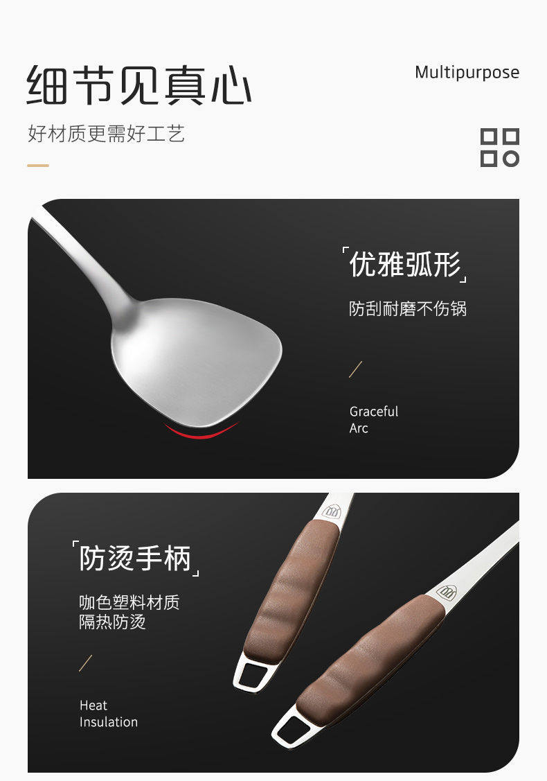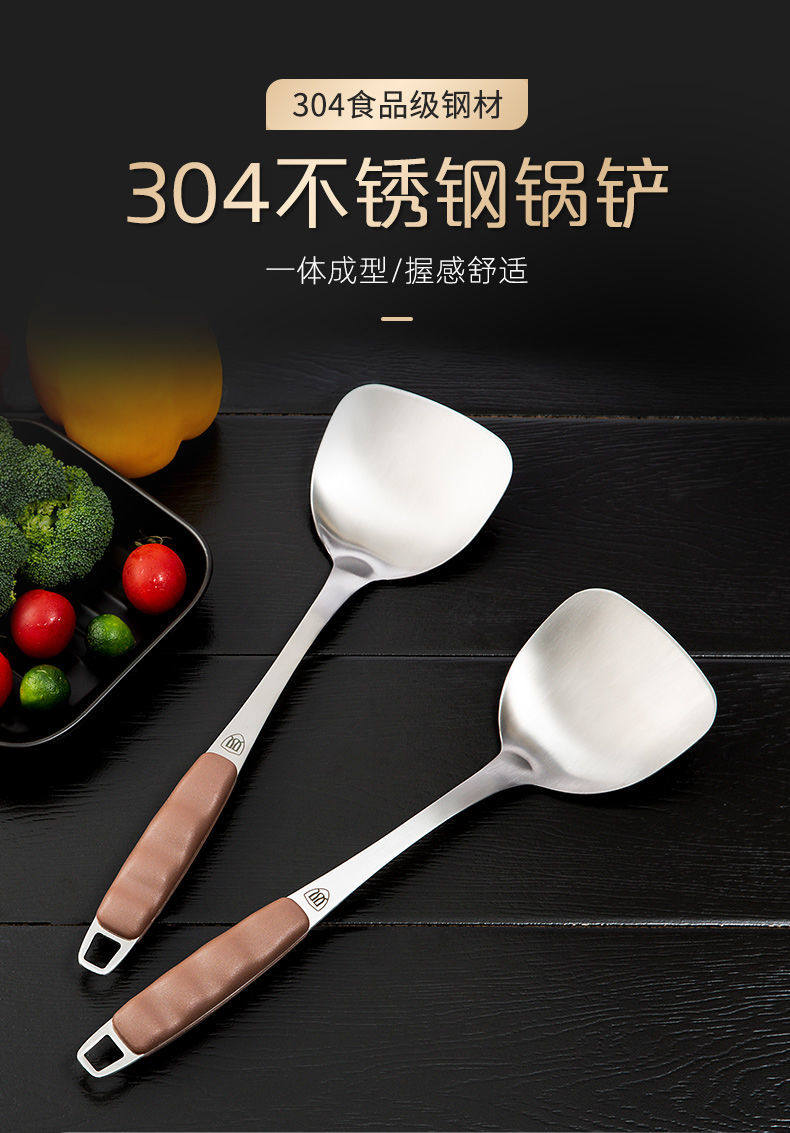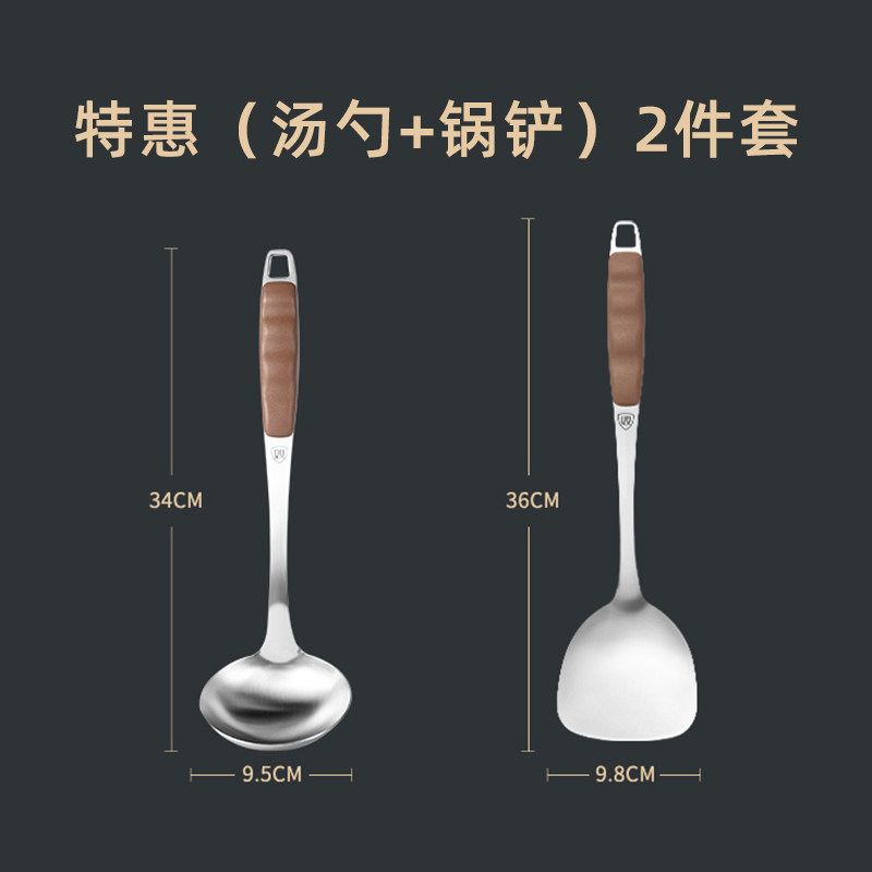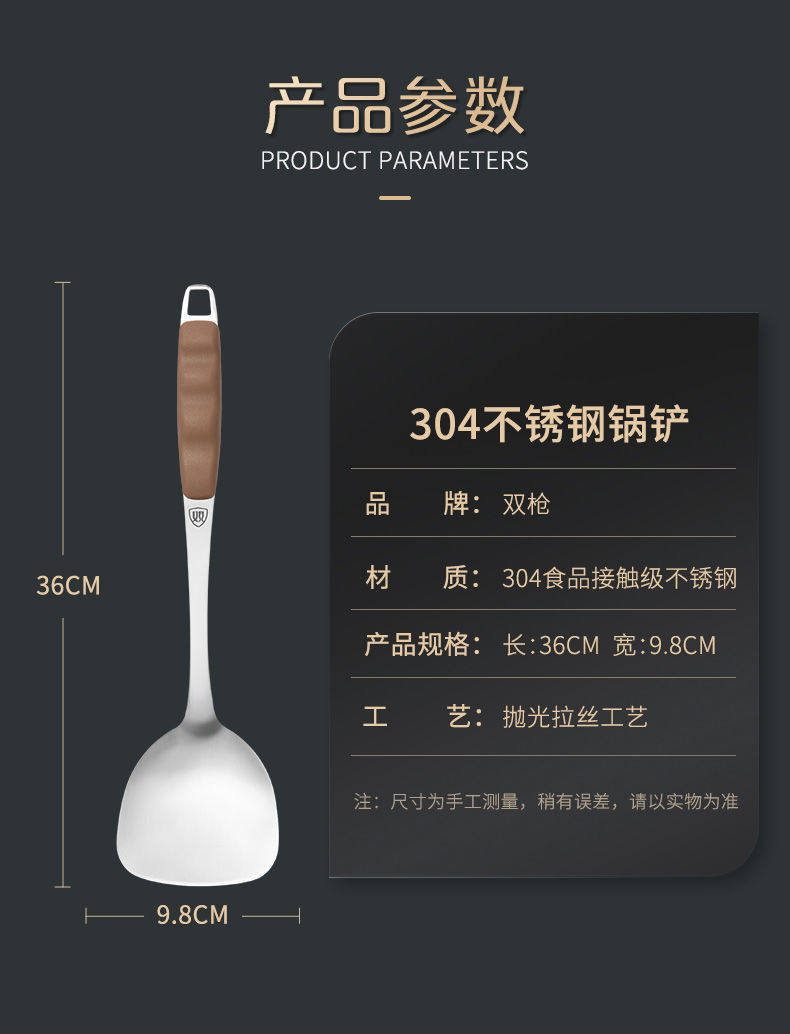 双枪不锈钢锅铲炒菜铲子锅勺套装304食品级汤勺家用加厚炒勺煎铲