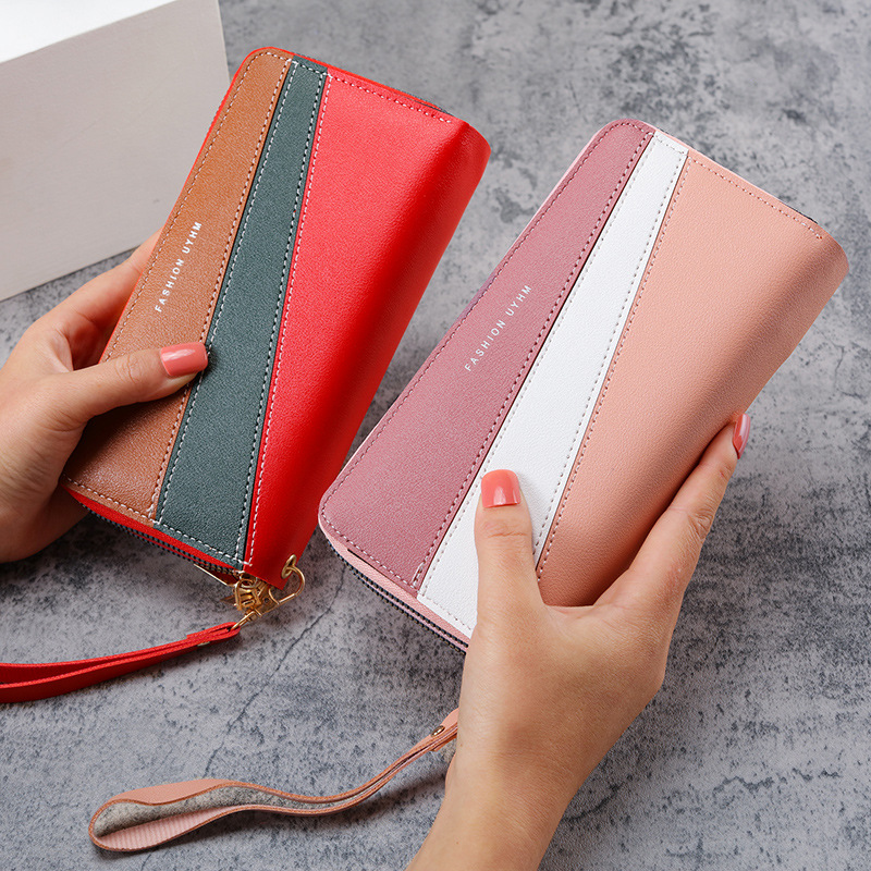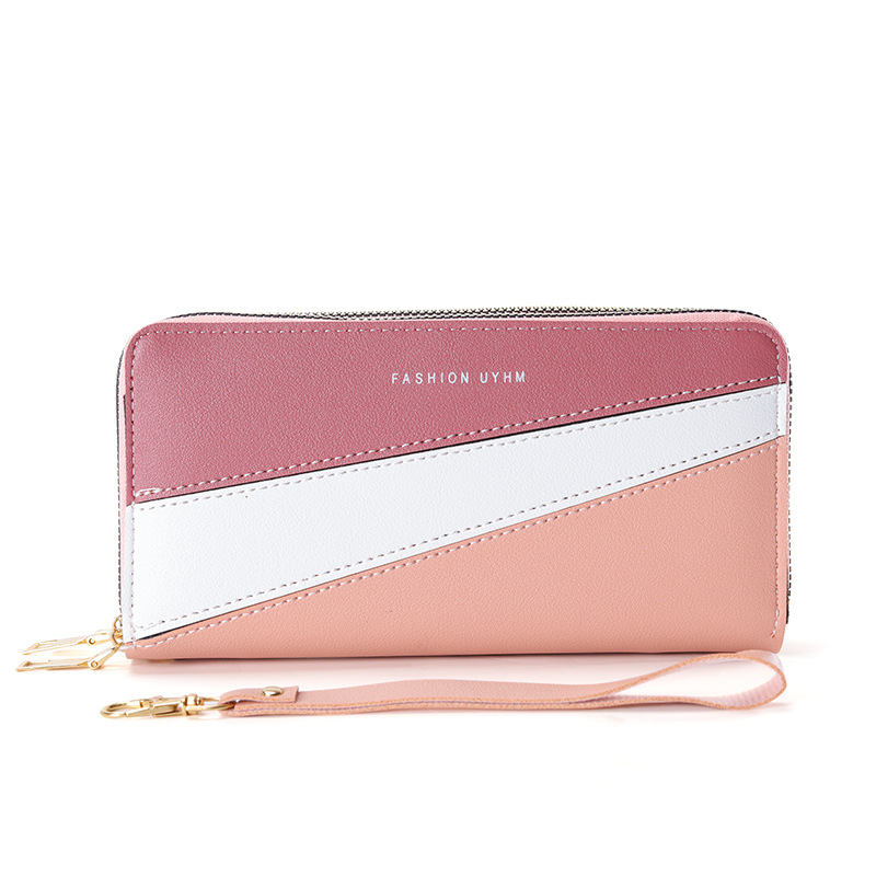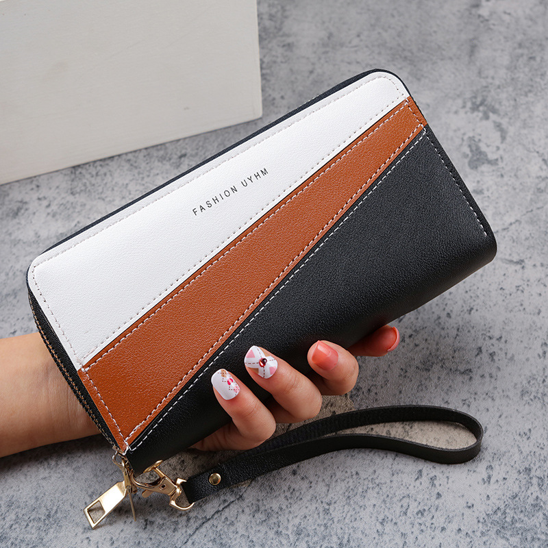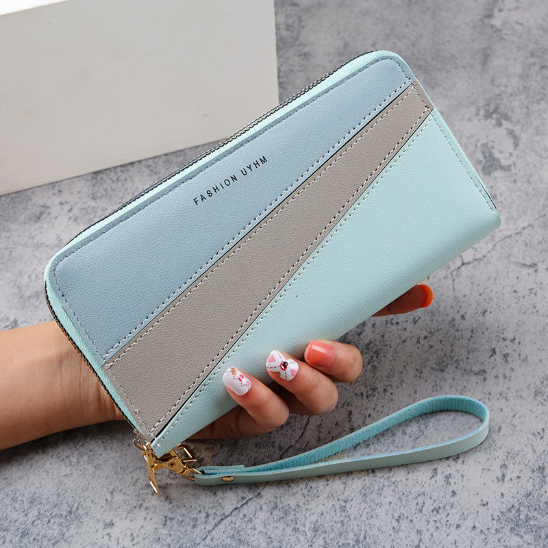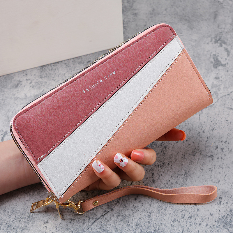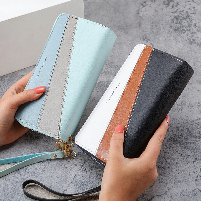 新款钱包女士长款双拉链大容量韩版钱夹外贸简约拼接零钱包手机包