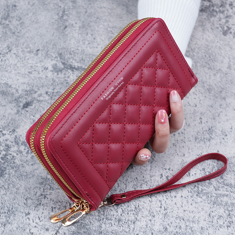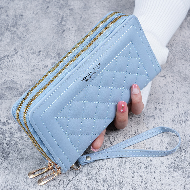 2023新款双拉链长款钱包女款欧美时尚绣花手拿包多功能钱夹手机包