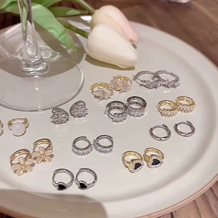 韩国新款ins潮百搭气质锆石爱心耳钉耳环轻奢小众素圈耳圈耳扣女