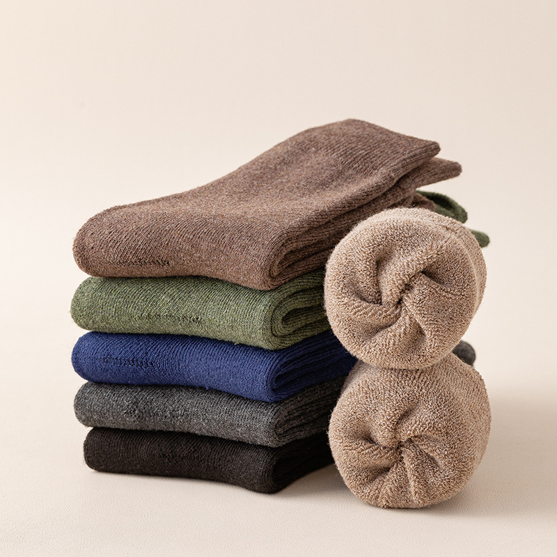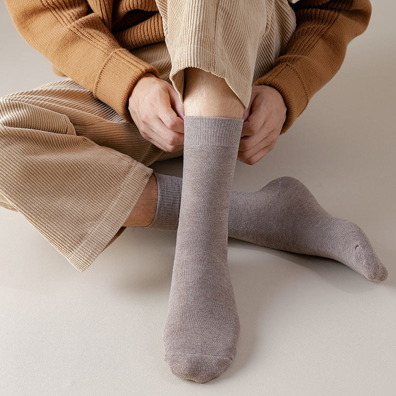 【定制】袜子新款秋冬加厚男袜吸汗透气毛巾袜纯色休闲绅士中筒袜