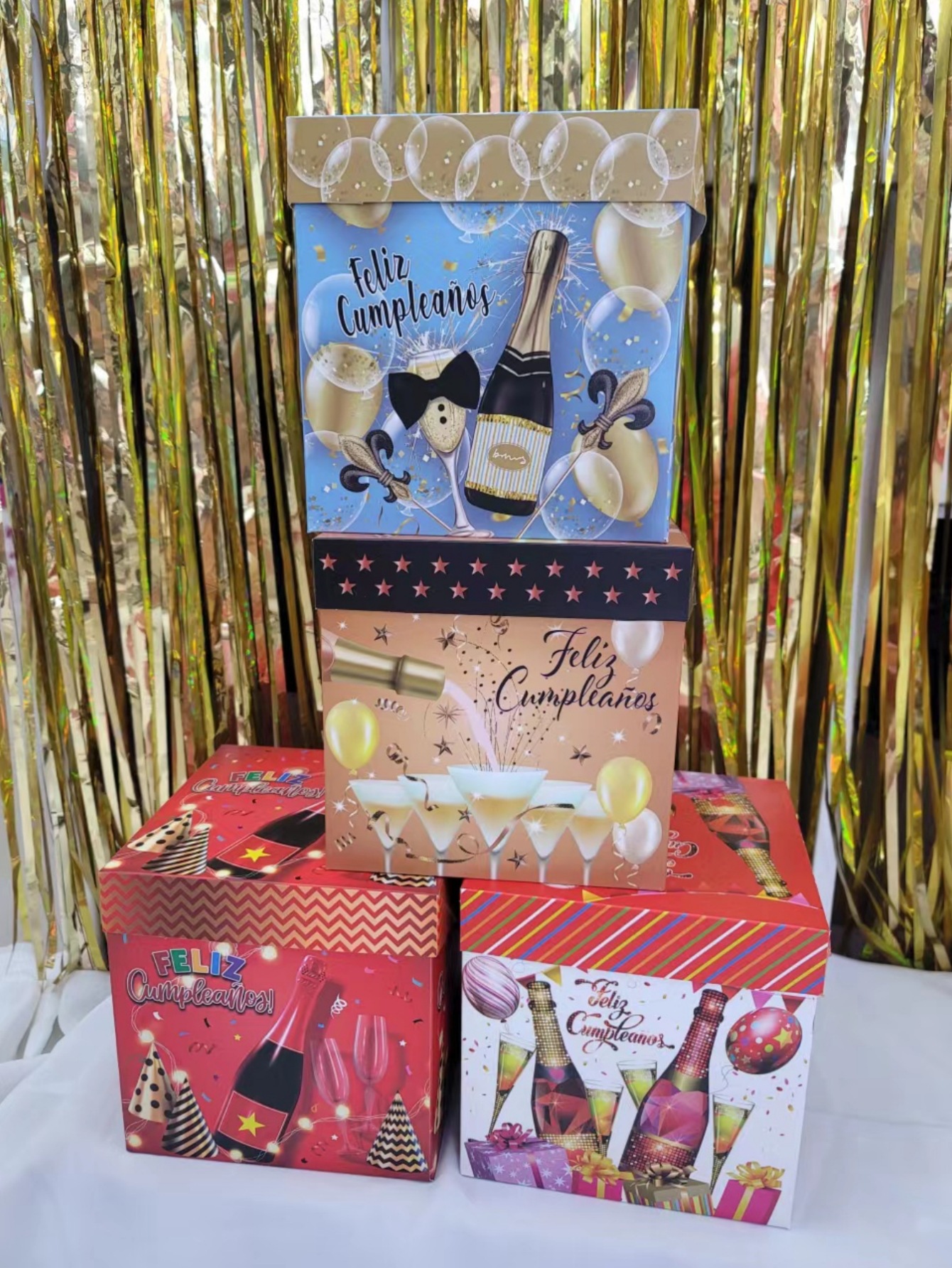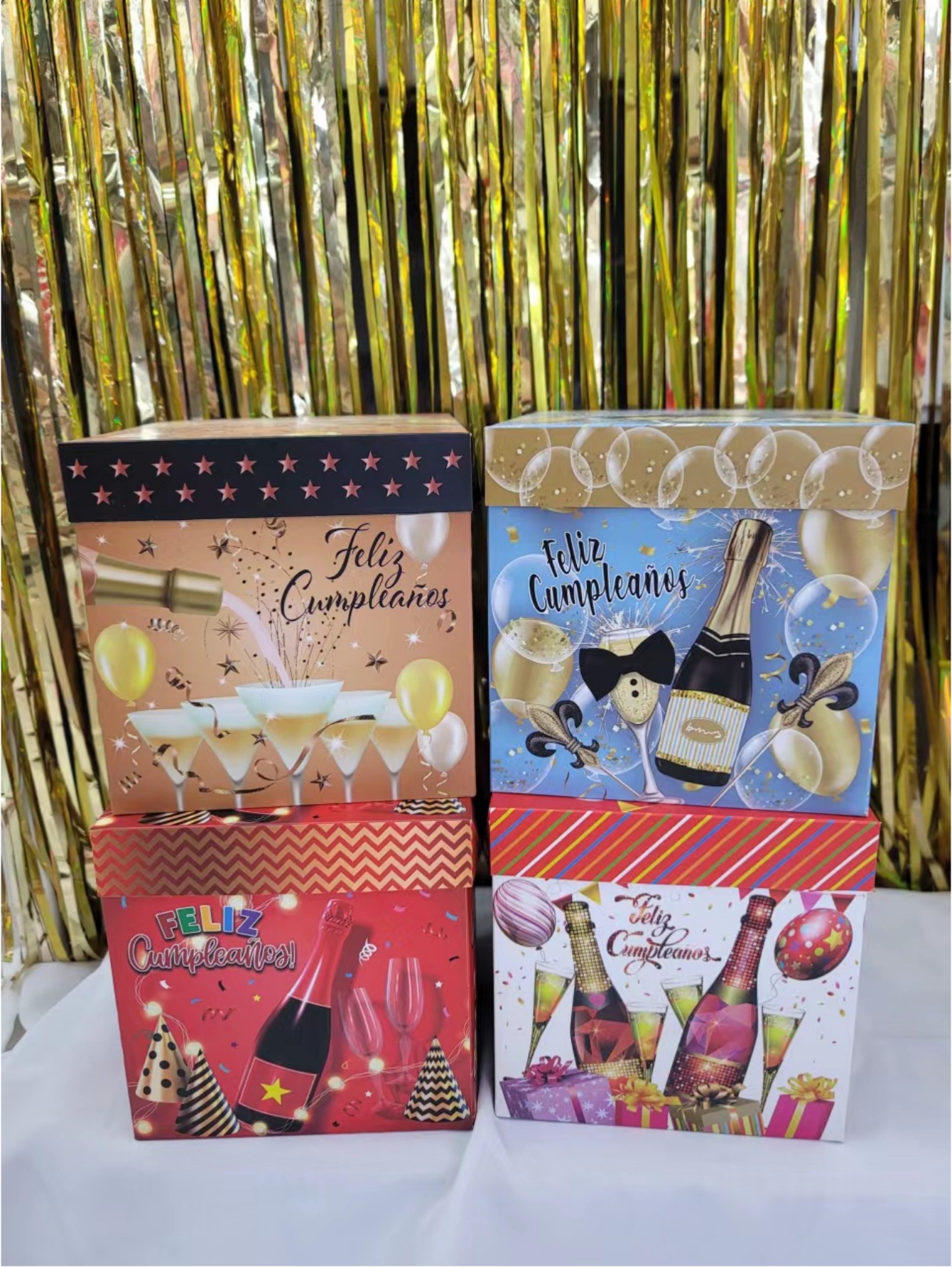 包装盒西语生日礼物盒 白卡 折叠 正方形