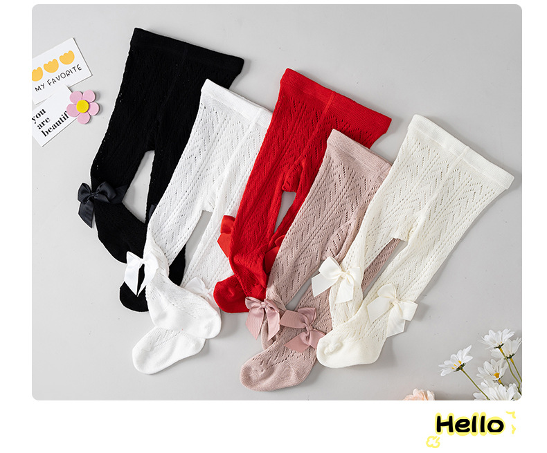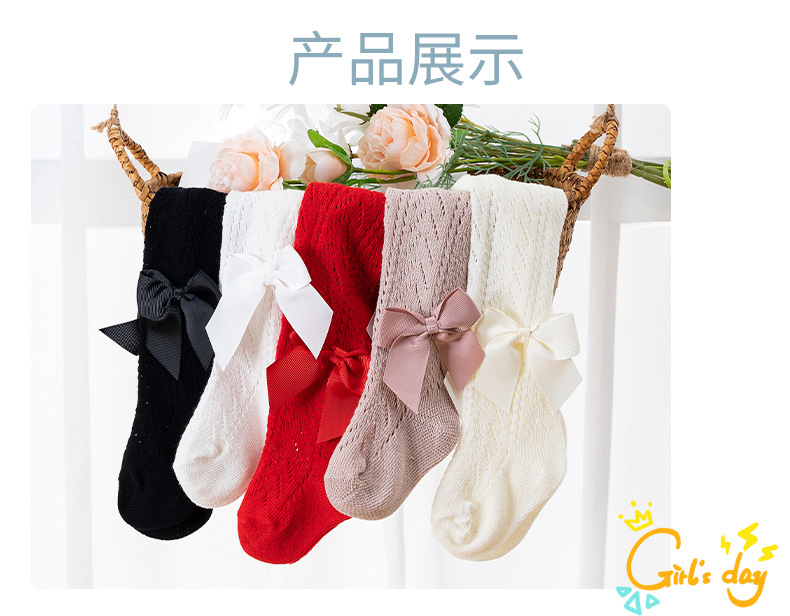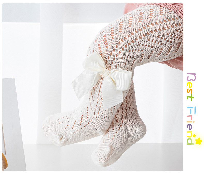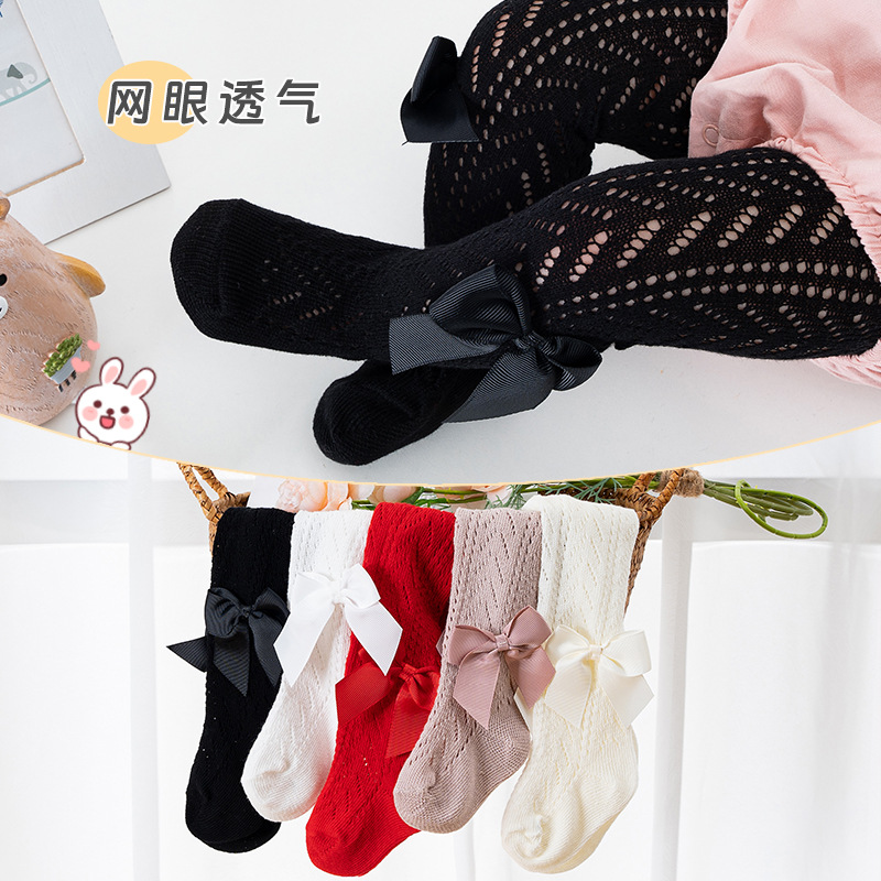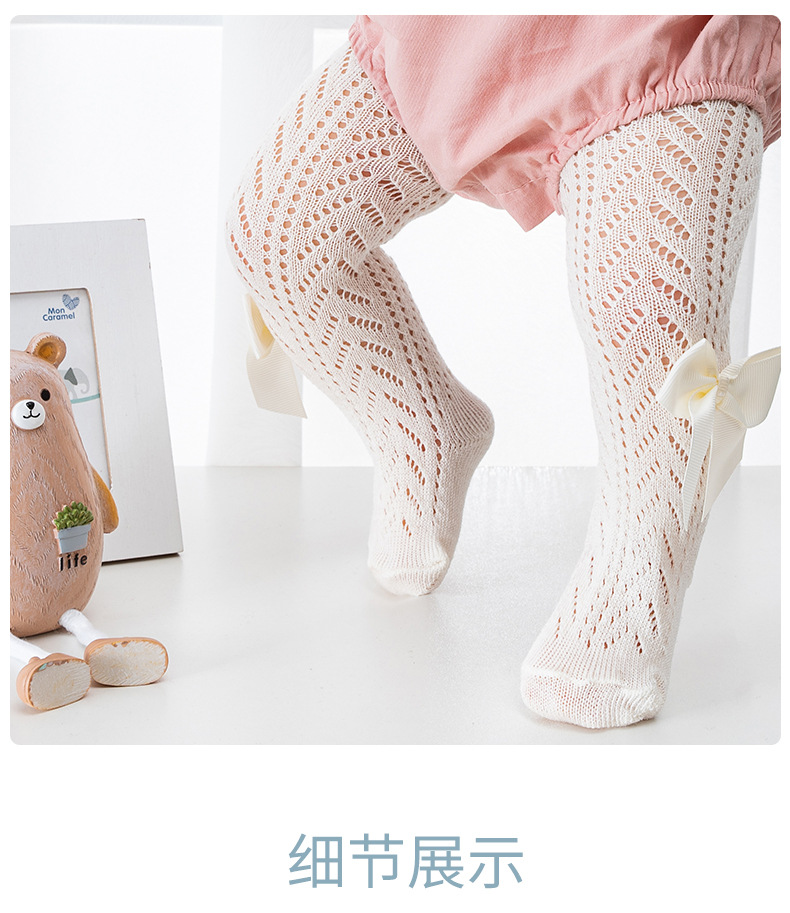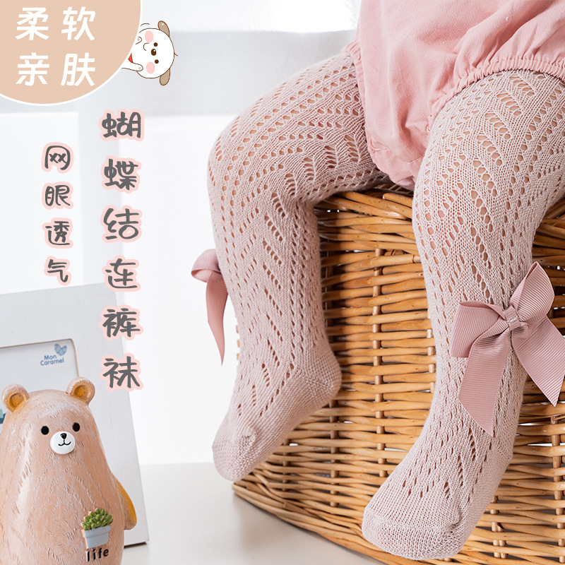 夏季儿童连裤袜女童打底裤网眼薄款袜子公主婴儿宝宝蝴蝶结防蚊袜