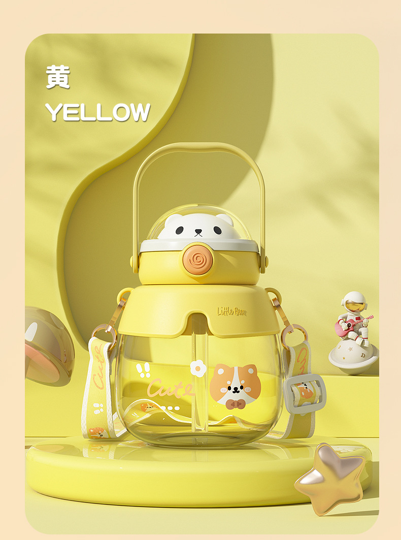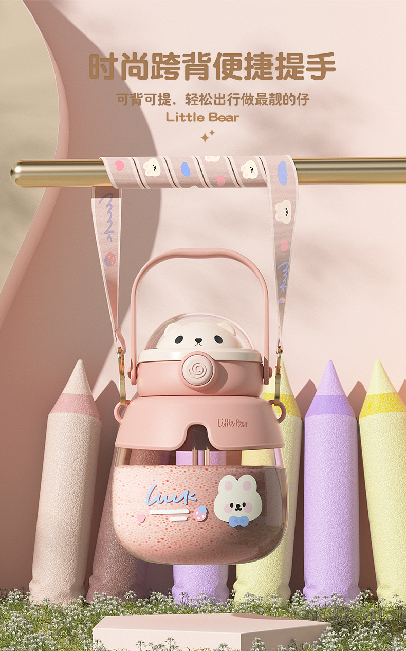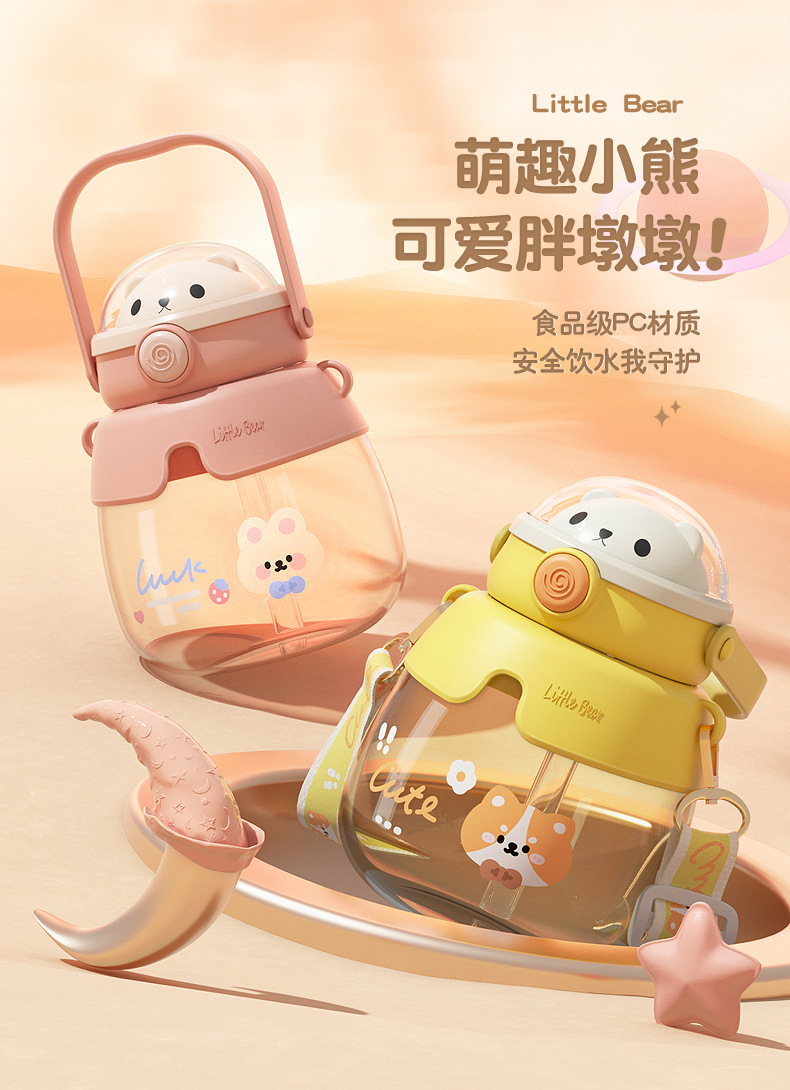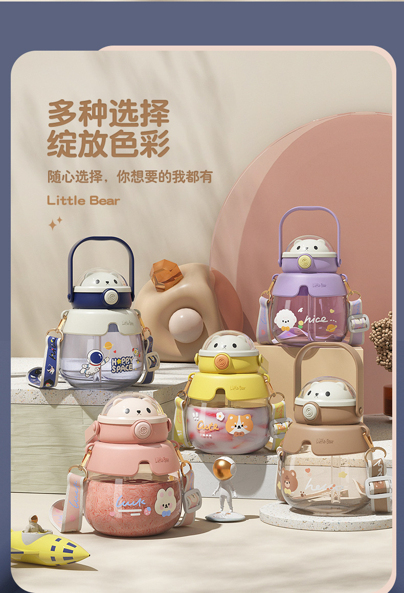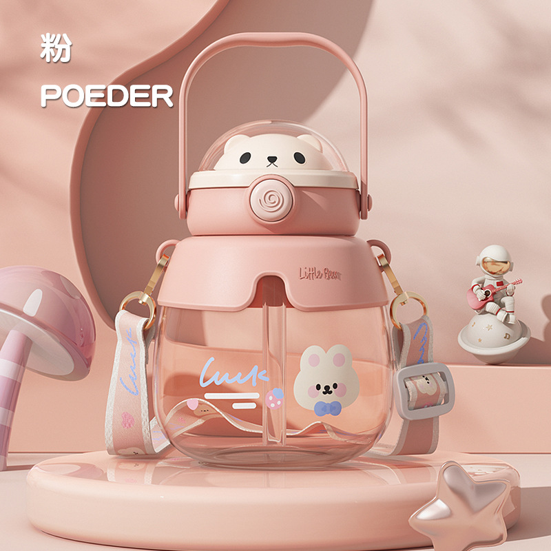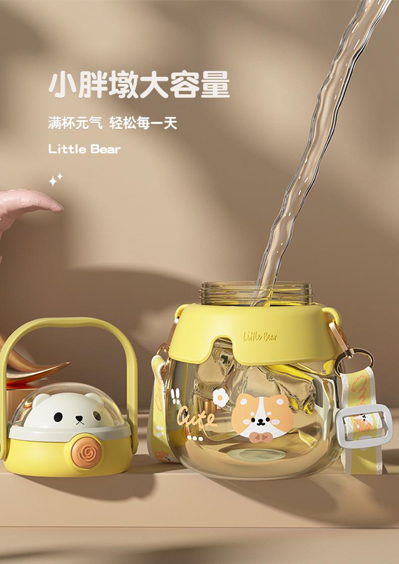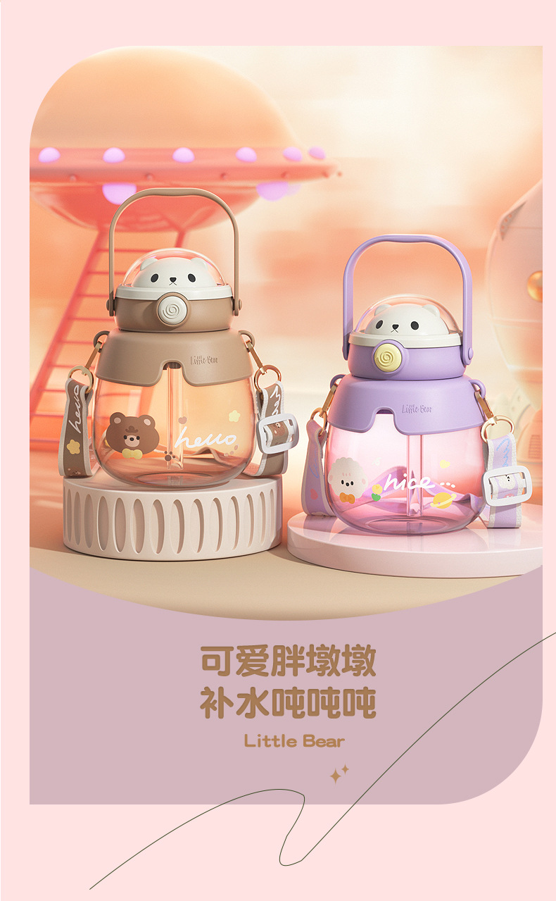 大肚水杯女生高颜值塑料耐高温大容量抱抱熊吸管2025新款可爱杯子