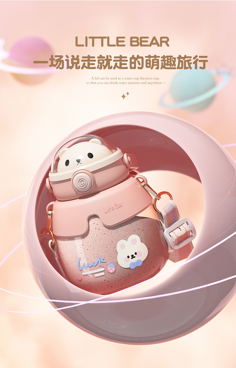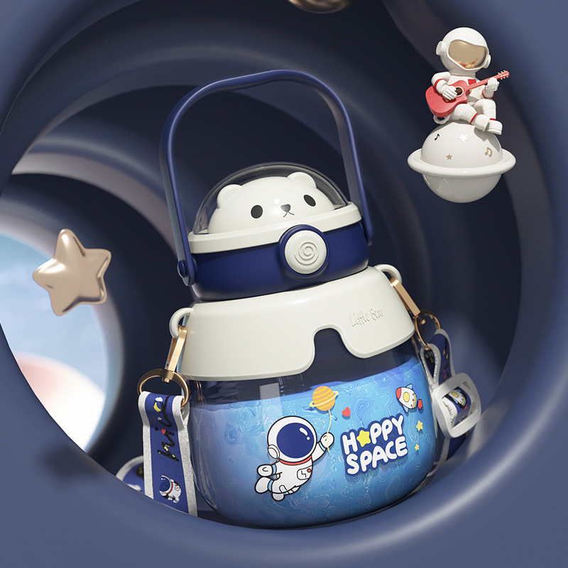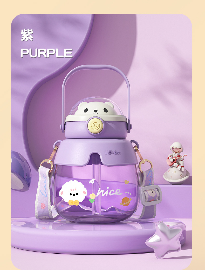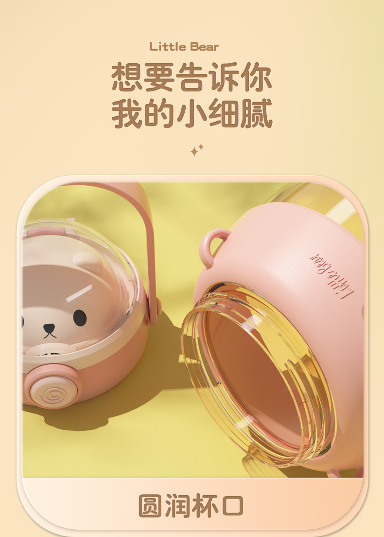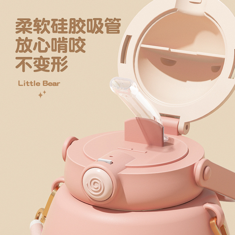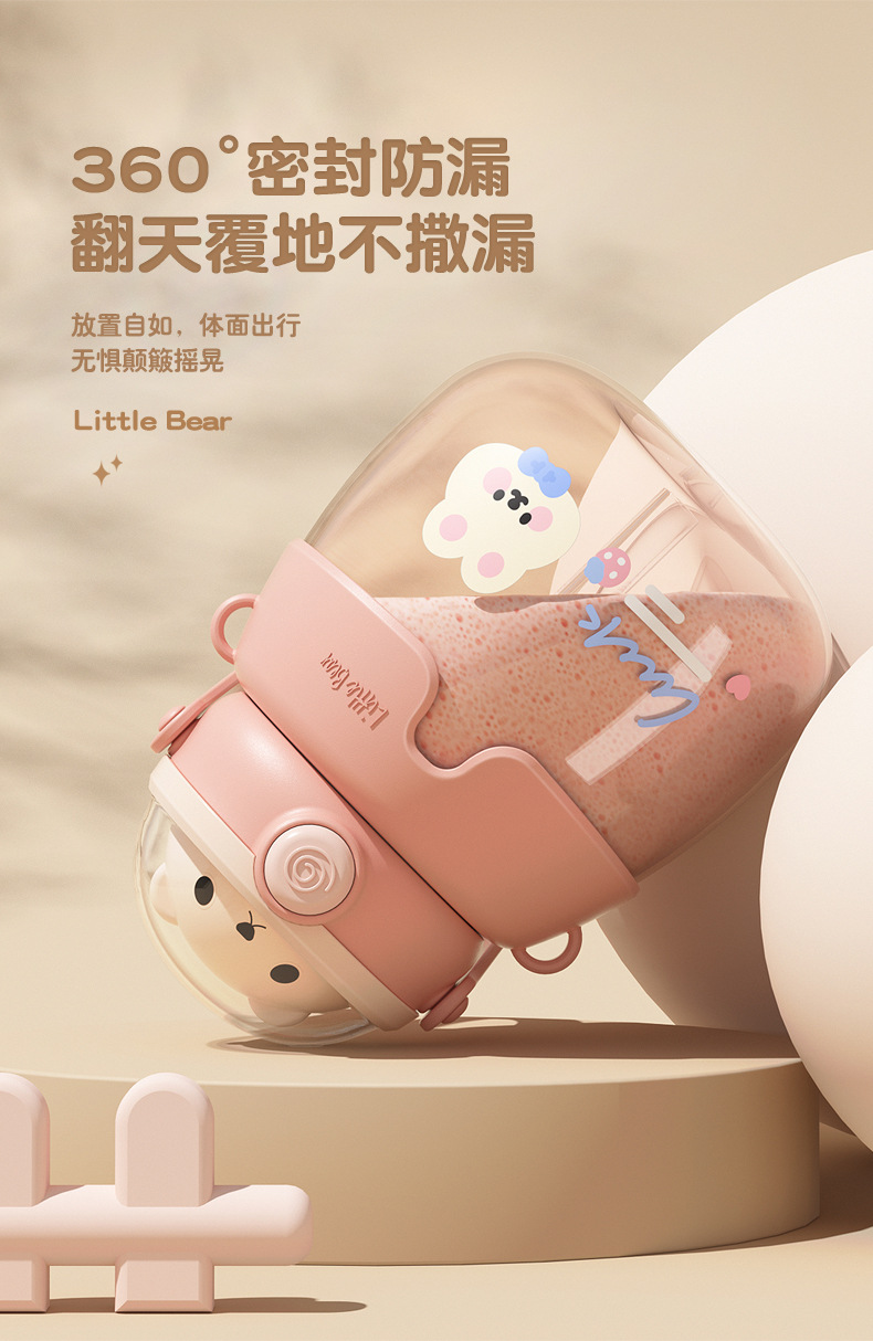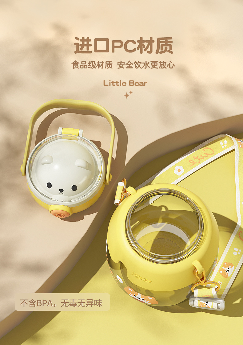 大肚水杯女生高颜值塑料耐高温大容量抱抱熊吸管2025新款可爱杯子