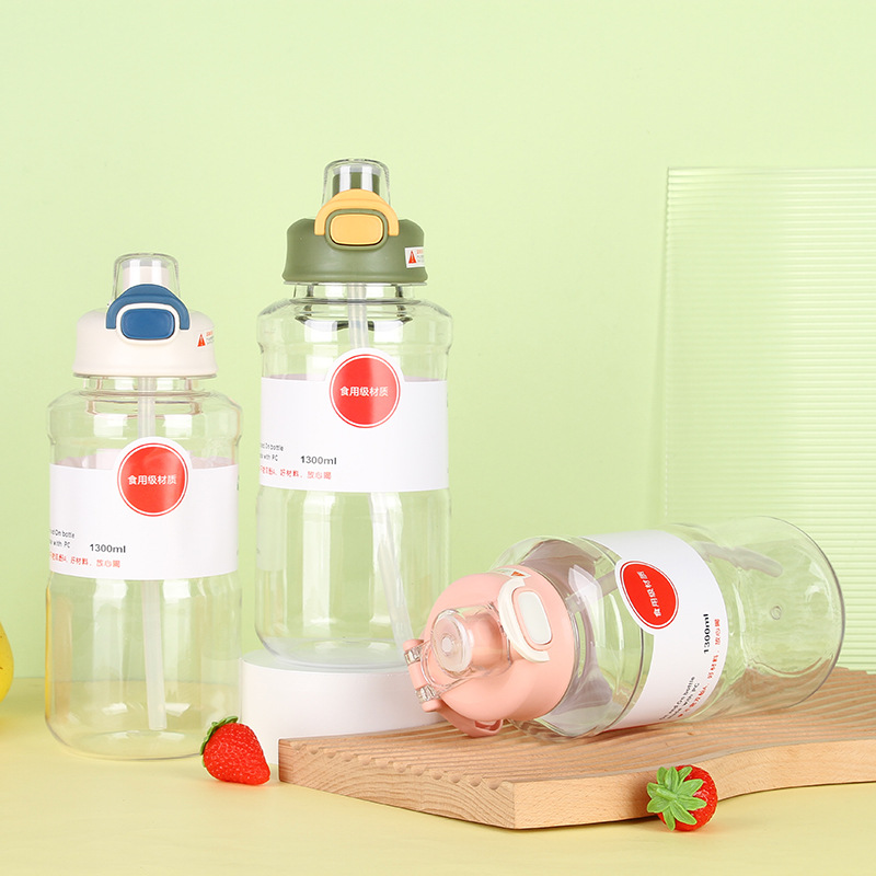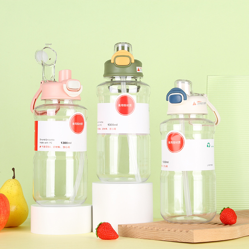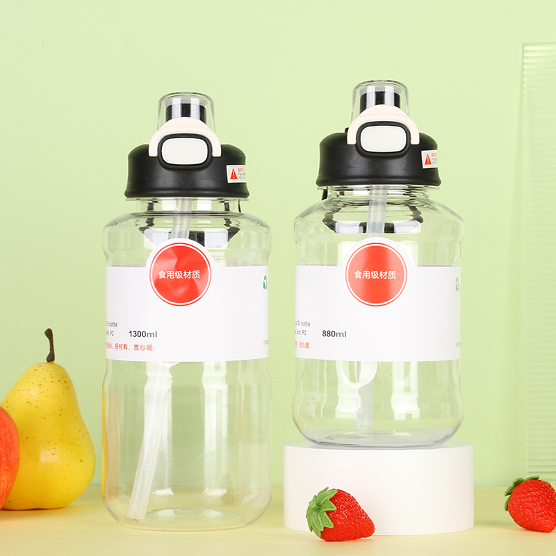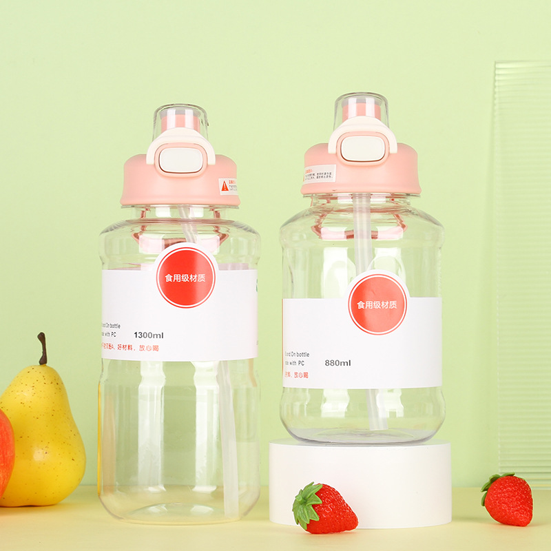 大容量夏日便携运动水壶带手提单层男女弹跳杯带吸管简约塑料杯