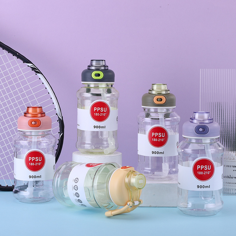 新款塑料杯便携式大容量运动水壶防摔耐高温双饮吸管杯