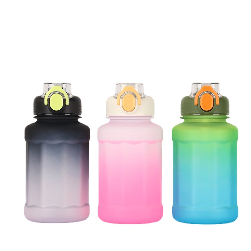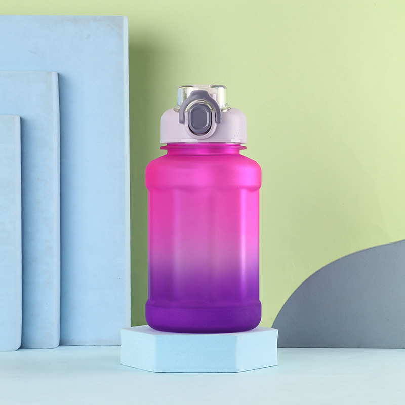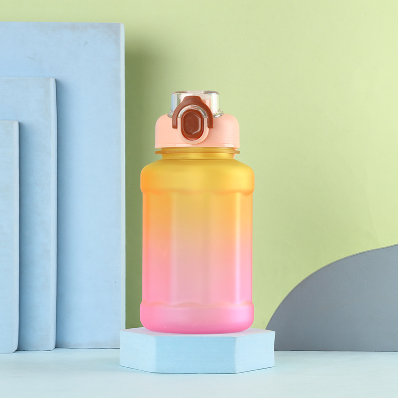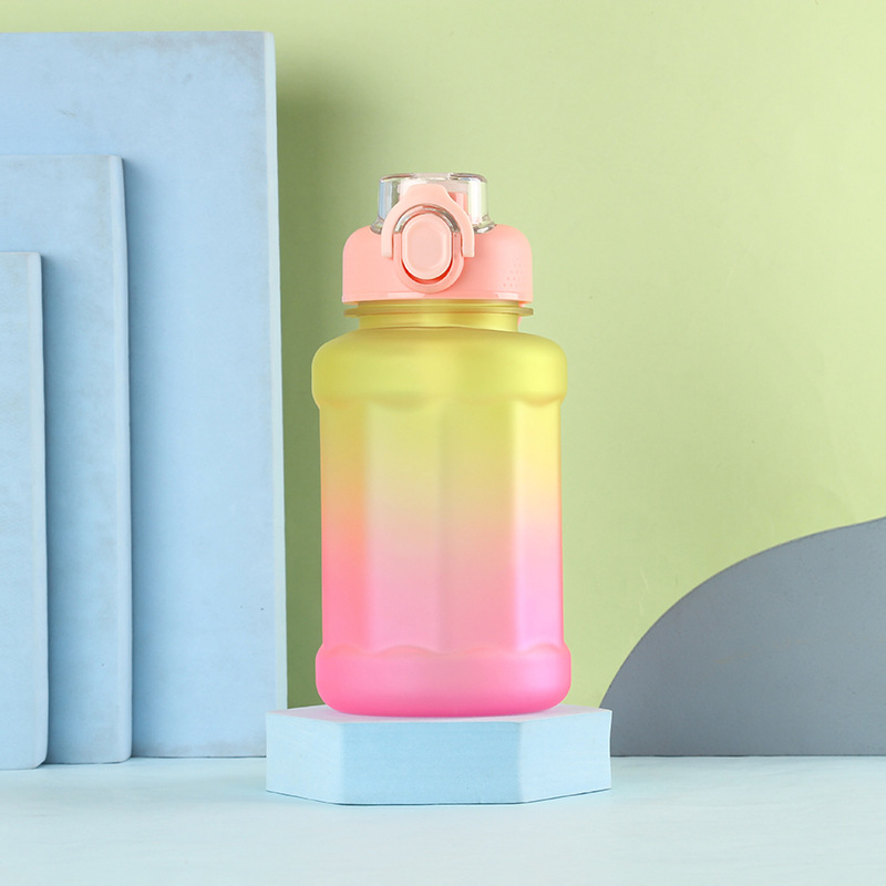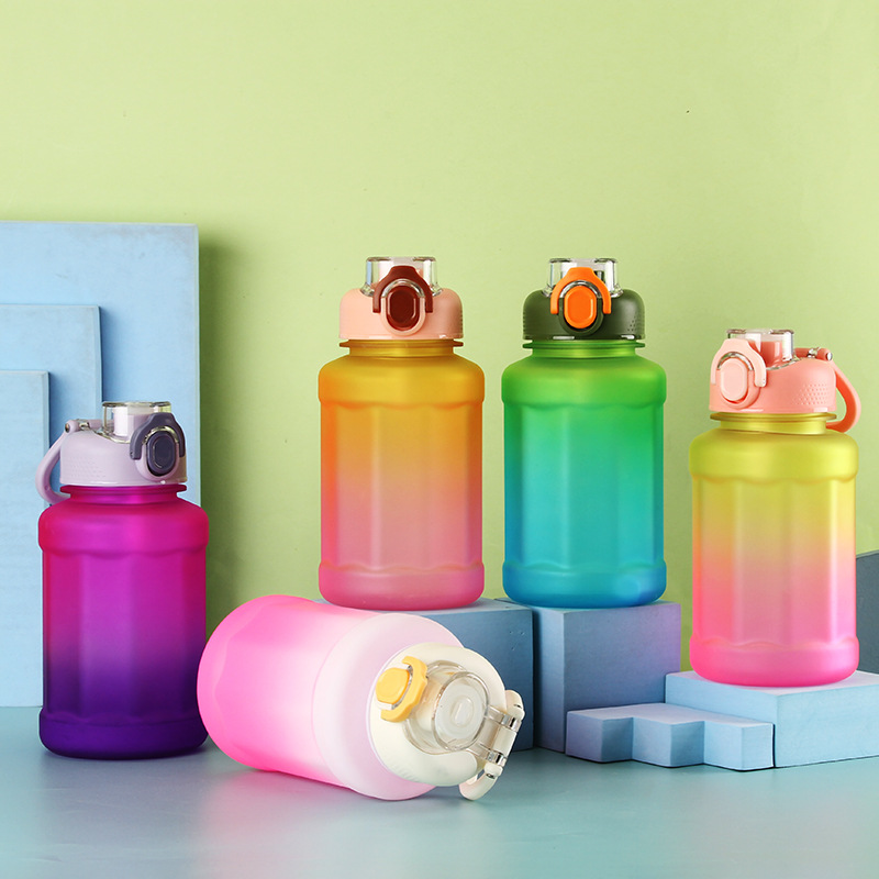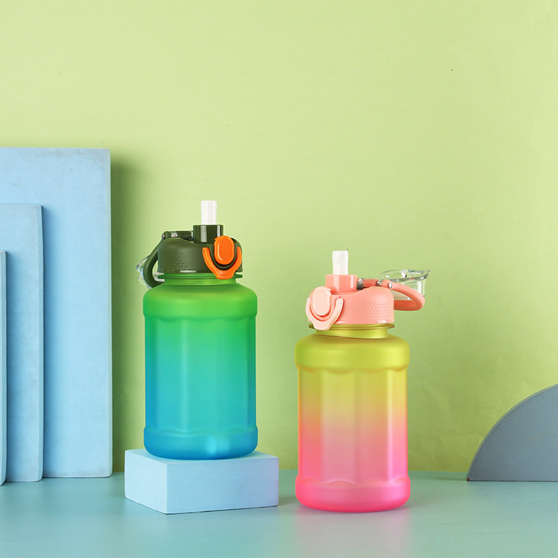 跨境渐变色磨砂水杯大容量吸管塑料杯弹跳盖户外运动健身吨吨桶